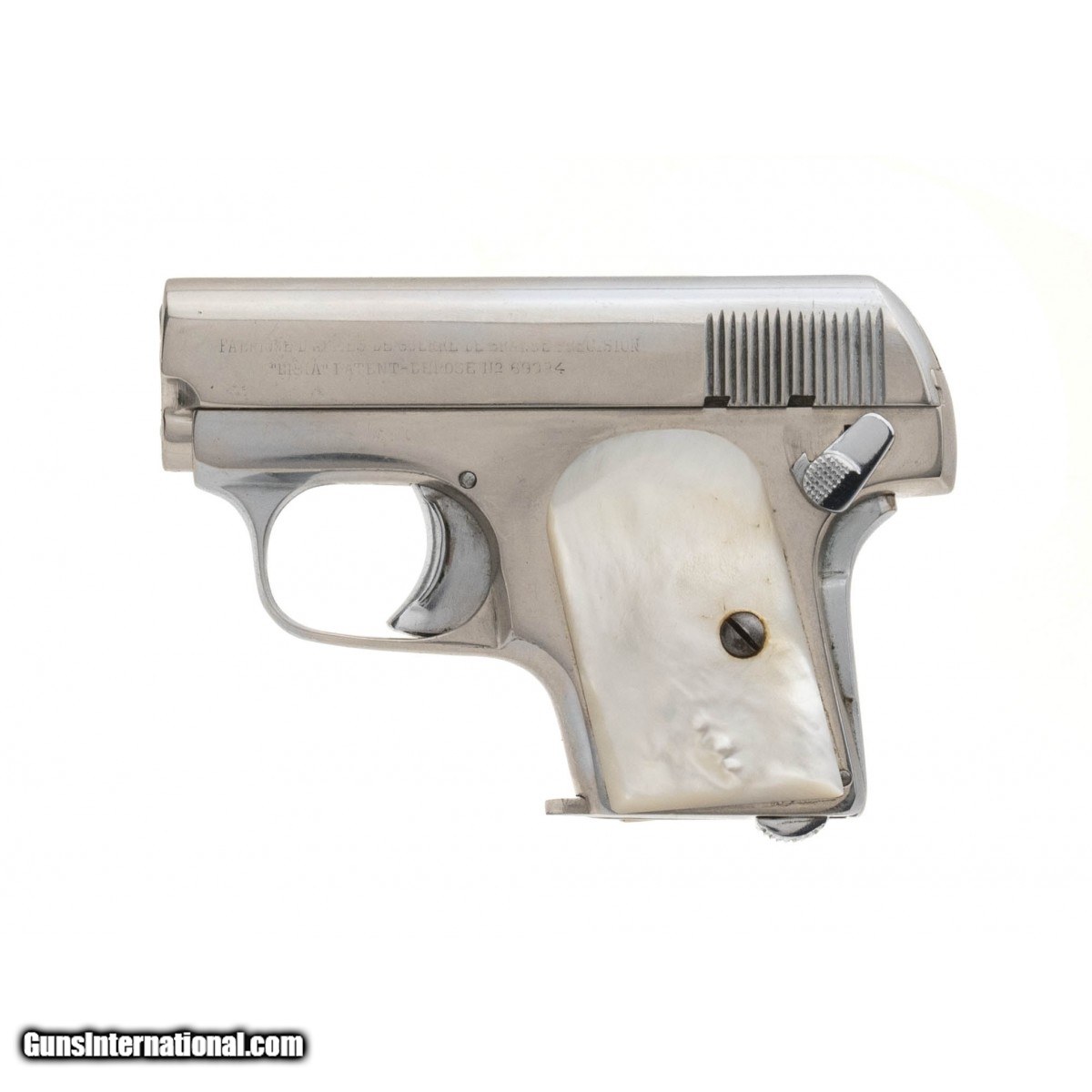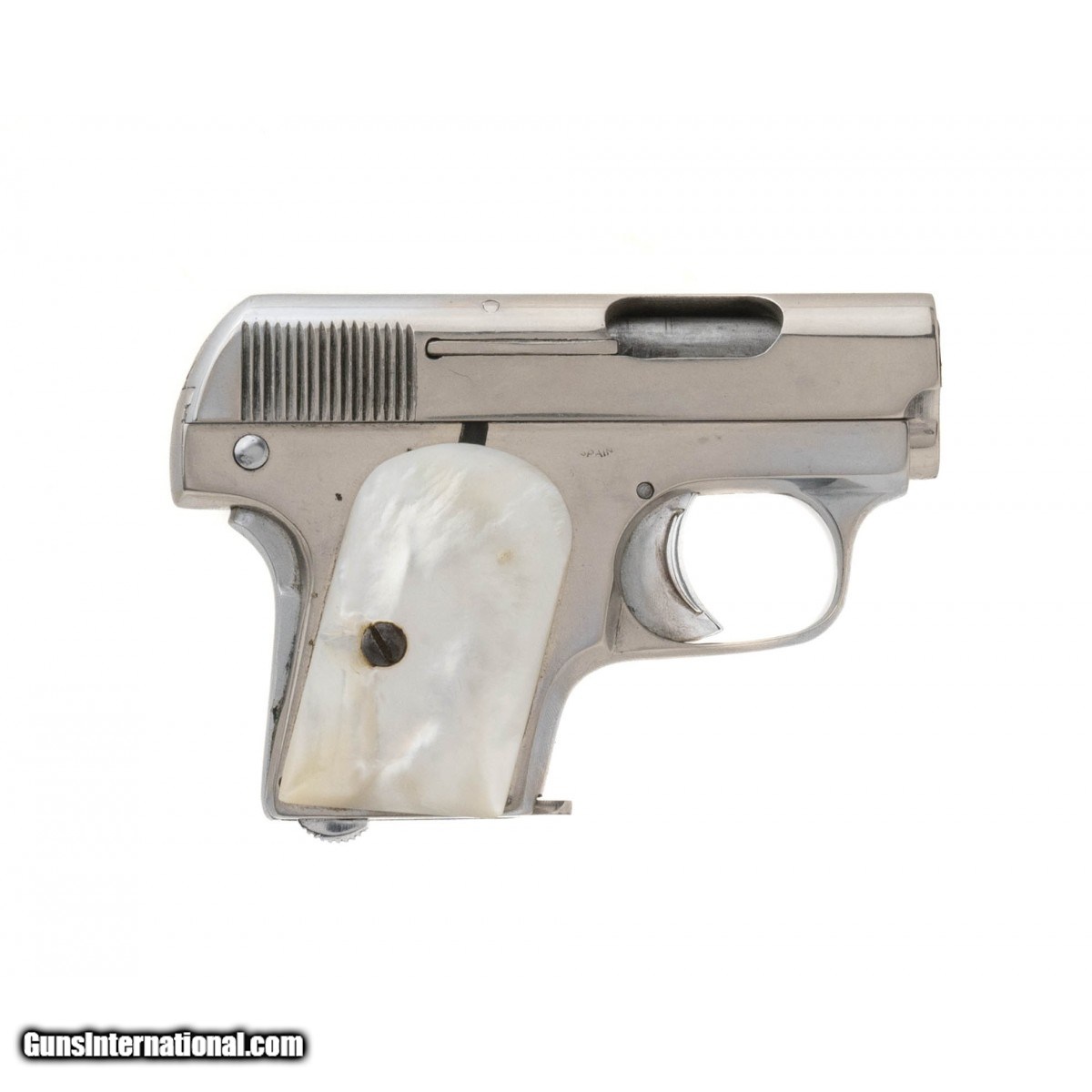 Description: " Pre-War Spanish made pocket pistol. Has been nickel plated and has genuine pearl grips. Bore is very good. A pretty piece, in excellent condition. SOLD Curio/Relic: Yes |