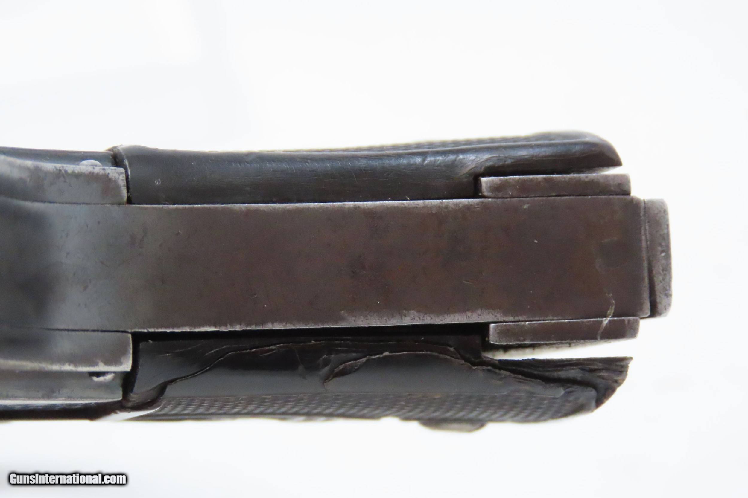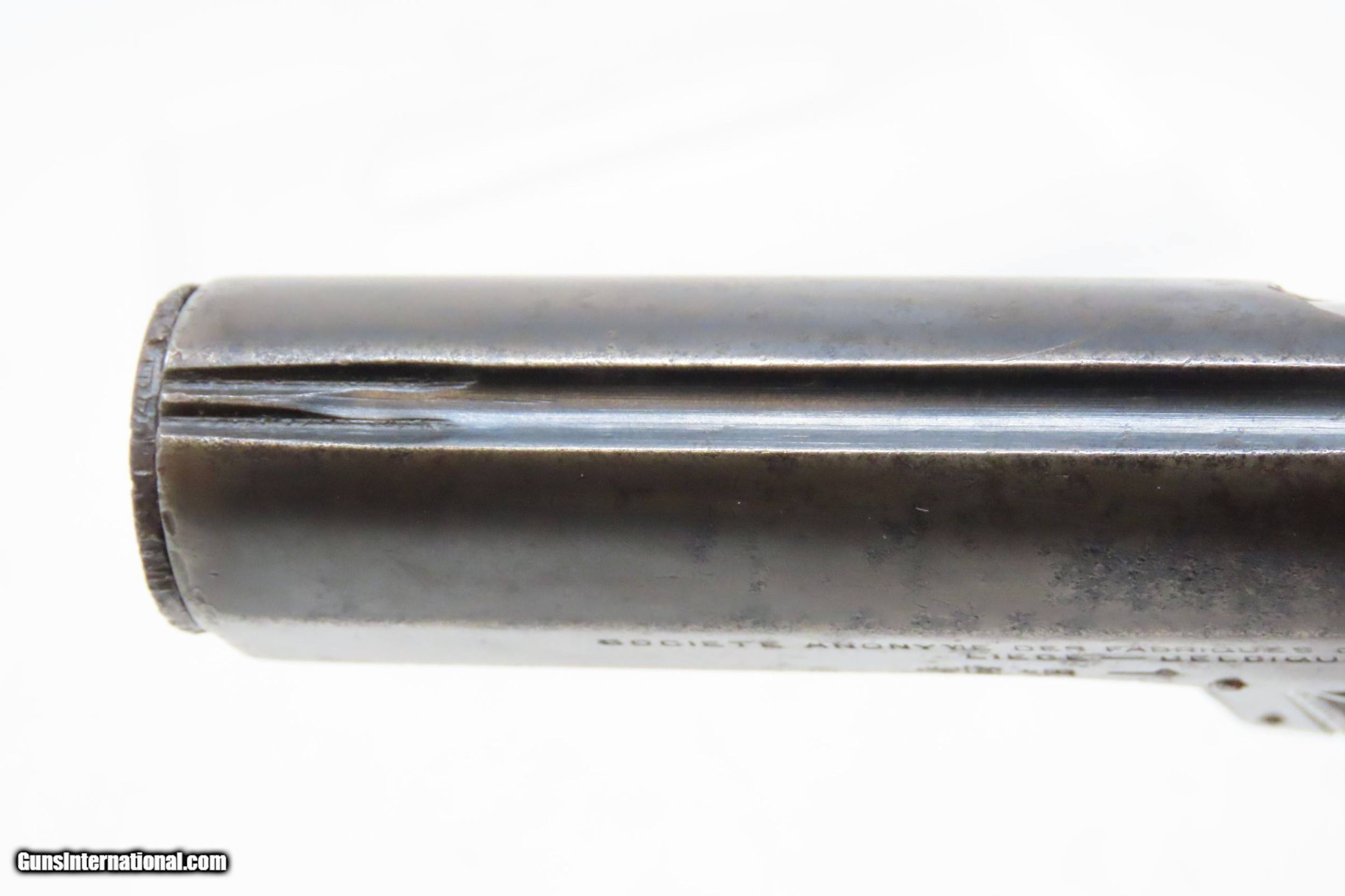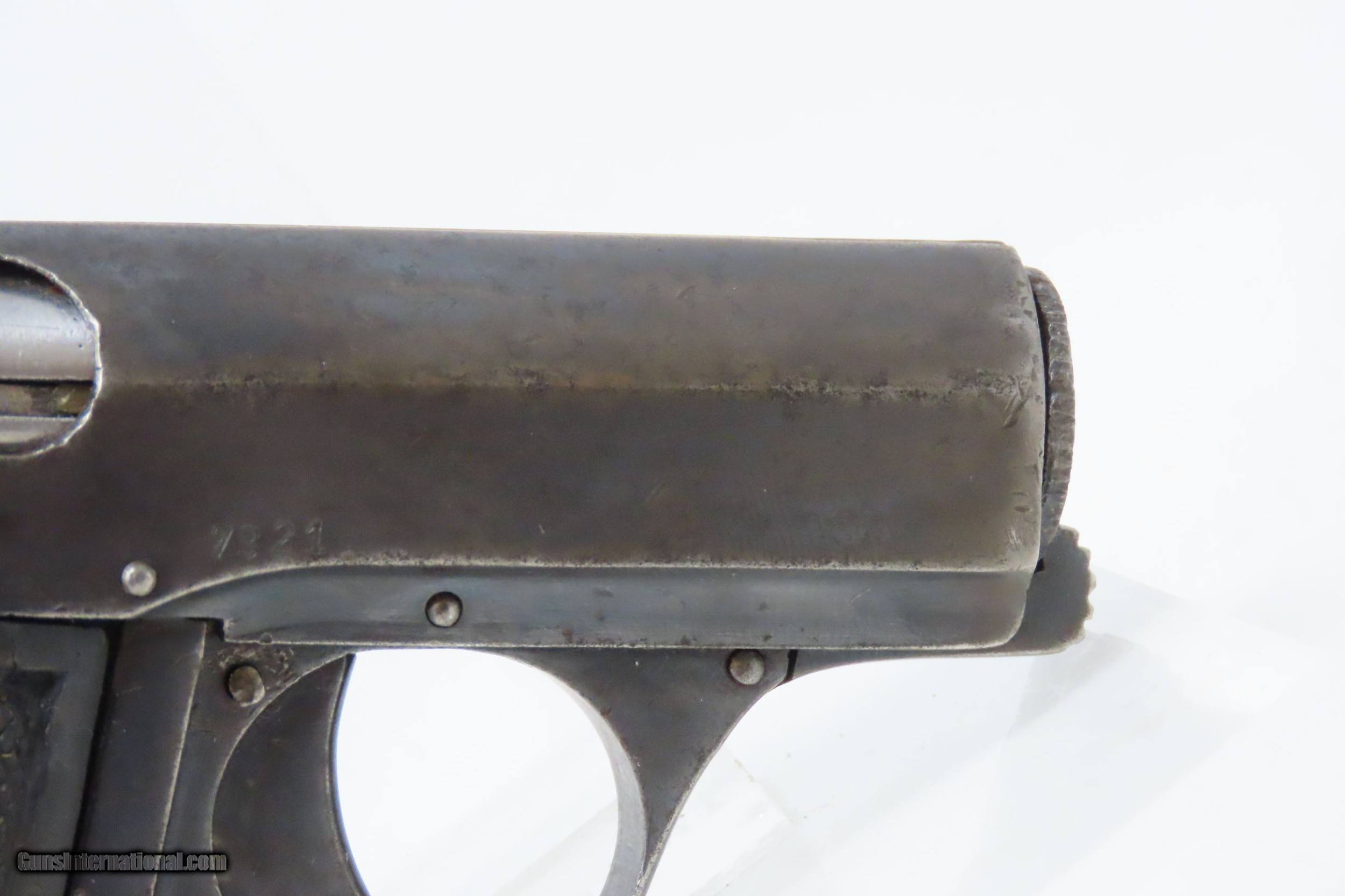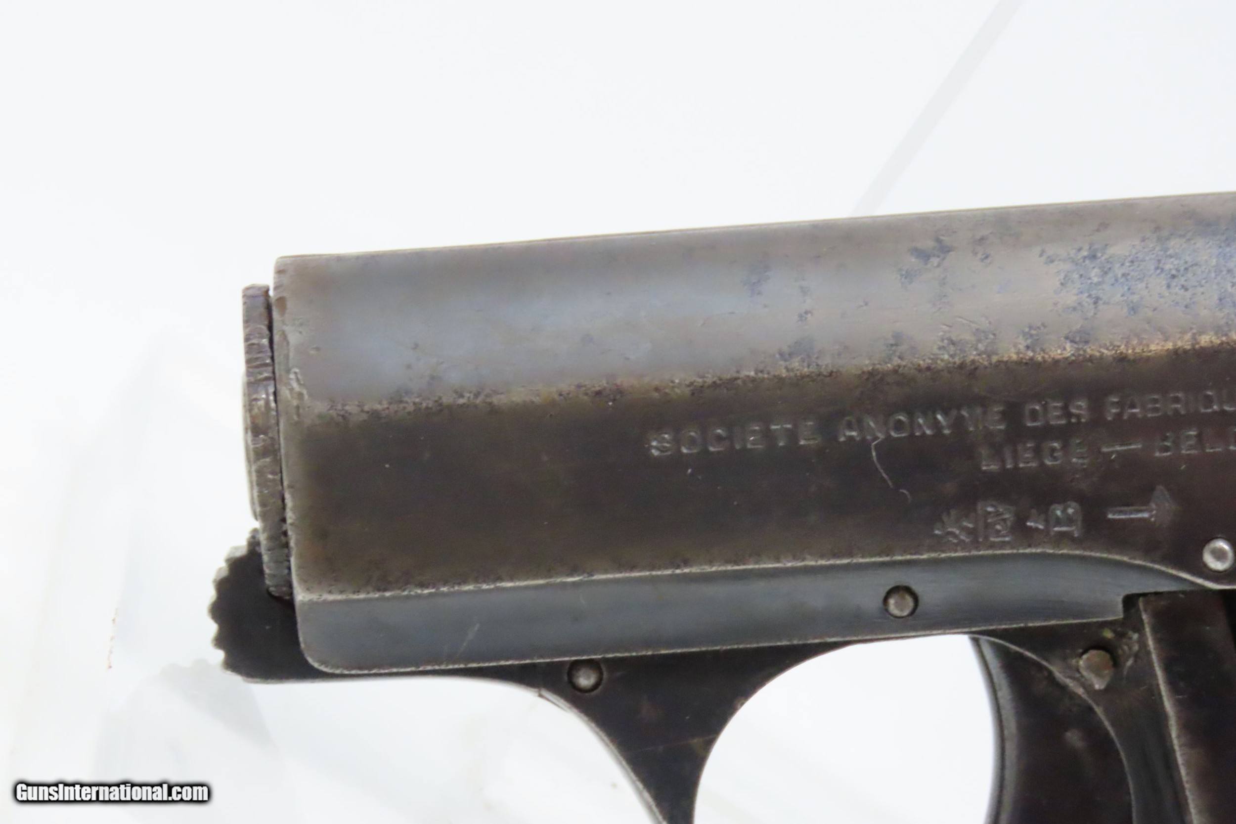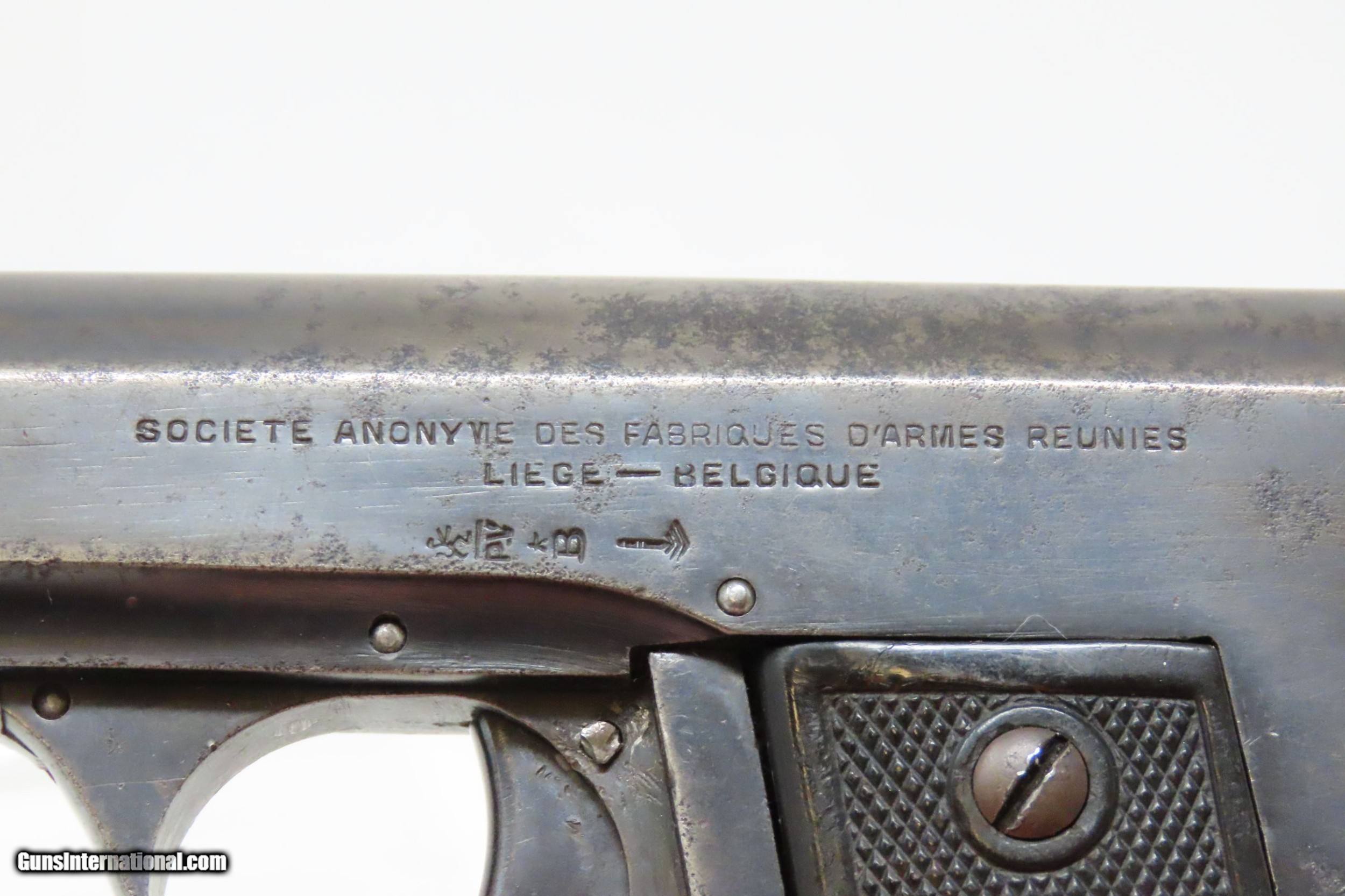 Description: Belgian REUNIES DICTATOR .25 ACP Semi-Auto Self-Defense POCKET Pistol C&R Manufactured in the 1910s for “CONCEAL and CARRY” Here we present a C&R Belgian Dictator Semi-Automatic Pocket Pistol, also marketed under the name Centaure, made circa the 1910s in Liege, Belgium by Societe Anonyme des Fabriques d’Armes Reunies with a production run from 1910 through 1918 with very few produced. The Dictator was patented in 1909 by this company which was established solely to exercise this patent. The original designer of this little pistol is unknown. Production began in 1910, but despite being a unique design, it sold poorly in an already overcrowded pocket pistol market and production was discontinued in 1918. Surviving examples, like this one, are extremely rare making them very hard to come by. This semi-auto pistol was the first pistol to utilize a tubular receiver which contained a “wrap around” style telescoping bolt rather than a conventional hammer and slide. It was the first pistol to use this type of bolt. Though this design was unique, it offered no clear advantage over the existing designs of the era. This would have been a neat little pocket pistol that would have been very easy to “conceal and carry” during the tumultuous times of the Roaring Twenties and beyond! The overall condition is good. Strong action. Semi-bright bore, slight pitting. Original finish. Clear and legible markings. Both grips are in good shape and contain average handling wear. This firearm is classified as a Curio & Relic. Barrel is 2-3/8 inches. Caliber: .25 ACP Overall condition as seen in photos. Very Fast. Very Safe. FREE SHIPPING. Will need to be sent to your local FFL or C&R licensee. This firearm is classified as a Curio & Relic. Guaranteed AUTHENTIC & Includes CERTIFICATE OF AUTHENTICITY. ancestryguns $1200 #217881 SOLD Curio/Relic: Yes |