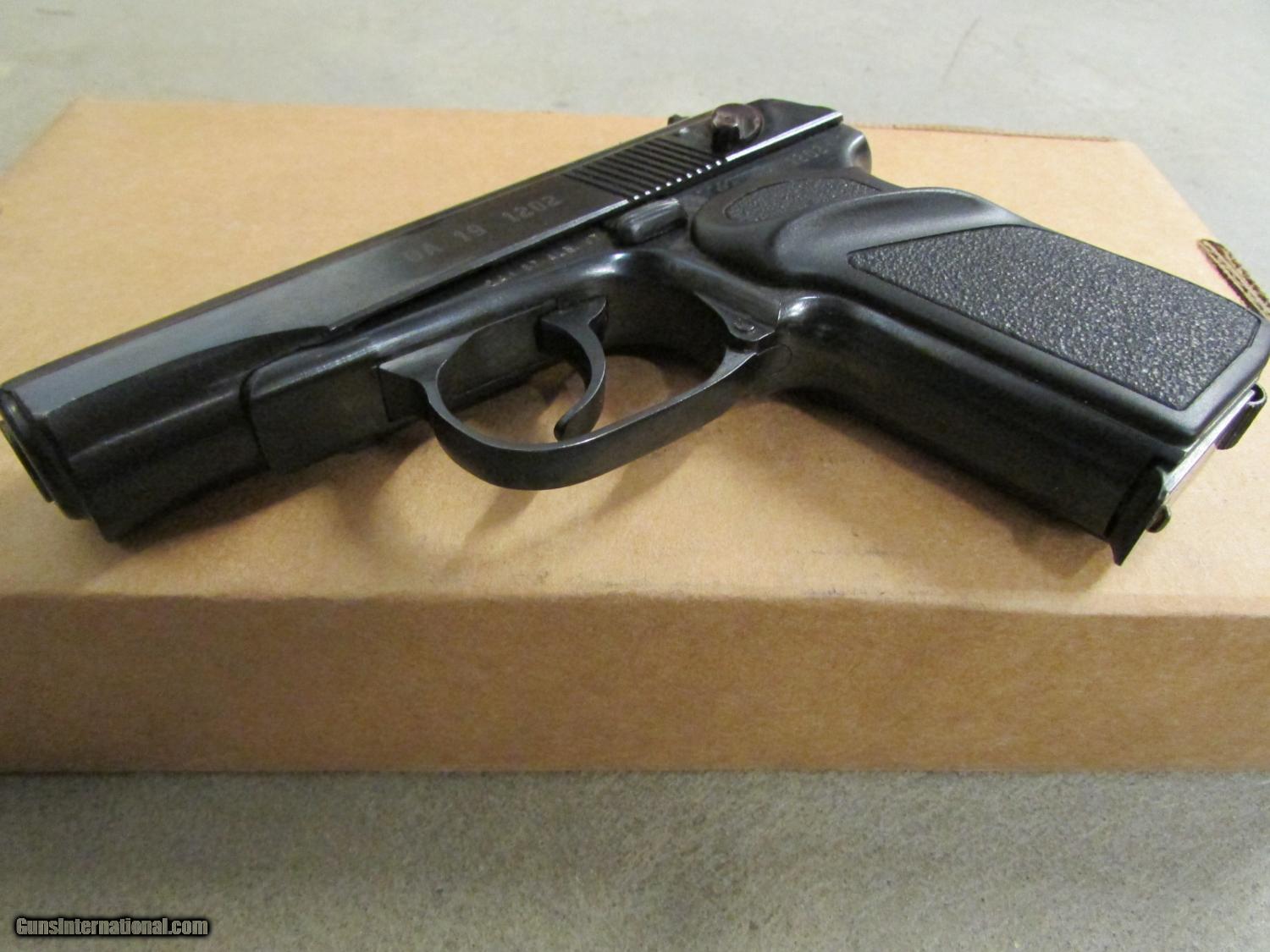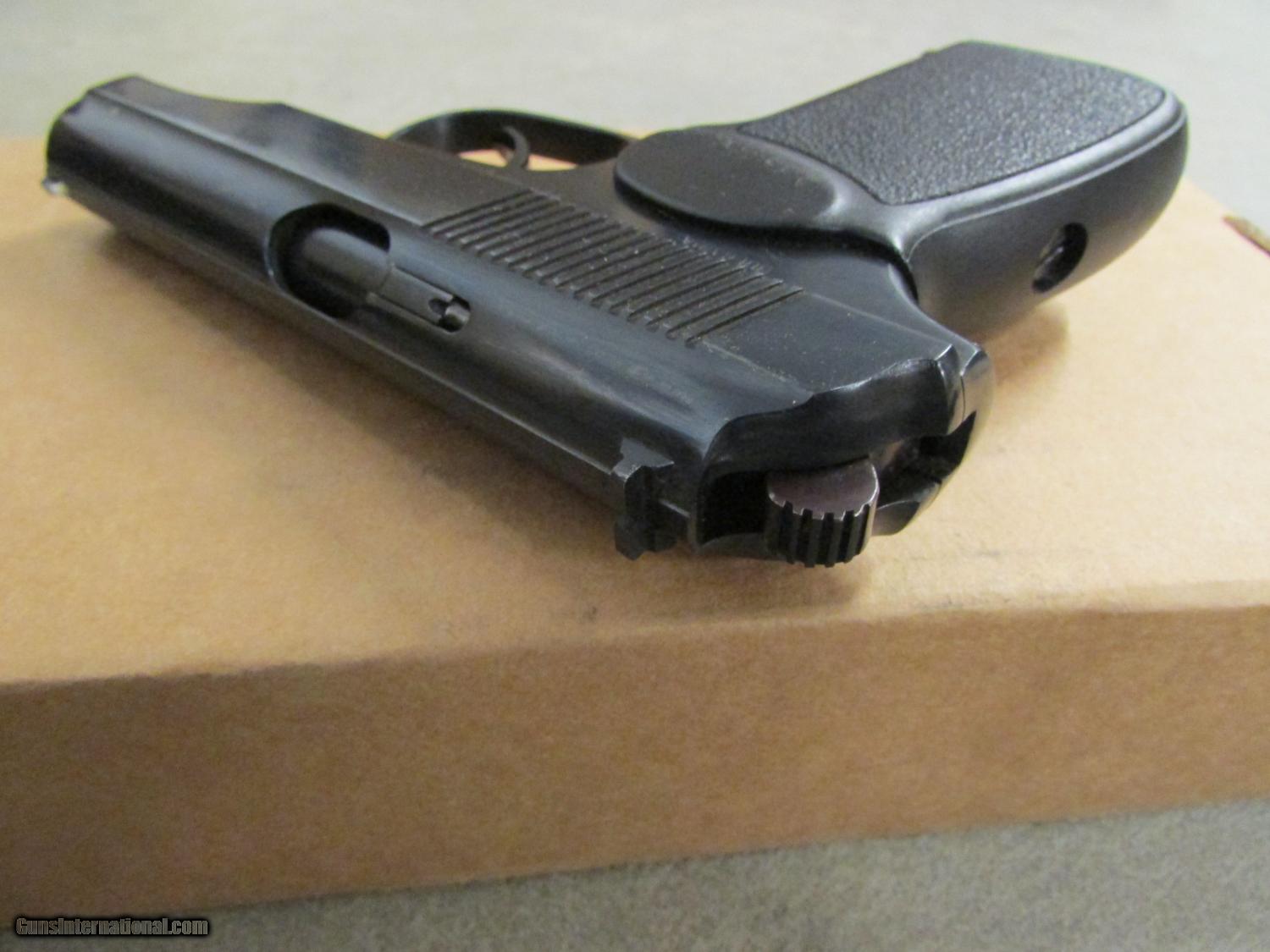 Description: Used in Good Condition, Ready to Ship! Buy It Now!! This Bulgarian Makarov is used, but is still in good condition and comes with a holdster and 2 magazines. The finish on the gun looks great showing little wear or scratches. The barrel is clean and the rifling is crisp. The pistol includes 2 magazines. Pictures are of the actual gun and are the best representation of it and its condition. Caliber: 9x18mm MAK Barrel Length: 3.68" Capacity: (2) 8 + 1 Finish: Blued Overall Length: 6.4" Weight: 44.00 oz. Shipping to Lower 48 Only, Shipping $30.00, KNOW YOUR LOCAL AND STATE LAWS!! SOLD |