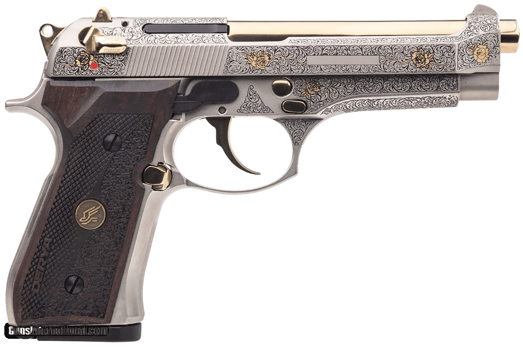 Description: Guns Listing ID: 547861 Derya Firearms Melik Fight Limited Run 9mm Luger 15+1 4.90\" Gold PVC Steel Barrel, Nickel w/Engraving & Gold Accents Serrated Steel Slide, Nickel w/Engraving Aluminum Frame w/Beavertail, Mahogany Dark Wood Grip The Melik firearm boasts a lustrous nickel finish, complemented by gold accents adorning the barrel and small parts. Each pistol features high-detail engraving, etched to showcase intricate artistry that sets it apart as a collector‚s treasure. The Melik delivers precision and reliability with a double/single action mechanism; thumb safety; fixed sights; works with Beretta 92 magazines and is a Limited Run of 500 Units. Includes magazine, case, Deyra bag, manual, WTTA flyer, cleaning rod and gun brush. Manufacturer: DERYA ARMS Model: MELIK FIGHT Caliber Info: 9MM LUGER (9x19 PARA) Condition: new Barrels: 4.9" BARREL Action: SEMI AUTOMATIC Finish: nickel Weight: 2 LBS. Price: $680.99 Contact Seller |