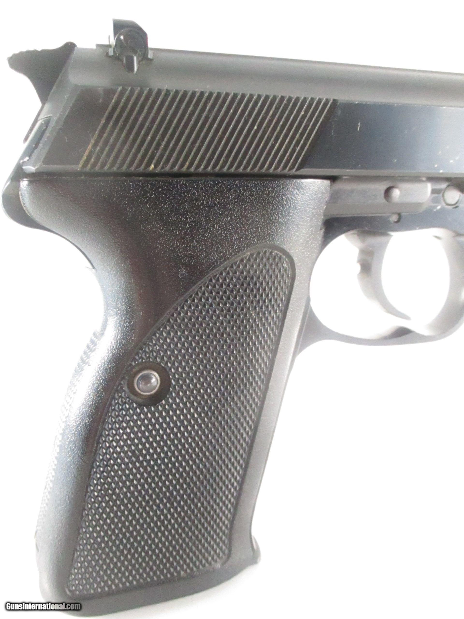 Description: Rarely fired German-made WALTHER Model P5 in like new condition, cal 9mm Para, 3.5" barrel, DA, adjustable rear sight, blue finish. Come with an extra (2nd) magazine & in original box with manual. NOTE: The WALTHER P5 is a recoil-operated, locked-breech, 9mm semi-automatic pistol. It utilizes the same design principles as the famous WALTHER P38 pistol of World War II fame. The barrel does not tilt following firing in the way that Browning's system does but rather moves straight back approximately 5 mm (0.20 in). This system results in a vary a curate pistol since the barrel is kept parallel with the frame during/after firing. The trigger is a stand double-action / single-action trigger. The slide lock also doubles as the decocker and is found on the left side of the frame. Pressing it once will release the slide, pressing it a second time will drop the hammer without firing the gun. [WIKEPEDIA] SOLD Manufacturer: Walther Model: P-5 Serial Number: 015556 Caliber Info: 9mm Para Condition: Excellent Metal Condition: Excellent Bore Condition: Mirror Clear Item Location: San Diego CA Proof:Nitro: Yes |