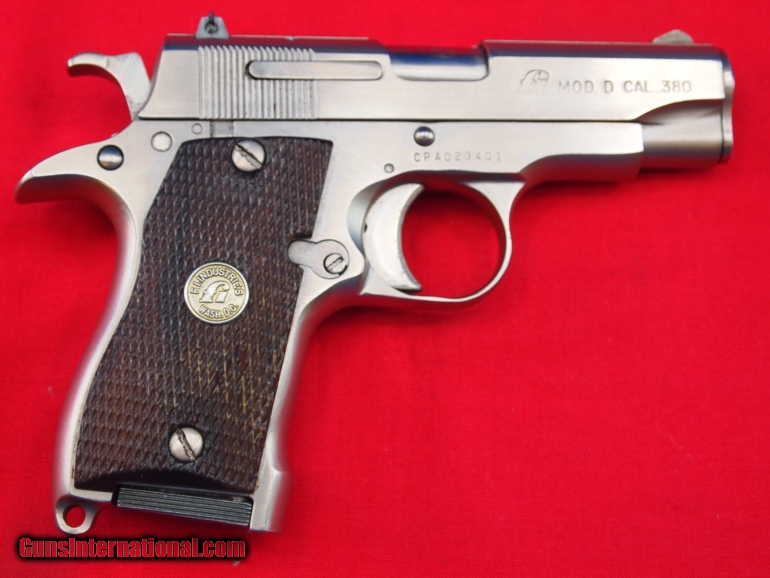 Description: Fi Industries model D .380 auto, looks like a colt 1911, but scaled down. this model has a 3" barrel with a very good bore, and action works good, stainless steel, the walnut checkered grips are very good with no issues, and has one factory mag. Add 3% for credit cards $25.00 S&H SOLD |