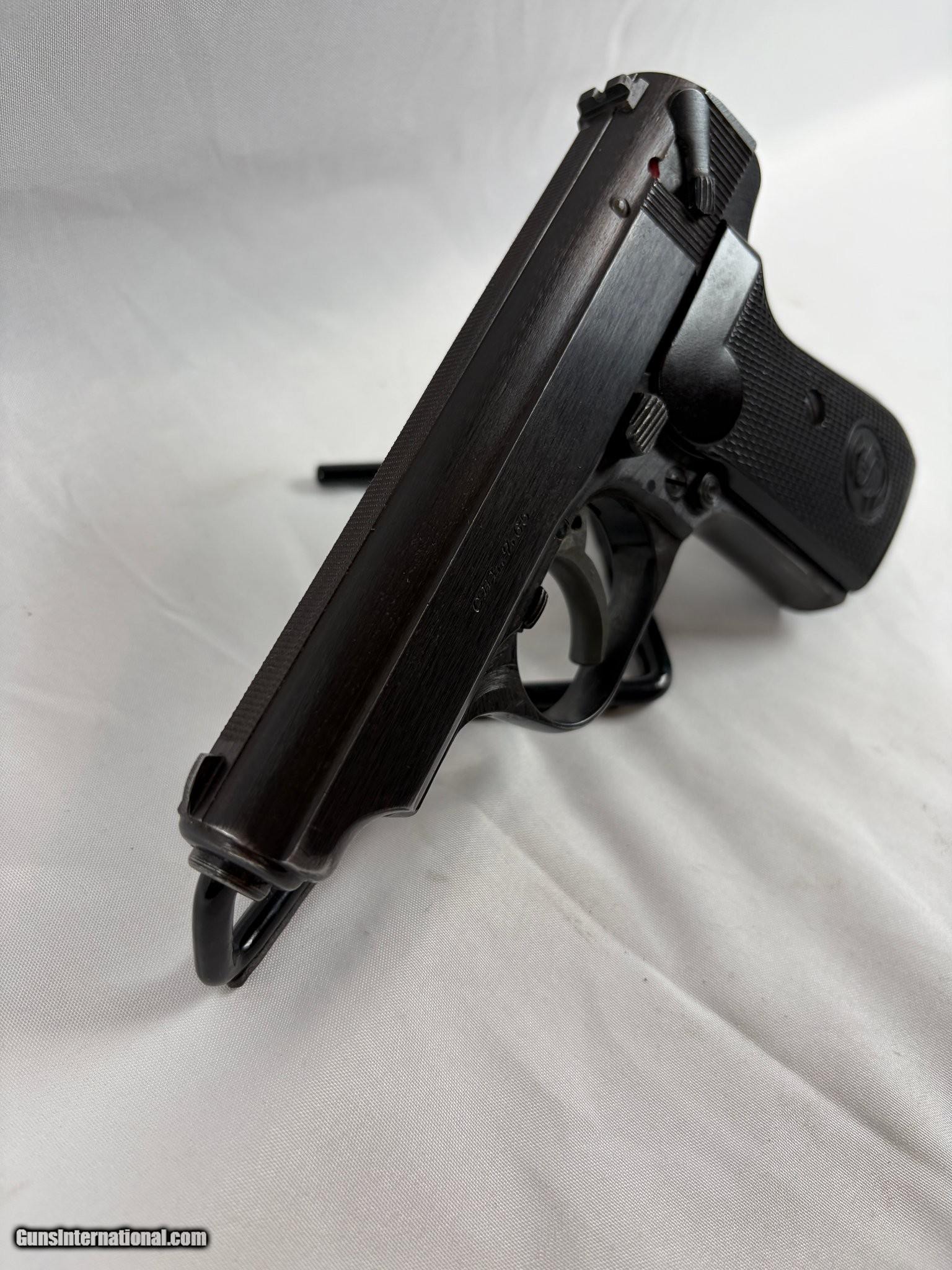 Description: Guns Listing ID: 579543 J.P. Sauer & Sohn 38H – 7.65mm (.32 ACP) – Very Good Condition — 3rd Wehrmacht-Variation Description: Offered here is a J.P. Sauer & Sohn 38H chambered in 7.65×17mmSR Browning (.32 ACP). This example is the 3rd Wehrmacht-variation, a wartime production variant sought by collectors for its period features and military provenance. The pistol is in very good condition with light handling wear and a clean, serviceable bore. It features an approx. 3.3–3.8\" factory barrel, a blued steel slide and frame, and original Bakelite/checkered grips. The Sauer 38H’s distinctive decocker/cocking lever, loaded-chamber indicator, and magazine safety are present. This wartime variation reflects production details consistent with Wehrmacht issue examples. Whether you’re a collector seeking a historically interesting wartime pistol or an enthusiast of classic small-frame designs, this Sauer 38H (3rd Wehrmacht-variation) offers compact handling, durable construction, and notable historical significance. Features: Straight blowback semi-automatic action (simple, reliable) Approx. 3.3–3.8\" factory barrel for a compact package Decocker / cocking lever and loaded-chamber indicator Typically fits an 8-round single-stack detachable box magazine Bakelite/checkered grips and steel construction — durable, historic styling Identified as a 3rd Wehrmacht-variation (wartime production) Includes: (1) Magazine SOLD Manufacturer: J.P. SAUER & SOHN Model: 38H Caliber Info: 7.65MM Condition: Used - Non-Certified Barrels: 3.25" BARREL Action: SEMI AUTOMATIC |