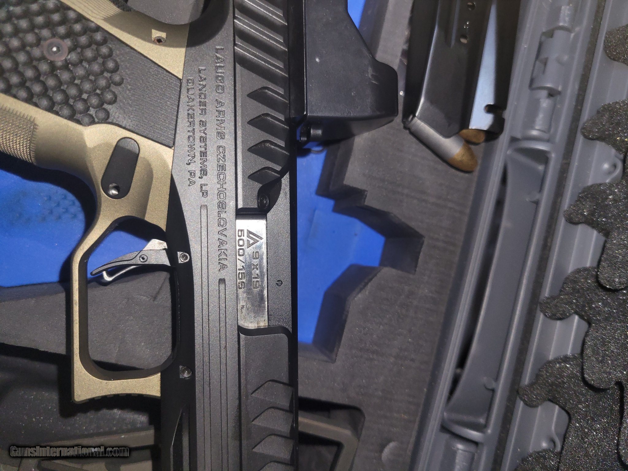 Description: Guns Listing ID: 546098 The Laugo Arms Alien Signature Edition Full Kit Build Number 156 is 1 of 500 in the limited run of Laugo Arms Alien pistols that was developed for Lancer Systems. Custom engraved with designer Jan Lucansky’s signature, and through agreement with Lancer Systems, there will never be another Laugo Arms firearm that will bear Mr. Lucansky’s name. Originally introduced to the U.S. market in January of 2020, the Signature Edition pistol sold out in just three weeks. This Alien Signature Edition Full Kit Includes: • Laugo Arms Alien pistol (9x19mm) • Custom engraved frame with designer Jan Lucansky’s signature • Custom engraved Signature Edition Slide • Five (5) 17-rd Magazines • Standard Fiber Optic Iron Sight Top Rail • Red Dot Top Rail with Laugo Red Dot Sight • Magwell • Custom Elornis Holster and Frame • Cleaning Supplies • Custom Hard Case signed by designer Jan Lucansky • Snap Cap • Tool kit This Laugo Arms Alien represents a quantum leap forward in semi-automatic pistol design; a specimen of evolutionary success with multiple patented and innovative performance features and a DNA deeply rooted in competition. Freed from the confines of obsolete locking mechanisms and conventional trigger designs, the Alien ushers in the dawn of a new breed… the first of its kind. World’s lowest bore axis reduces muzzle flip for an incredibly flat recoil impulse Fixed barrel eliminates movement during the firing cycle, resulting in exceptional accuracy Innovative gas delayed blowback system brings the pistol back on target faster Interchangeable slide rails and magazine wells allow for misson-specific adaptability Non-reciprocating top rail provides an uninterrupted sight picture and target focus Exacting quality derived from industry-leading manufacturing processes and equipment Manufactured and hand-fitted by Laugo Arms Czechoslovakia. Proudly imported and distributed by Lancer Systems. This is not a new unit, but is in excellent condition. Pictures represent product condition. Manufacturer: LAUGO ARMS Model: Laugo Arms Alien Signature Edition Full Kit Caliber Info: 9MM LUGER (9x19 PARA) Condition: Used - Non-Certified Barrels: 4.8" BARREL Action: SEMI AUTOMATIC Finish: black / mica bronze Price: $6,499.99 Contact Seller |