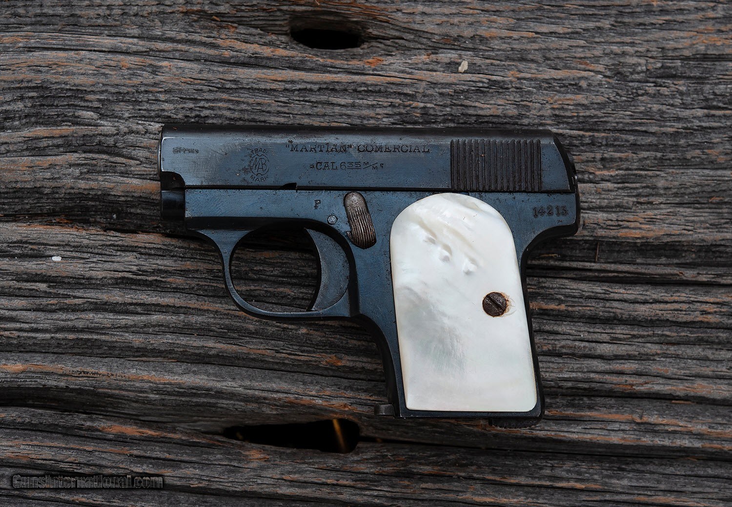 Description: Martian - Commercial - 380 - Item Number: MAR14213 Barrel length: |/23| Finish: Blue Lop: NA Lbs: |/23| Ozs: 6 Overall condition: Fair Stock condition: Fair Metal condition: Fair Stock:Original Metal:Original Type of Case: none Manufactured in: SPA Comments: Gun has some light rust spots. HG-33 SOLD |