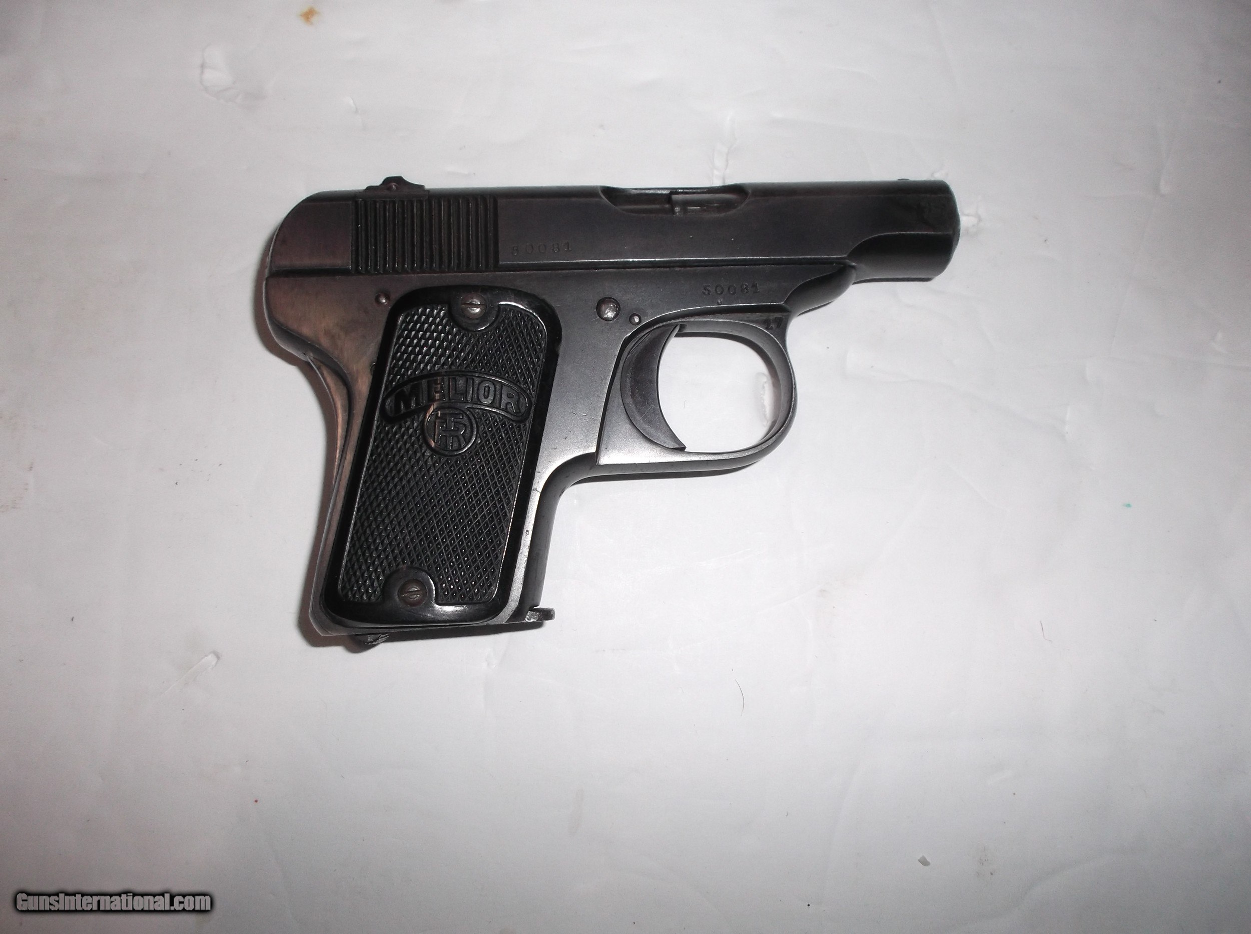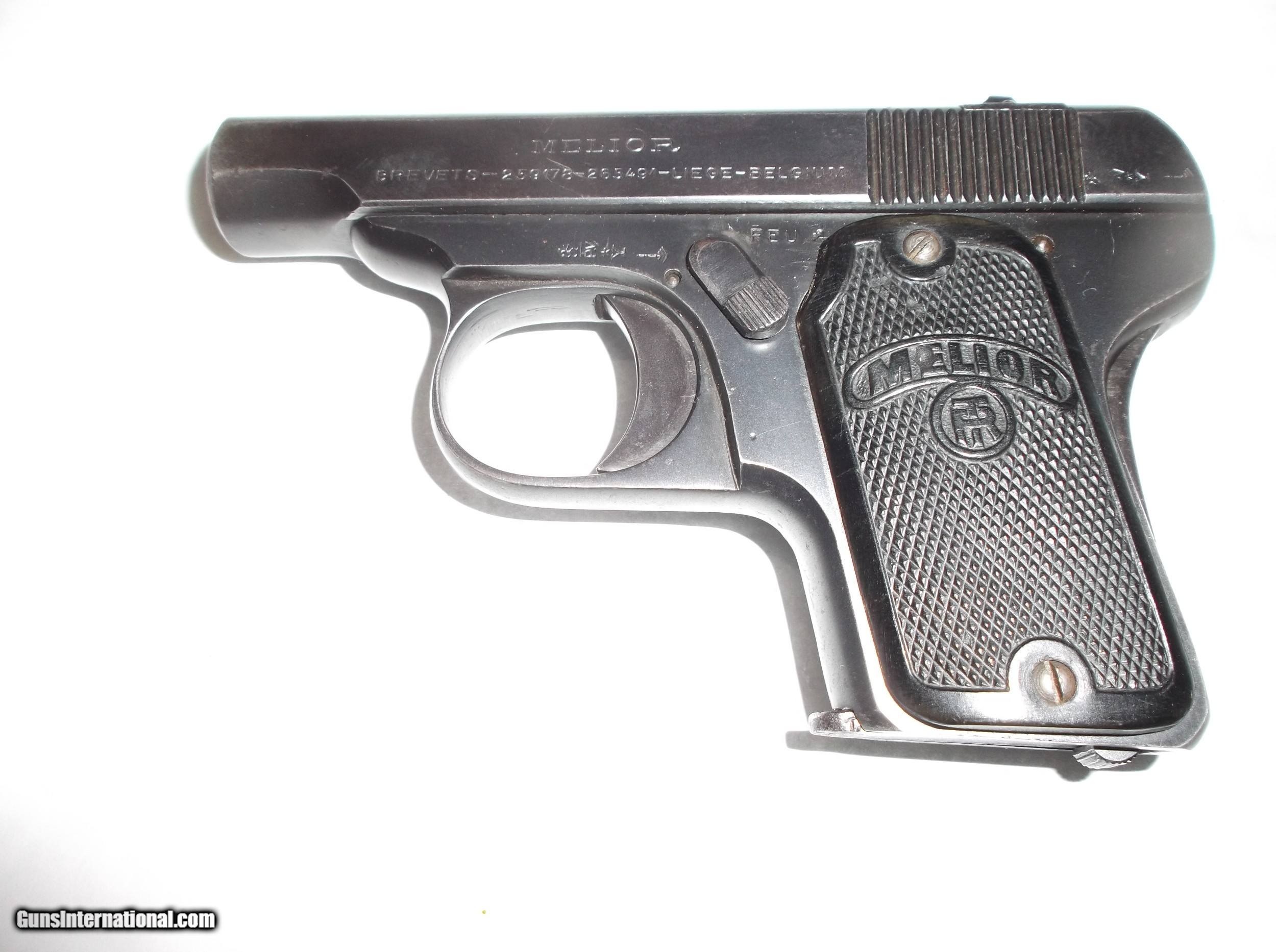 Description: Melior 25 auto belgium made in very good to exc cond great blue and perfect grips . a great little action .free shipping ON HOLD SOLD Handgun Caliber: .25 ACP (6.35mm Browning, 6.35×16mmSR) |