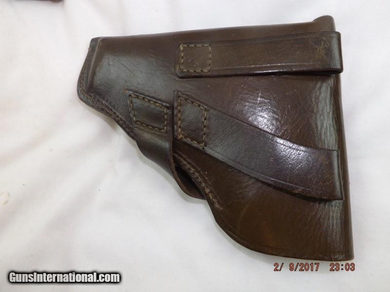 Description: Korovin tk scarce russian pistol - . 25acp - - about very good condition withstained nickel finish thinning at the grip straps. The left grip is missing the top section of it, the right grip is very good. This was the first russian made semi-auto pistol, manufactured at the tula arsenal, and quite scarce in this country. - s/n340514 SOLD Curio/Relic: Yes |