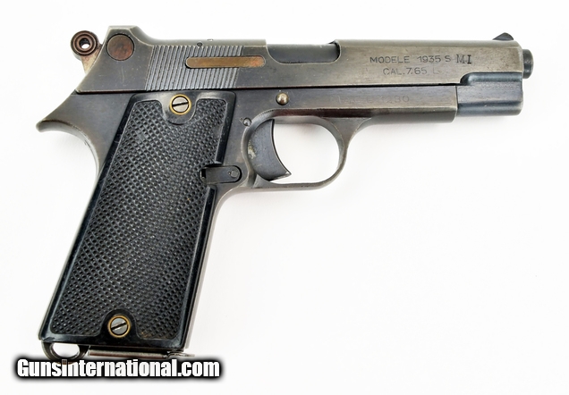 Description: M.A.C. 1935-S 32 French Long caliber pistol. Fine Condition, excellent bore. Gun has 92-94% blue. Action works perfectly. Grips are excellent. Fine French Military issue automatic pistol.