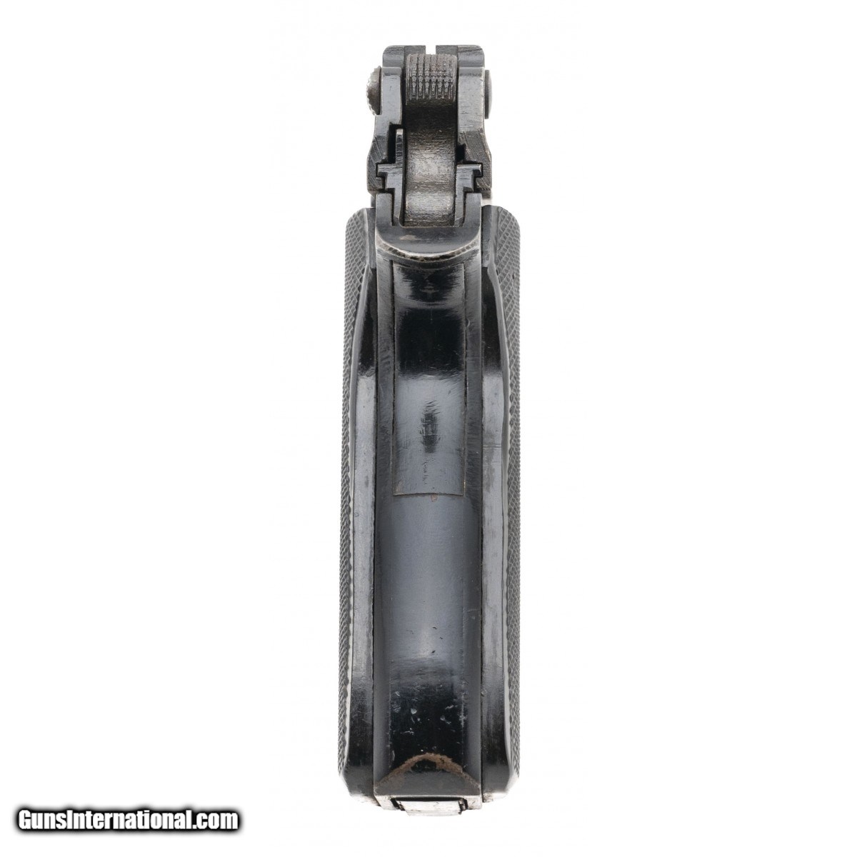 Description: " SN: D0472A. Made in 1940 with a 4.29-inch barrel chambered for the 7.65x20mm Longue cartridge. Overall excellent condition with a bright bore, the original black Parkolac cooked varnish across the metal parts & a handsome pair of checkered Bakelite grips in excellent condition. A German Waffenamt is present on the left side of the frame which indicates that this example was type standardized in German service under the designation Pistole 625(f). Comes with an 8-round detachable box magazine. Consignment SOLD Curio/Relic: Yes |