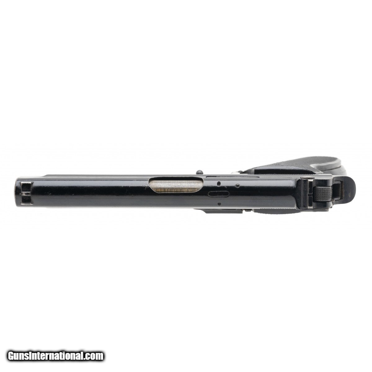 SN: D0472A. Made in 1940 with a 4.29-inch barrel chambered for the 7.65x20mm Longue cartridge. Overall excellent condition with a bright bore, the original black Parkolac cooked varnish across the metal parts & a handsome pair of checkered Bakelite grips in excellent condition. A German Waffenamt is present on the left side of the frame which indicates that this example was type standardized in German service under the designation Pistole 625(f). Comes with an 8-round detachable box magazine. Consignment