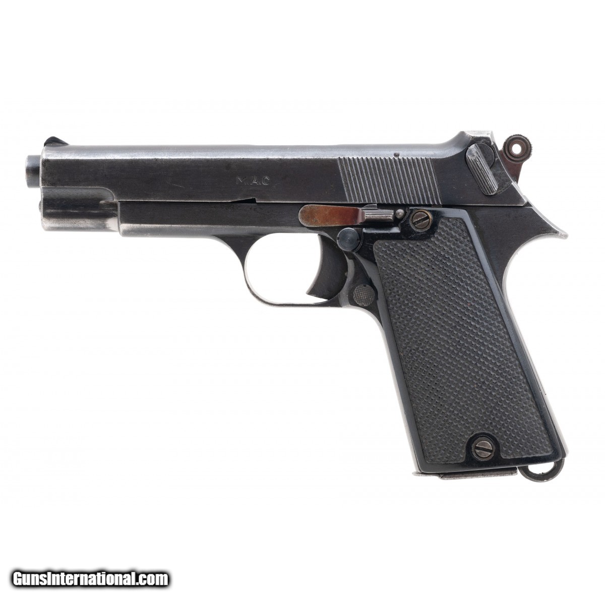 Description: " Serial No. MAC-C1636, circa 1950s, 7.65L, 4.25"" round barrel. Possible Vietnam bring back has there is no import mark. Bluing is beginning to thin, bore is bright and shiny with strong rifling noted. Grips are good with no cracks visible. These side arms saw service with the French were in Vietnam! SOLD |