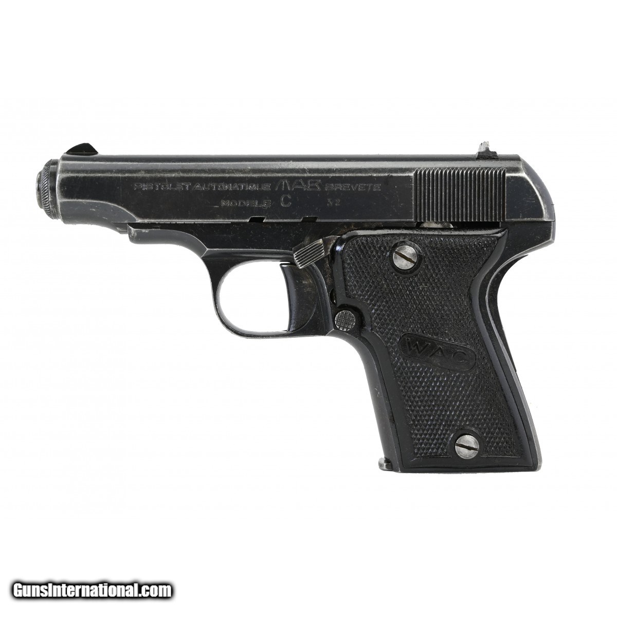 Description: " MAB C 7.65mm caliber pistol. French made all steel compact auto, in good condition. SOLD |