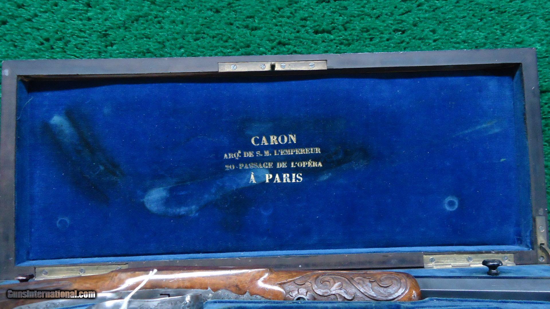 Description: On the barrel is "F. P. Caron, Arq. DE S.M. L' EMPEREUR A PARIS" . Caron was the gunmaker for Louis-Napoleon Bonaparte (President/Emperor Napoleon III). After two failed coups and years in exile, Napoleon returned to France and was elected as the first president of the Second French Republic. He served from 1848 to 1852 and seized power as Emperor and reigned until 1870. Based on this history, this pistol was produced between 1852 and 1870. This single shot is of the Flobert variety. A very simple mechanism as the hammer does all the functions. This is for the small 5.5mm rim fire. 9" oct bbl with engraving towards the chamber and also at the muzzle. Deep relief engraving on the stock towards the front and a typical French pistol grip with a very ornate pistol grip cap. Likewise the trigger guard is European style engraving also. Furniture is nickel plated with nearly all nickel remaining. Some light wear. The bbl has had a refinish years ago. Well done and not overbuffed. Case has the marking on the lid. Blue felt lining. Pistol fits perfectly and has probably been with it since it was built. This type of gun displays beautifully. Leroy Merz Antique Firearms specializes in antique and vintage Winchesters and other fine American firearms. Since 1965 Mr. Merz has taken part in the world of firearms and has been a contributor to many well known reference books. We have hundreds of additional guns in every price range at our home online. Search for Merz Antiques in google. SOLD Antique: Yes |