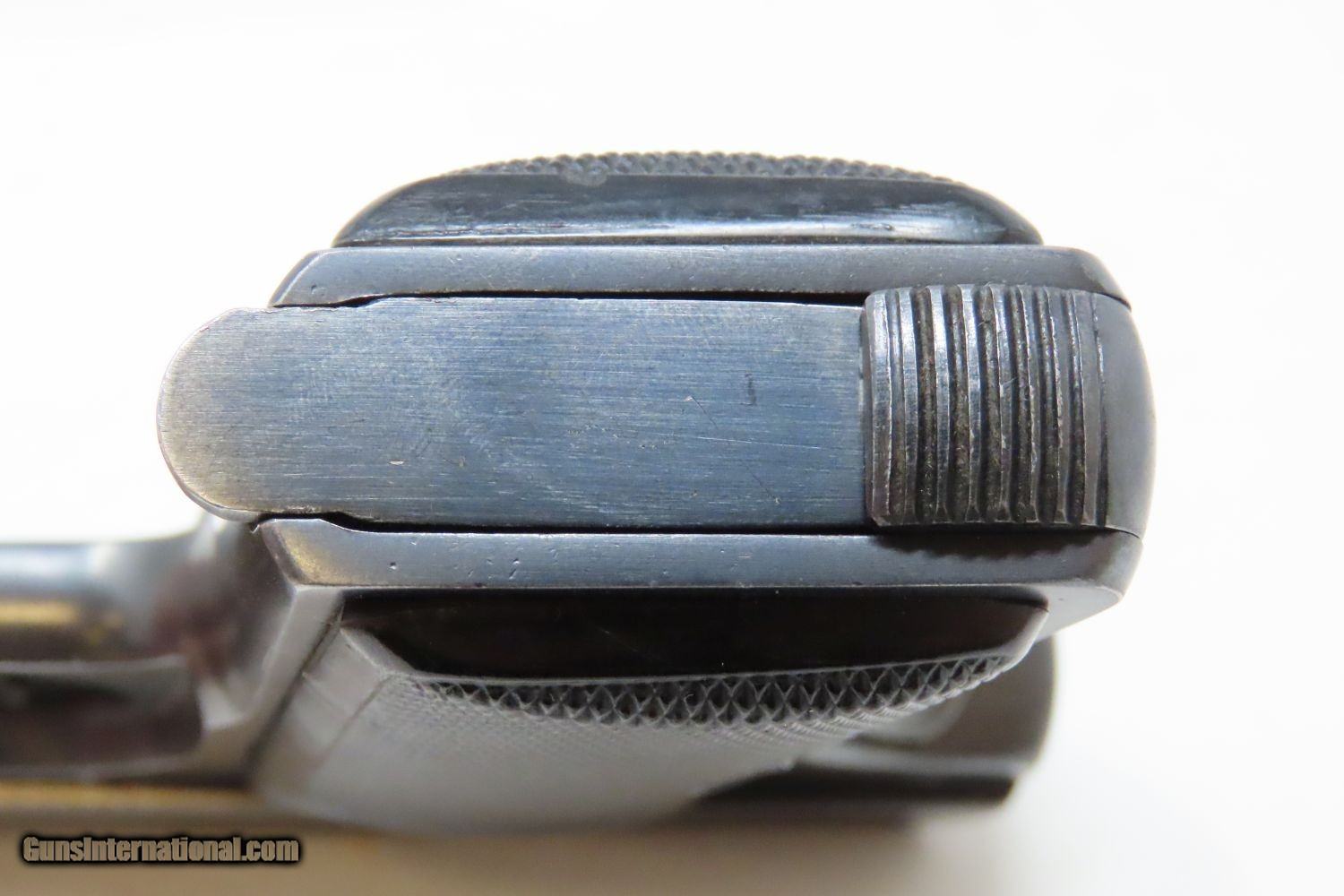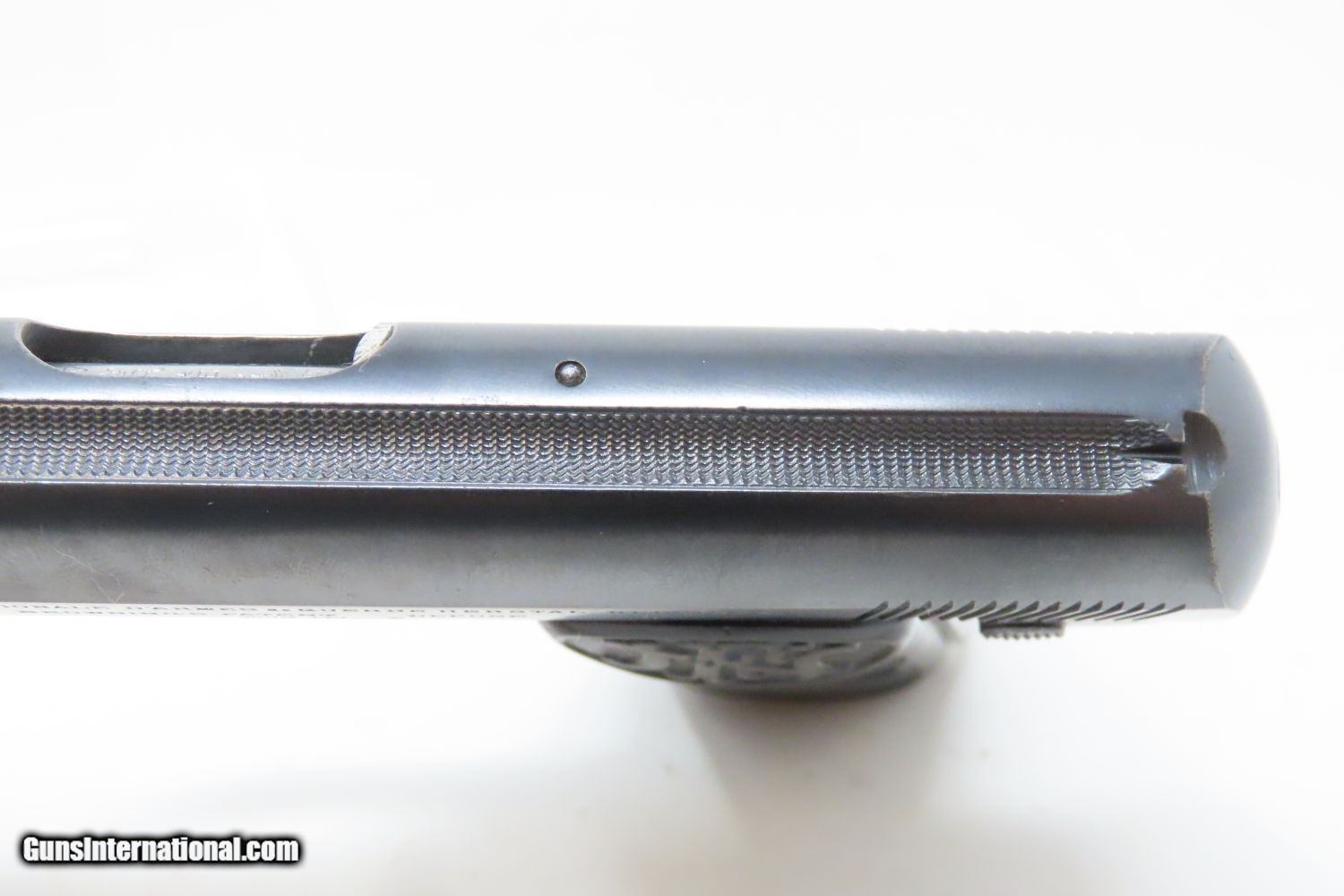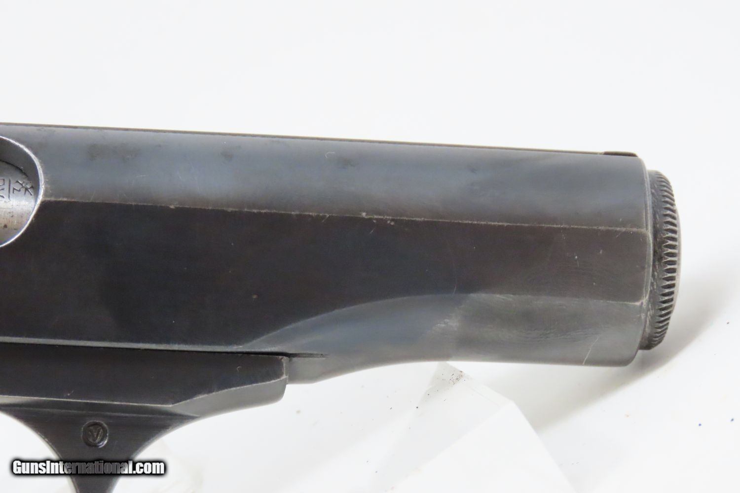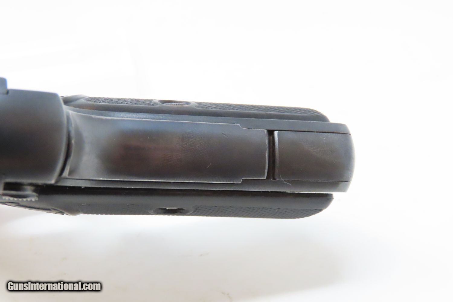 Description: FABRIQUE NATIONALE Model 1910 Semi-Automatic 7.65mm Cal. C&R Pocket Pistol Belgium Made; Designed by John Browning Here we present a Fabrique Nationale Model 1910, made circa the late 1910s, sometime around the end of World War I in Belgium with a production run between 1910 and 1954. The FN Model 1910 is a blowback-operated, semi-automatic pistol designed by John Browning and manufactured by Fabrique Nationale of Belgium. The Model 1910, also known as the Browning model 1910, was a departure for Browning. Before, his designs were produced by both Fabrique National in Europe and Colt Firearms in the United States. During this era, Colt and FN had an agreement not to infringe on each other’s territory, Colt chose not to produce it. So, Browning chose to patent and produce this design in Europe only. Historically speaking, an FN Model 1910, serial number 19074, was the handgun used by Gavrilo Princip to assassinate Archduke Franz Ferdinand of Austria in Sarajevo on June 28, 1914, the act that precipitated the First World War. During both World War I and World War II, the FN 1910 was used by the militaries of Germany, Belgium, the Netherlands, France, Finland, and Japan. The overall condition is fine. Original blued finish. The action is excellent. The bore is bright with sharp rifling. The grips are in great shape. This is a superior example of a very neat semi-auto from FN! This firearm is classified as a Curio & Relic. Barrel is 3-1/2 inches. Caliber: 7.65mm (.32 ACP) Overall condition as seen in photos. Very Fast. Very Safe. FREE SHIPPING. Will need to be sent to your local FFL or C&R licensee. This firearm is classified as a Curio & Relic. Guaranteed AUTHENTIC & Includes CERTIFICATE OF AUTHENTICITY. ancestryguns $1500 #215525 SOLD Curio/Relic: Yes |