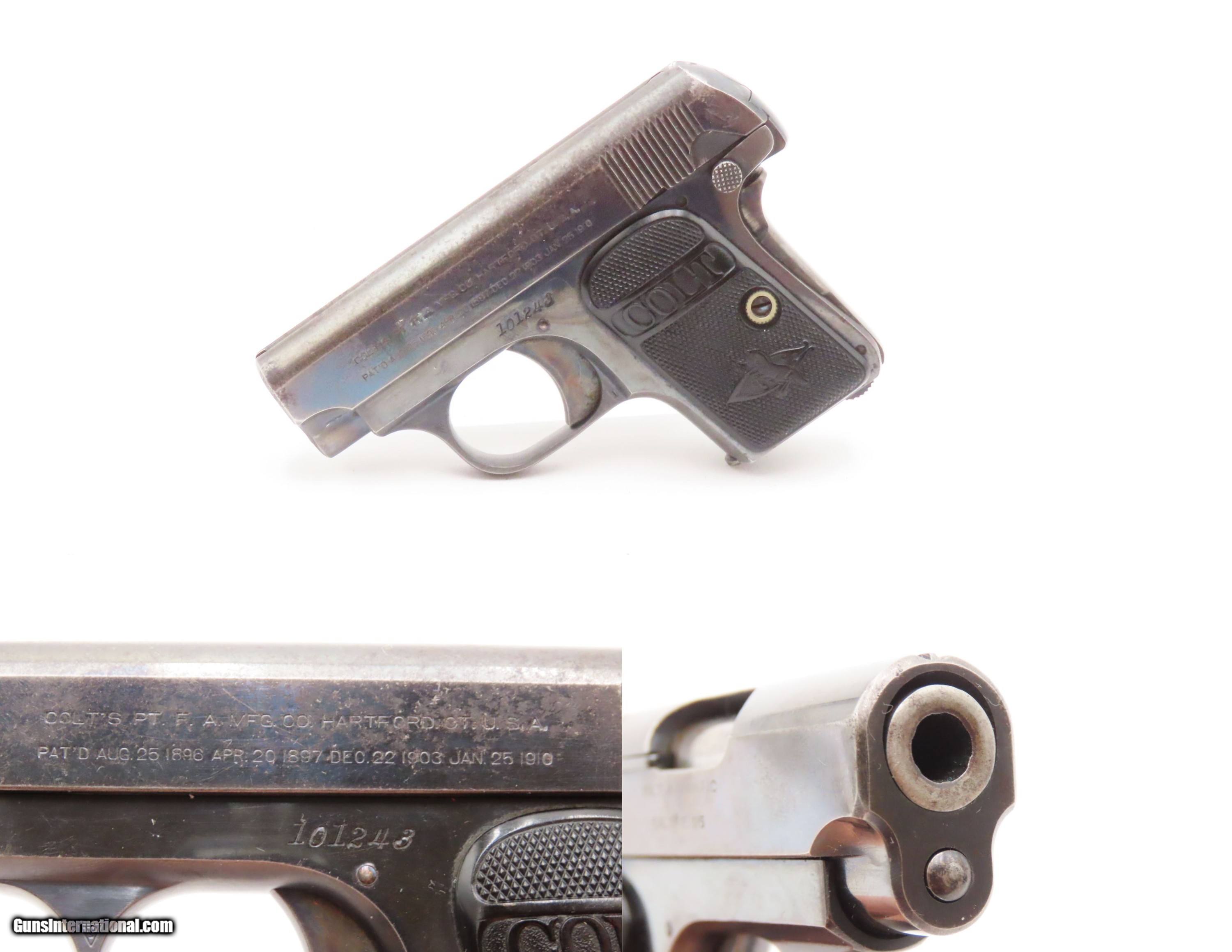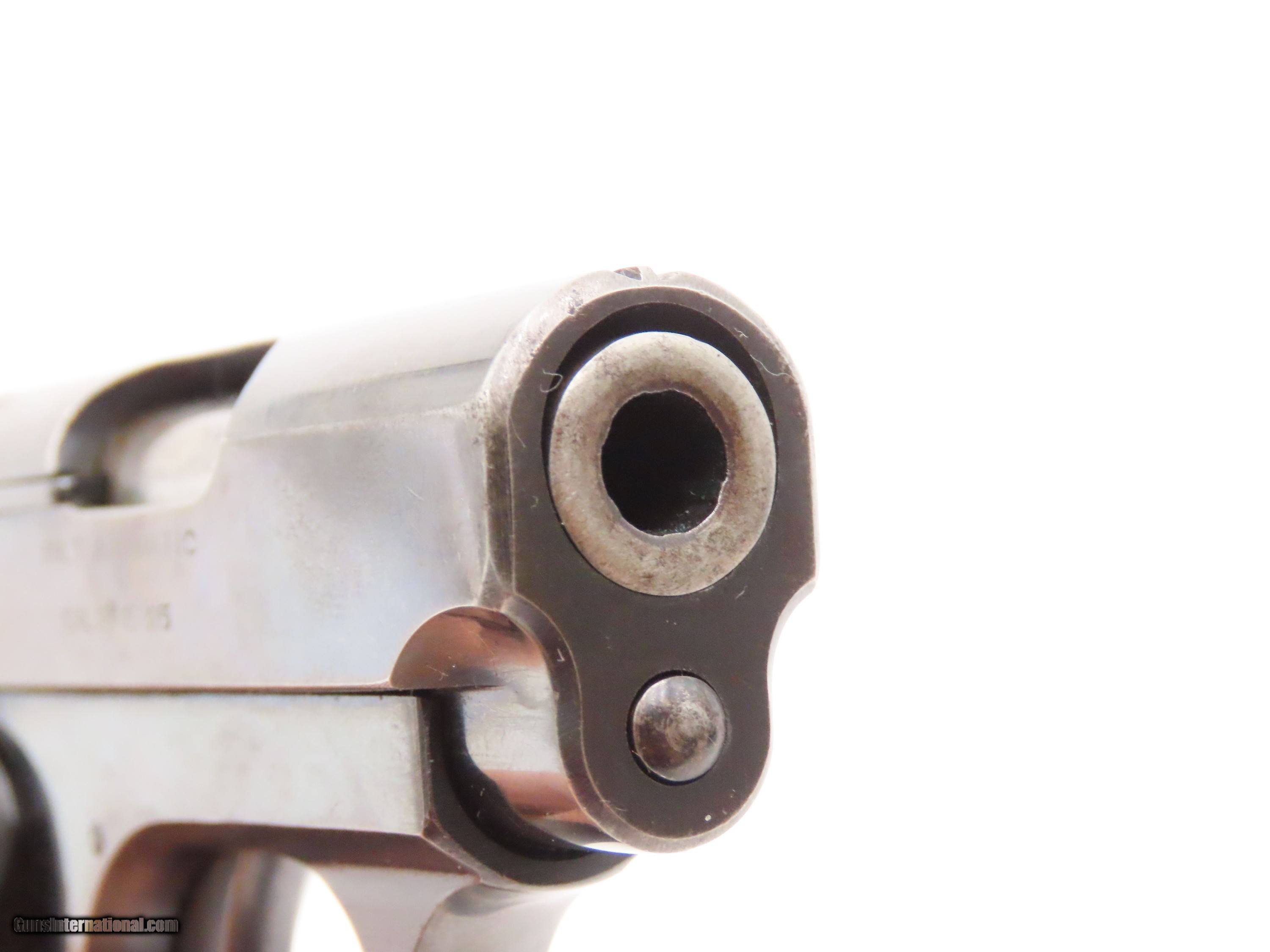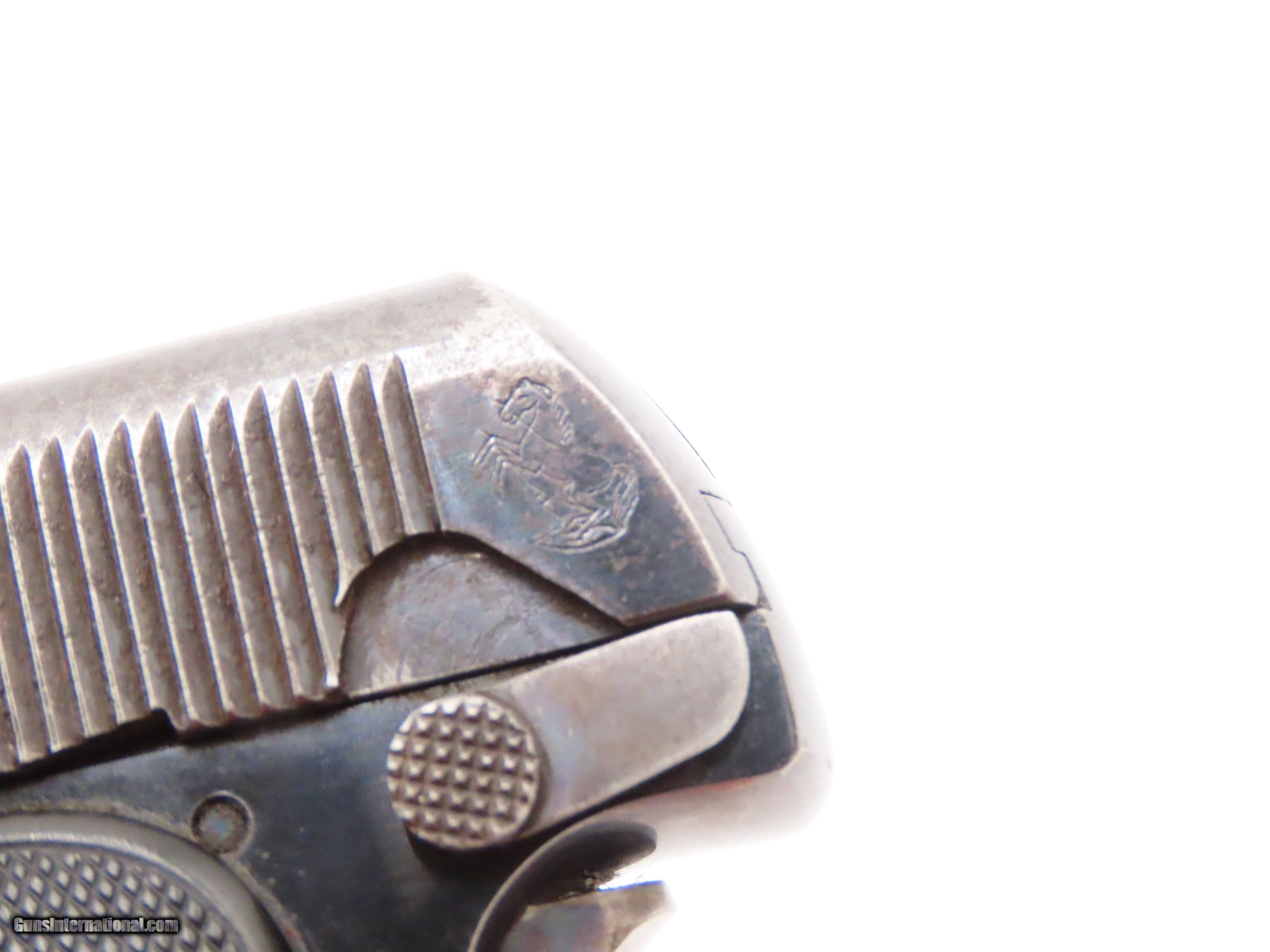 Description: French “VELO DOG” Revolver C&R POCKET PISTOL GOLD MOTHER OF PEARL “REVOLVER de POCHE” Made for Cyclists Against Mean Dogs! Here we present a C&R French “Velo Dog” Folding Trigger Revolver made circa the early 1900s. In the late 19th and early 20th century. The Velodog, also known as a “Revolver de Poche, was a French design by Charles-François Galand specifically made for carry by cyclists to defend themselves against dogs. In fact, the name “Velodog” combines the word “Velocipede” with “Dog”, which is quite interesting. It was copied & produced all over Europe into the beginning of the 20th Century. It features a small size, a smooth external hammer, gold inlay, and folding trigger. Another feature on many models of Velo-Dogs is the lack of a trigger guard, and a trigger that folds into the body of the weapon when not in use. For the more humane, there were cartridges loaded with cayenne pepper or dust, or which had bullets made from wax, wood or cork. The overall condition is near fine. Original blue finish with gold flourishes on the chambers of the cylinder. Solid mother of pearl grips. The action is strong. The bore is in good condition with nice rifling. A handsome little personal defense revolver! Own the original! This firearm is classified as a Curio & Relic. Barrel is 2-1/16 inches. Caliber: 5.5mm Velodog Overall condition as seen in photos. Very Fast. Very Safe. FREE SHIPPING. Will need to be sent to your local FFL or C&R licensee. This firearm is classified as a Curio & Relic. Guaranteed AUTHENTIC & Includes CERTIFICATE OF AUTHENTICITY. ancestryguns $1600 #250277 SOLD Curio/Relic: Yes |