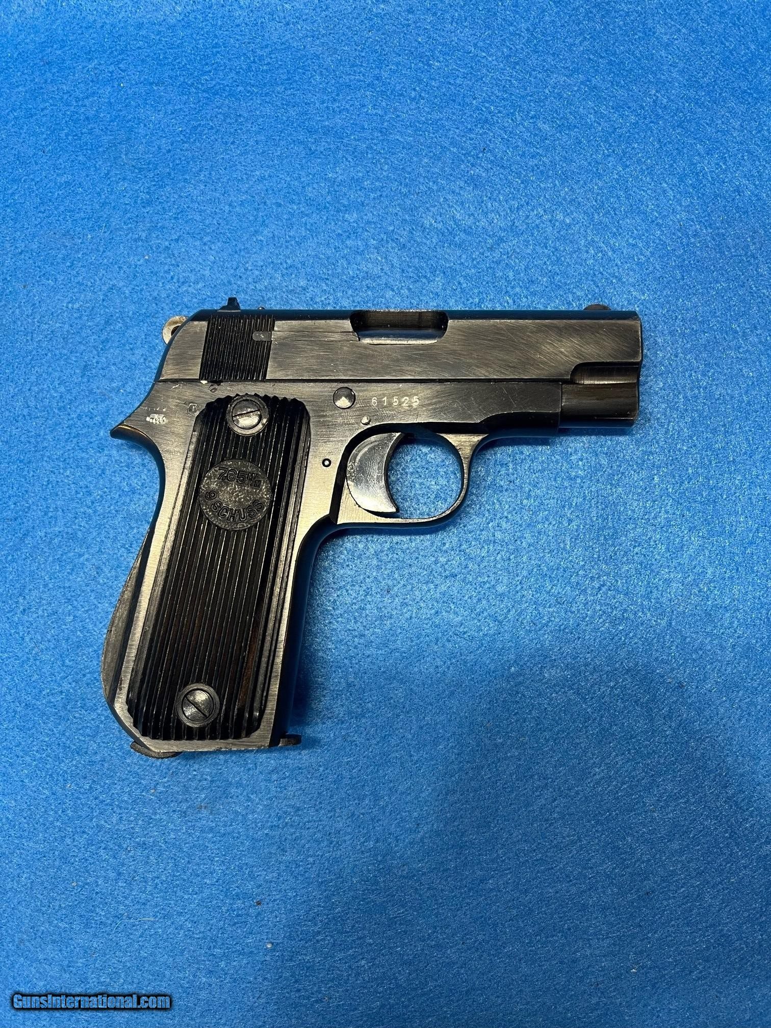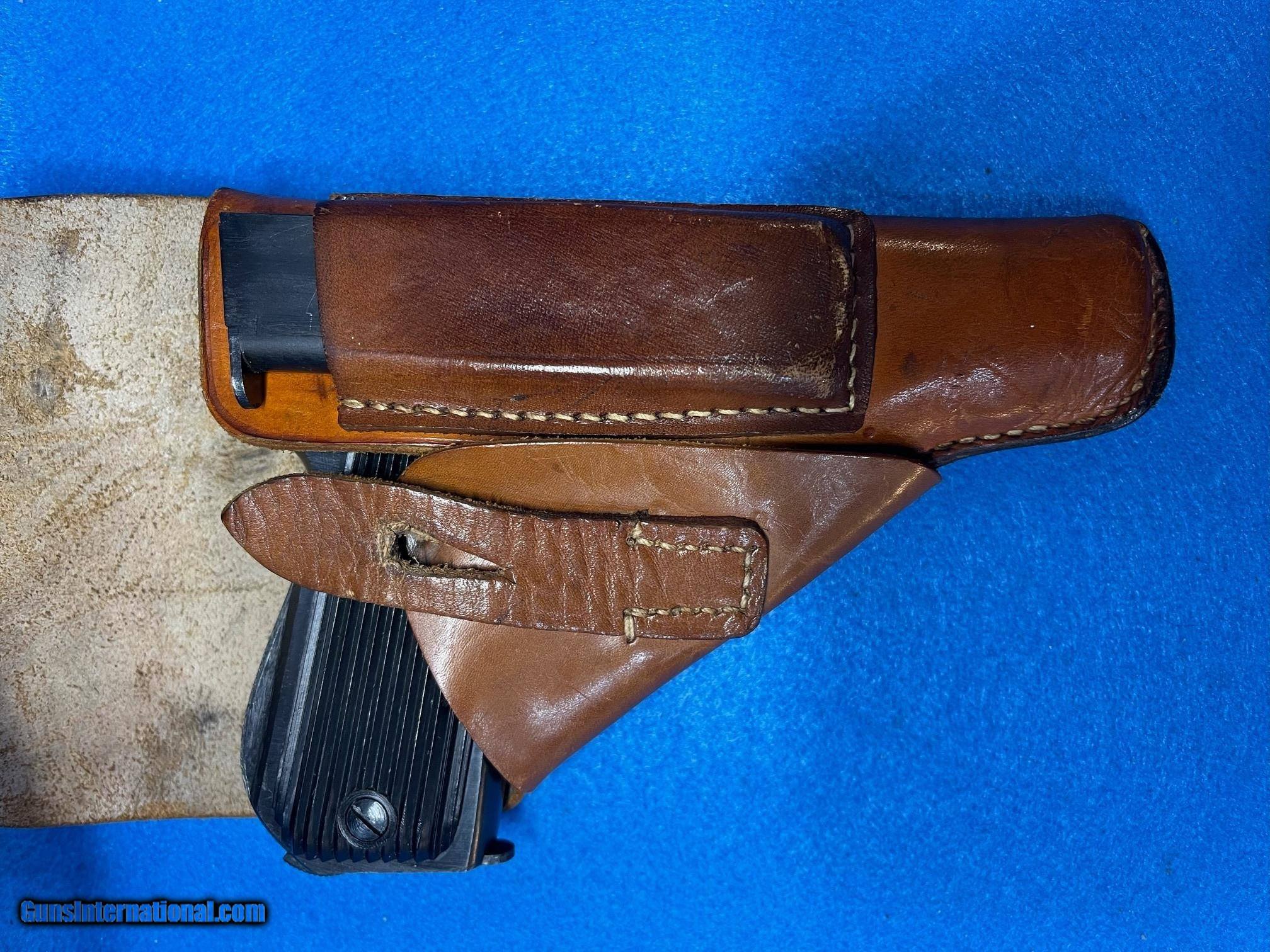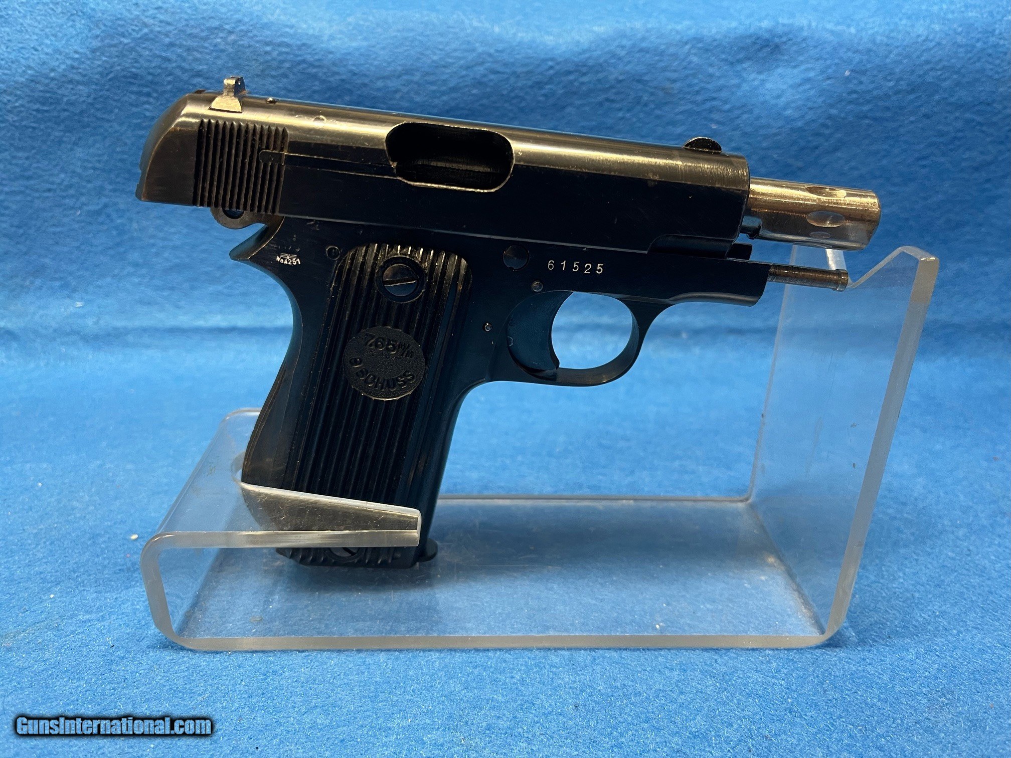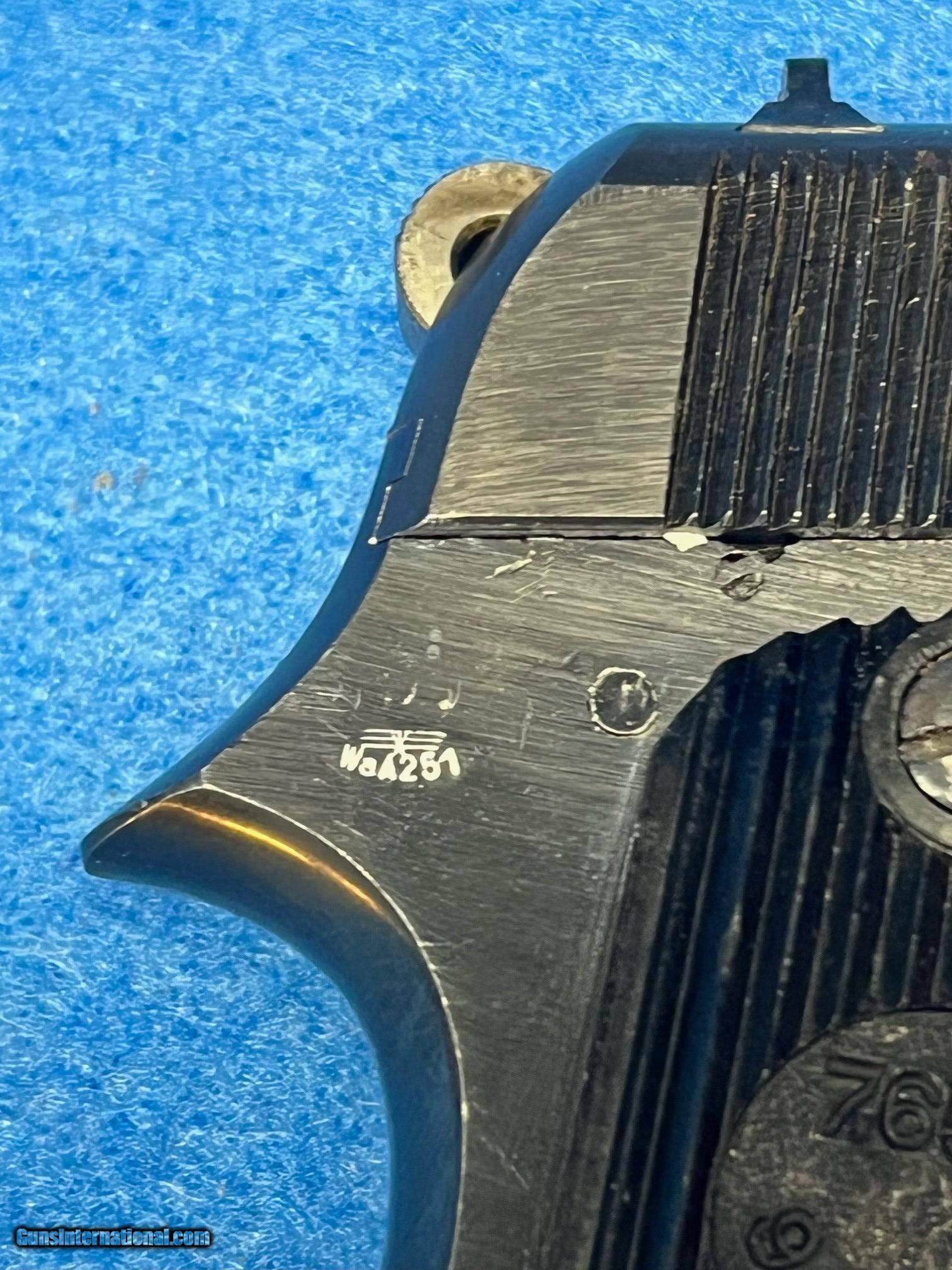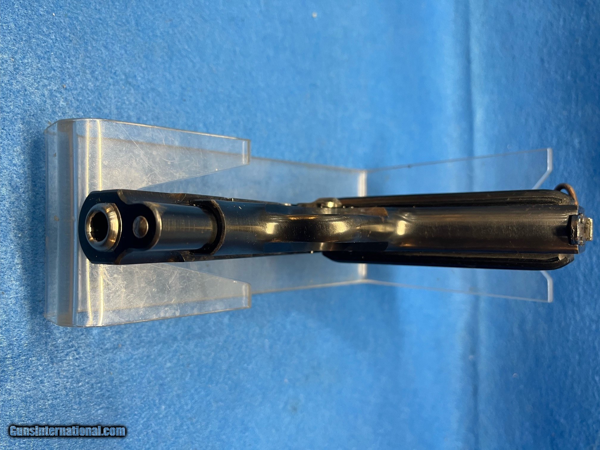 Description: MINTY NAZI FRENCH "UNIQUE"* RIG, CAL . 7.65, SER 61525 MFG.1941. WHAT A HISTORY. THIS GUN WAS MADE IN THE NAZI OCCUPIED FRENCH "UNIQUE" FACTORY . "THE BULK OF THESE SMALL, WELL BUILT PISTOLS , WERE REPORTED SHIPPED TO THE THE NAZI LUFTWAFFE. THIS "HOLSTER QUEEN" HAS RETAINED ABOUT 99.+% OF THE FACTORY FINISH. THE LITTLE LOSS THERE IS, IS FROM SOME VERY SLIGHT SHARP EDGE SILVERING. THERE ARE NO RUST SPOTS, RUB MARKS OR SCRATCHES. THE PLASTIC GRIP PANELS ARE PERFECT, AS ARE THE GRIP SCREWS . ALL PARTS MATCH AND HAVE THE PROPER NAZI WAFFENAMTS.** THE SLIDE RAILS, BOLT FACE AND FEED RAMP SHOW VERY LITTLE IF ANY USE. THE BORE IS MIRROR BRIGHT WITH RAZOR SHARP RIFLING. IT COMES WITH TWO ORIGINAL "UNIQUE" MAGAZINES AND AN ORIGINAL "UNIQUE" HOLSTER IN FINE CONDITION. FOR THE PICKY COLLECTOR THAT WANTS A MINTY CENTERPIECE FOR HIS COLLECTION THIS "HOLSTER QUEEN" HAS IT ALL.... INVESTMENT PRICED AT ....$1795.*** **THE WHITE WAX CRAYON IS TO SHOW THE MARKINGS ARE PROPER.. IT IS EASILY REMOVED WITH LIGHTER FLUID AND A BRUSH.. WE WILL DO IT ON REQUEST. ***100% SATISFACTION GUARANTEED. *MANUFACTURED D'ARMES DES PYRENNES HENDAYE. SOLD Curio/Relic: Yes Handgun Caliber: .32 ACP (7.65x17mm Browning SR) |