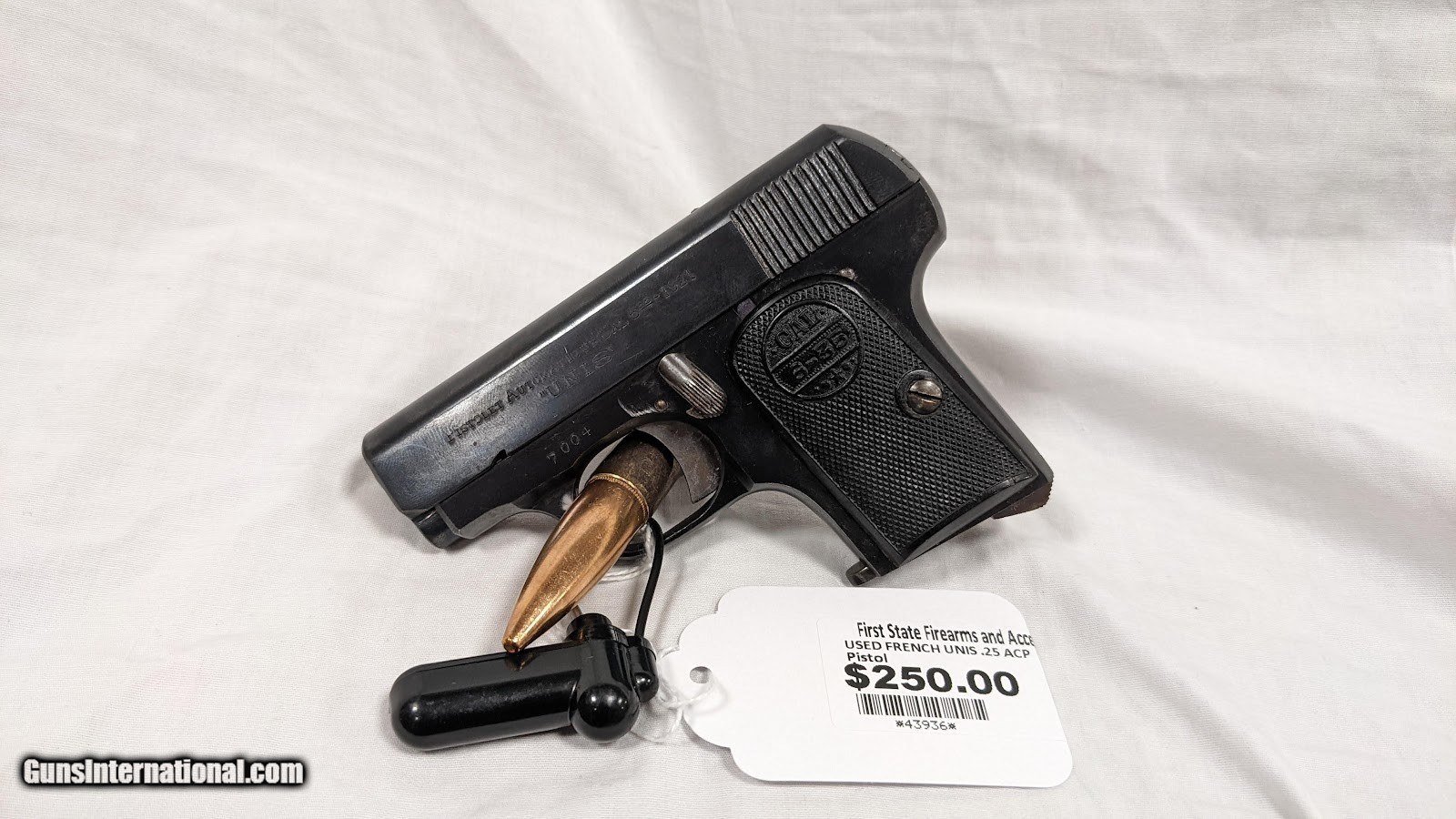 Description: This is a used item. Call or email for additional photos and for a list of included items (case, magazines, etc...) For Sale from First State Firearms & Accessories AKA The Gun Shop in New Castle, DE. Shipping is $25.00. SOLD Handgun Caliber: .25 ACP (6.35mm Browning, 6.35×16mmSR) Manufacturer: FRENCH Model: UNIS Condition: USED |