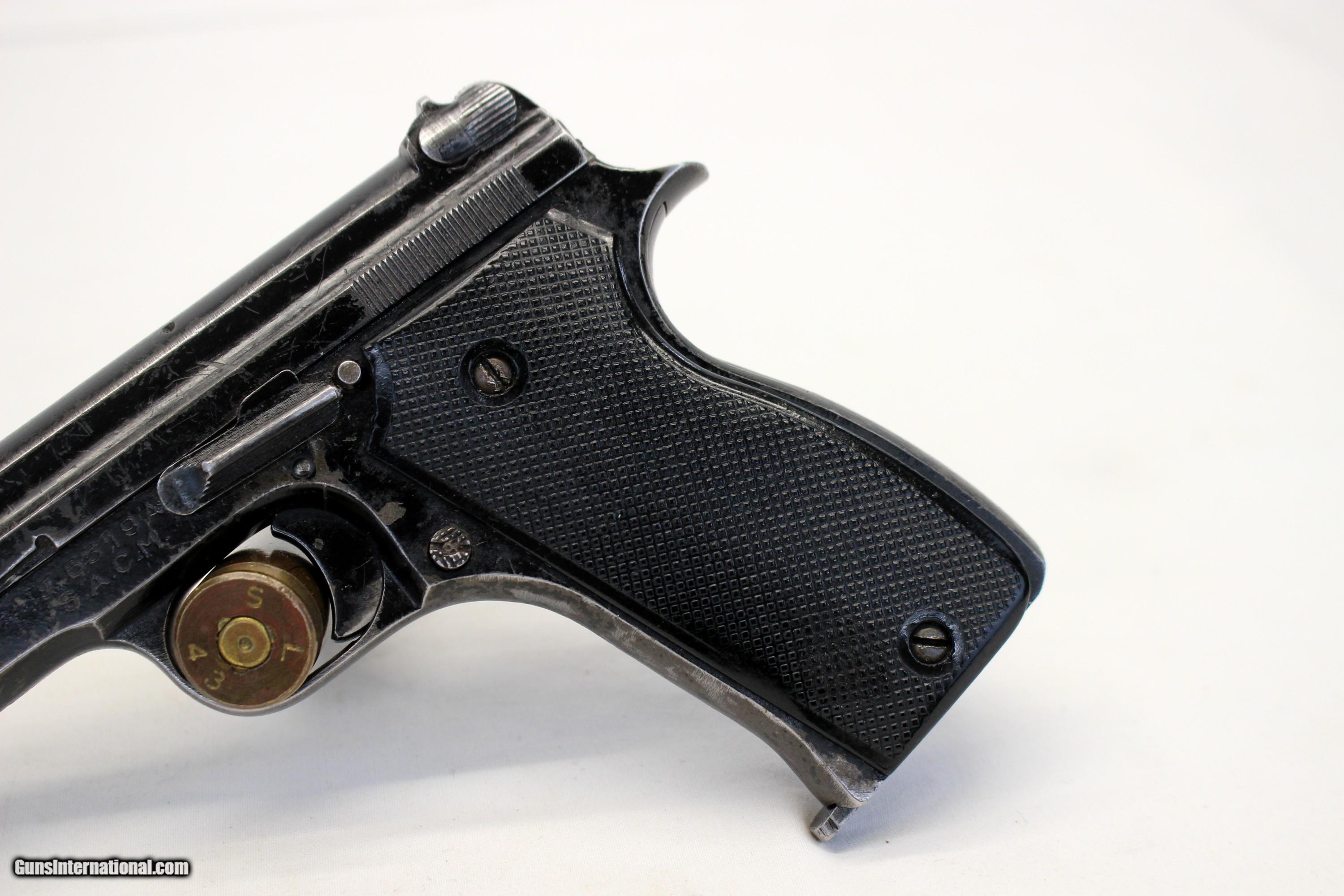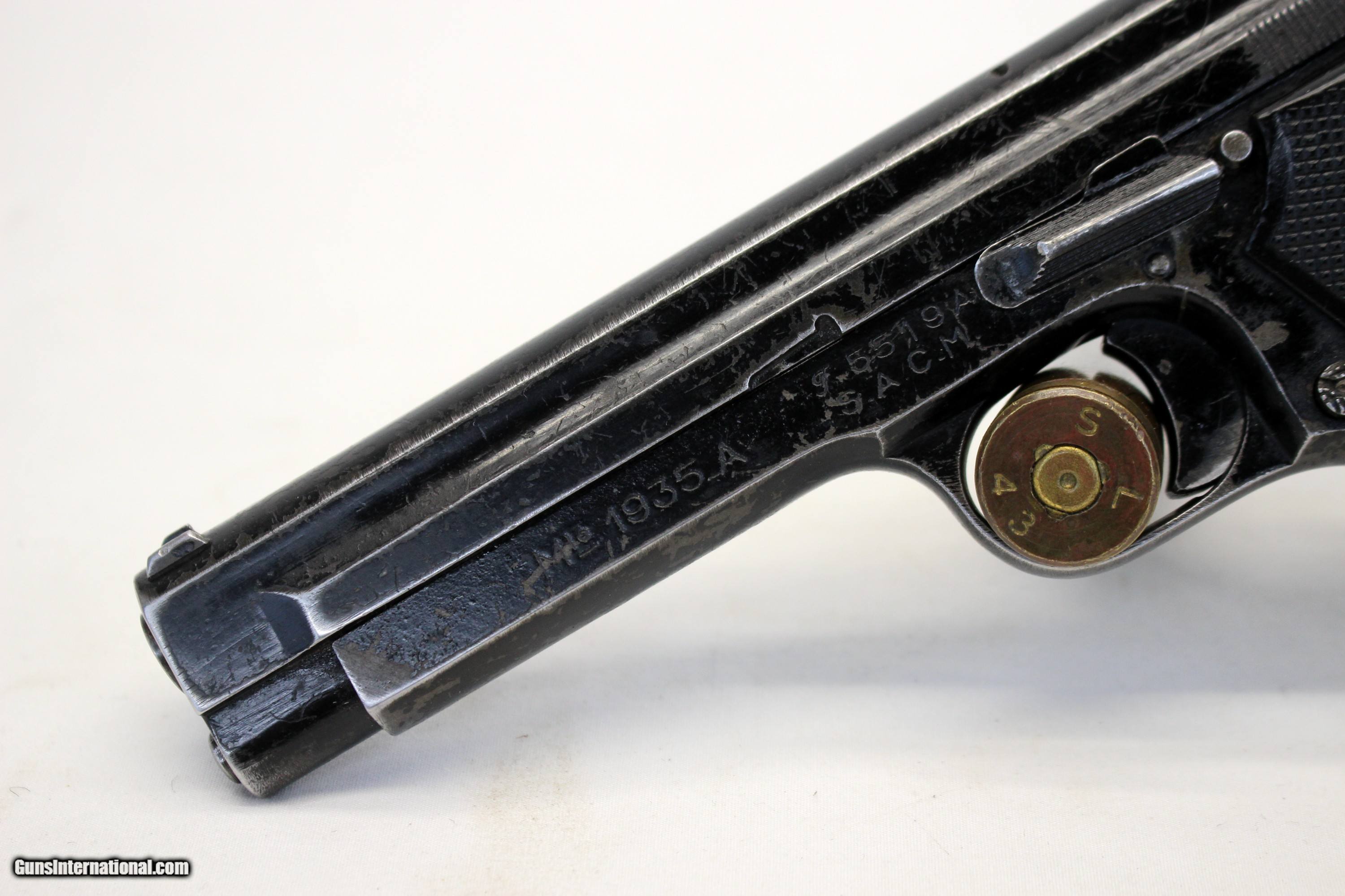 Description: We are offering for sale a vintage WWII era French SACM Model 1935A (Pistolet automatique modèle 1935A) semi-automatic pistol chambered in 7.65x20mm Longue. This gun remains in good, fully functioning condition. 4.25" barrel is good with clean bore showing crisp rifling. The slide and frame are good with black paint loss; These guns were not blued but had a baked on enamel finish that was prone to chipping off. The gun functions flawlessly with hammer and trigger functioning properly. Magazine is very good without issues. The original black plastic grip panels are good without damage; Field wear noted. NICE WWII ERA FRENCH 1935A! **** PLEASE NOTE: WE ONLY ACCEPT MASTERCARD AND VISA AS PAYMENT OPTIONS (please note we charge a non-negotiable 3% CC fee) **** **** WE TAKE CREDIT CARD PAYMENT OVER THE PHONE. WE DO NOT TAKE PAYMENT THROUGH THIS **** PLEASE LOOK AT ALL PHOTOGRAPHS FOR CONDITION Please know the legality of any weapon in your state before . If a gun can’t be transferred to you we will charge a 15% re-stocking fee. We are in the shop MODAY, WEDNESDAY, THURSDAY, FRIDAY and SATURDAY 8am-4pm EST. We will be in touch within 24 hours of your purchase. Please be ready to provide CC information. Please have your FFL email a copy of their license to: . No Face To Face Transfers! Please note: Clicking "buy" does not guarantee that this gun is yours, However clicking “Buy” will reserve this gun for you, if it hasn’t been sold in store. We will try to do our best to remove the posts as efficiently as possible, but sometimes delays may ensue. “Buy” is your safest bet to reserve a gun. Also please add 6.25% MA state sales tax (if from MA) and 3% credit card shop courtesy fee for all out of state buyers Before calling with concerns read these conditions and meet them accordingly. SOLD Curio/Relic: Yes |