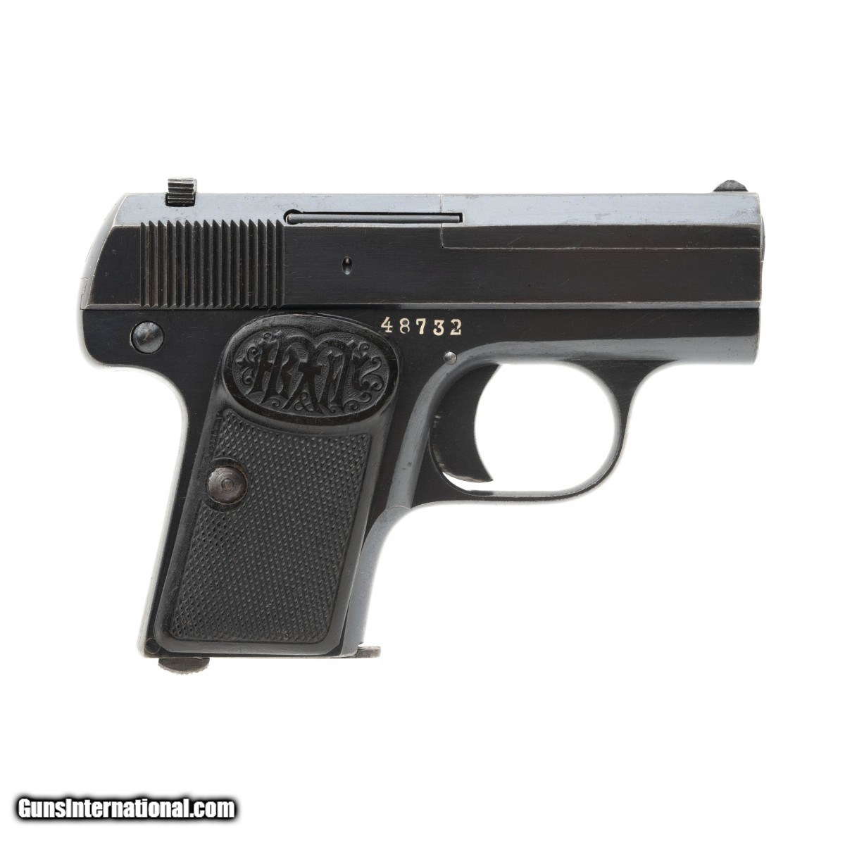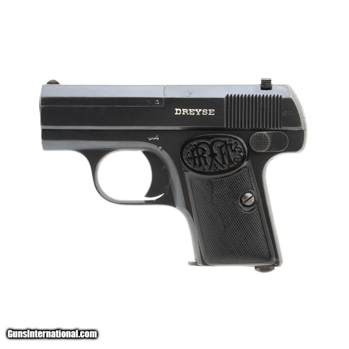 Description: "Serial number 48732. Made circa 1911-1915. 25 caliber with a 2 1/8" barrel. This gun is in excellent original condition with 95% of the original finish on the metal. This is a second type gun with the Dreyse marking on the slide. Grips are excellent. Bore is excellent! SOLD Curio/Relic: Yes |