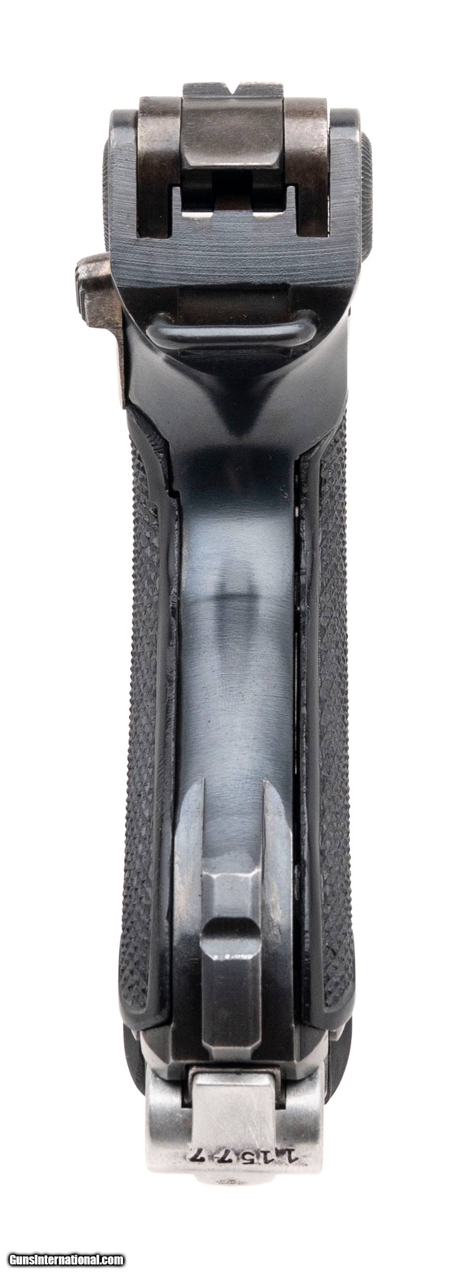 Description: "Serial number 11577. Made in 1942. 9mm caliber with a 4" barrel. This gun is in excellent condition with 95% of the original blue. The grips are excellent as well. There is only slight high edge wear on this gun. There were 9000 guns in the series and the later guns like this one are the most scarce.These guns were made on the Luftwaffe contract. This is a top notch example of one of these guns! SOLD Curio/Relic: Yes |