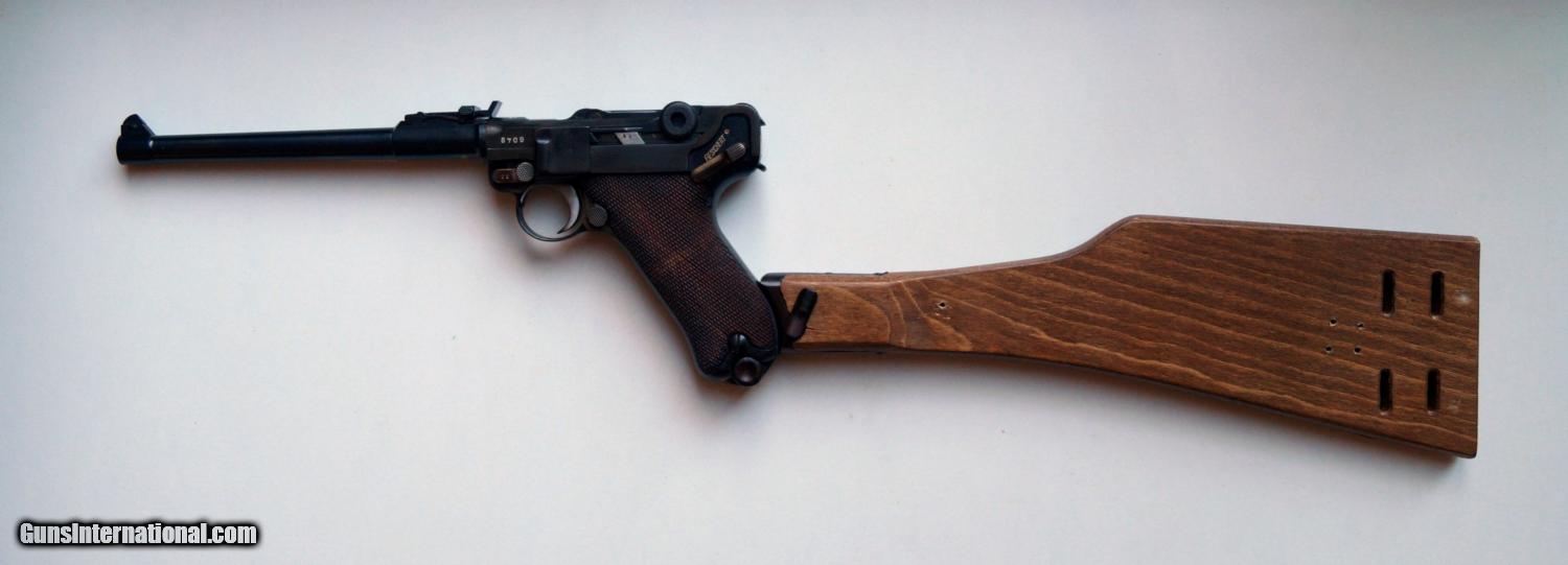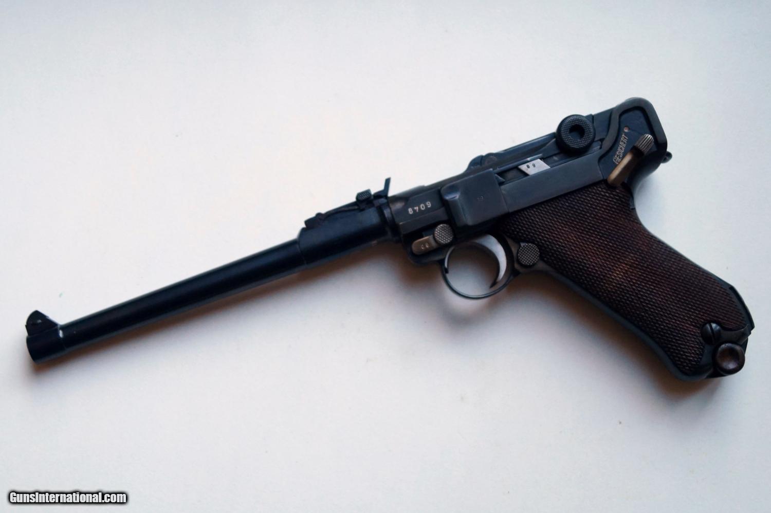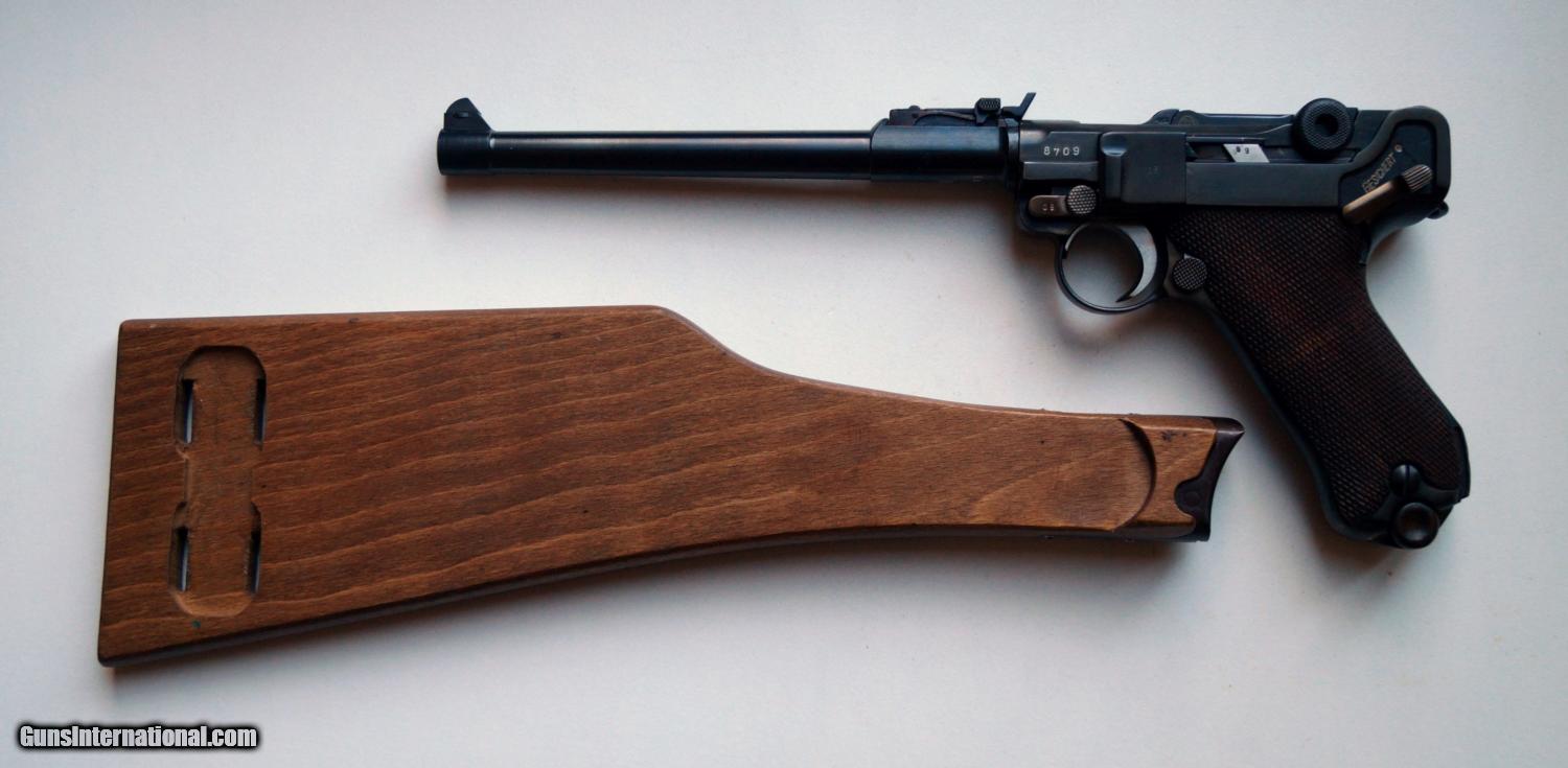 Description: THIS IS A 1916 DWM COMMERCIAL ARTILLERY GERMAN LUGER, 9MM. THE LUGER IS IN VERY GOOD CONDITION, ALL ORIGINAL,NUMBER MATCHING, VERY GOOD BORE AND GRIPS, MECHANICALLY CORRECT AND TIGHT. THE LUGER COMES WITH AN ORIGINAL WOODEN STOCK (FITS THE GUN). A VERY NICE RARE DWM COMMERCIAL GERMAN LUGER. NOTE: AUTHENTICITY IS VERIFIED BY ME AND THE BOOK "LUGERS AT RANDOM BY CHARLES KENYON JR.) PAGE 184. SOLD Curio/Relic: Yes |