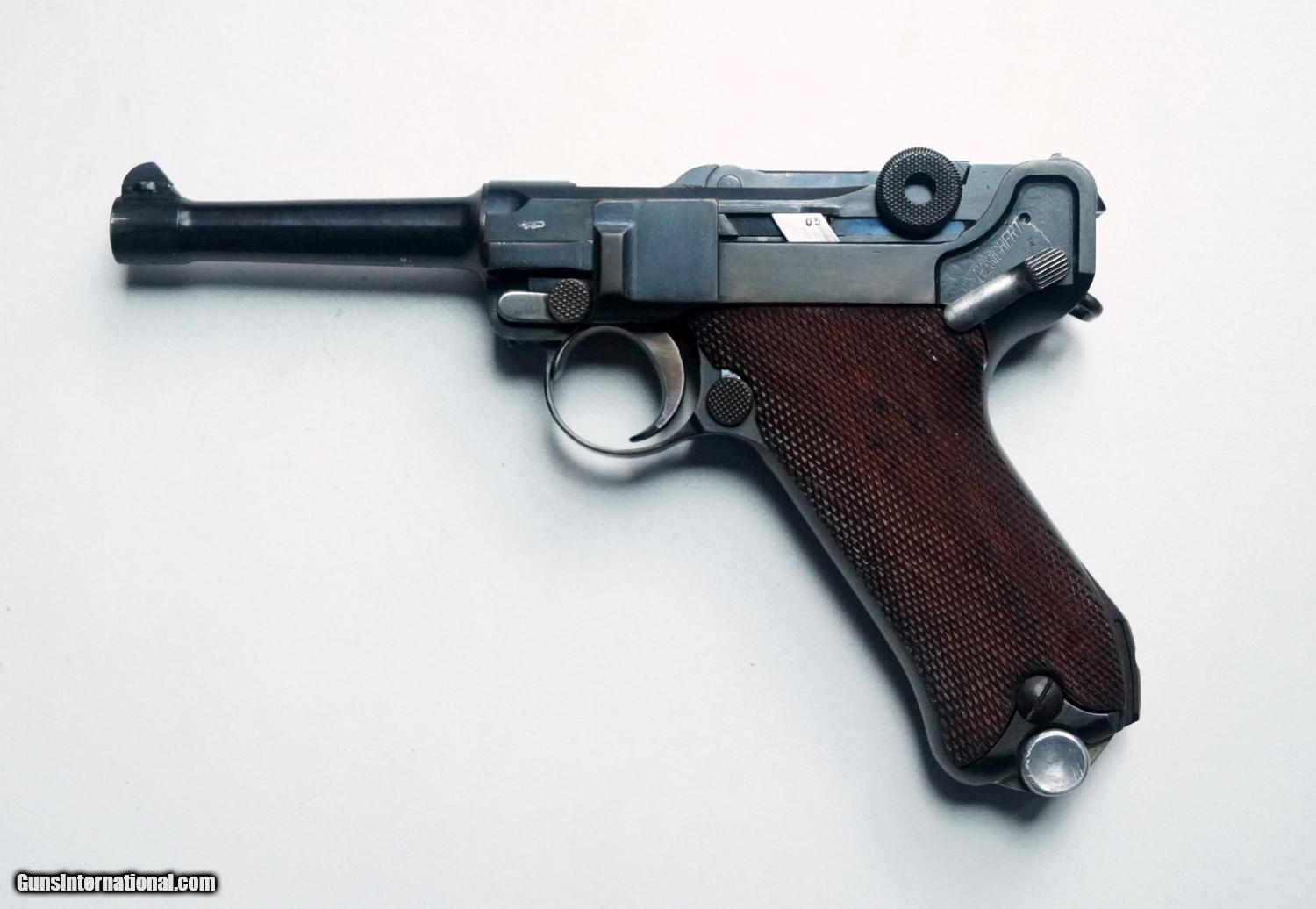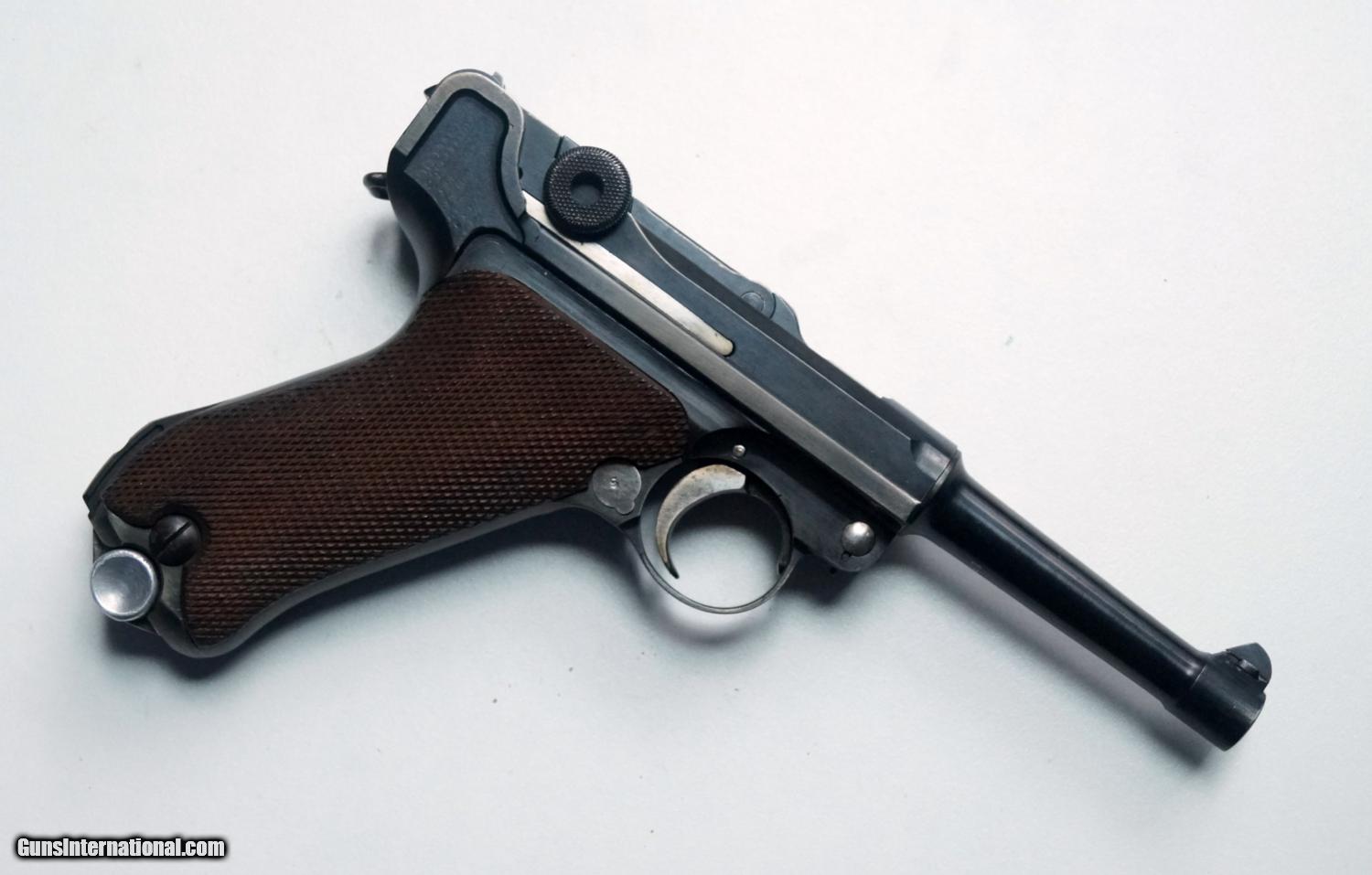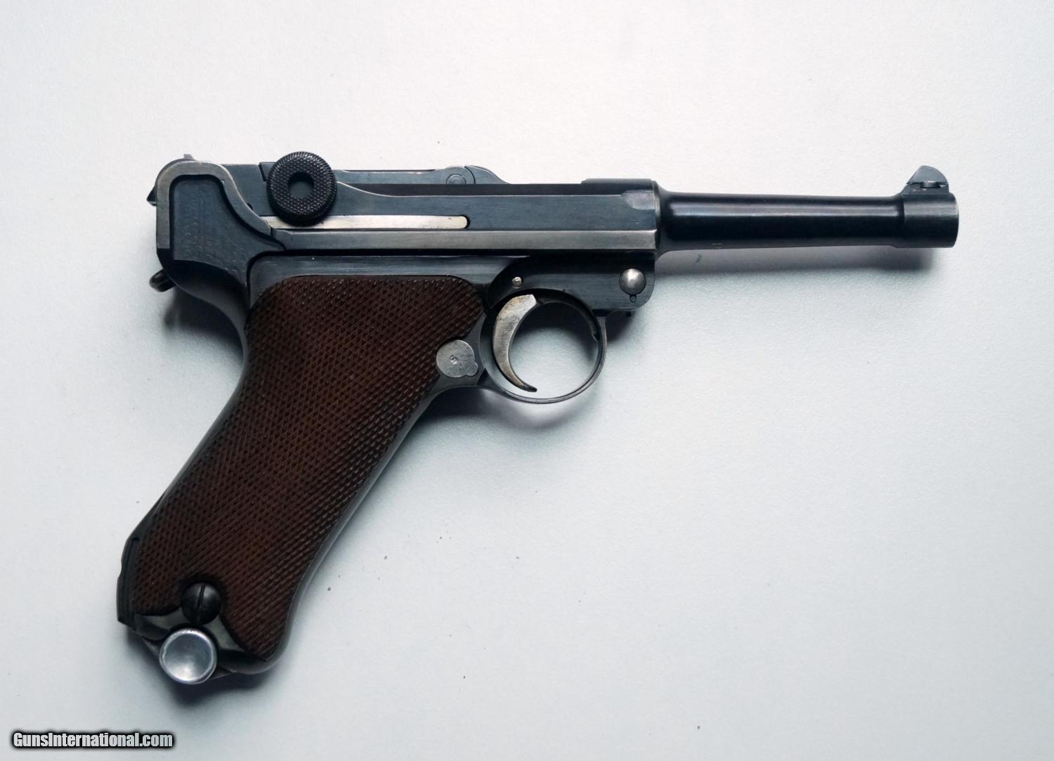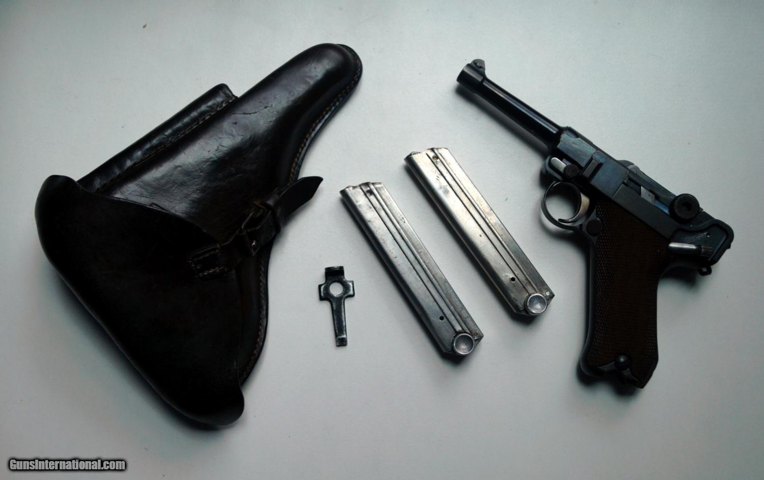 Description: THIS IS A 1935 MAUSER BANNER COMMERCIAL GERMAN LUGER, 9MM. THE LUGER IS IN VERY GOOD CONDITION, ALL ORIGINAL, NUMBER MATCHING (INCLUDING THE 2 ORIGINAL MAGAZINES), VERY GOOD BORE AND GRIPS, MECHANICALLY CORRECT AND TIGHT. THE RIG CONSISTS OF THE LUGER, 2 ORIGINAL MAGAZINES, 1 ORIGINAL COMMERCIAL HOLSTER AND A LOADING TOO. THIS IS A VERY NICE EARLY MAUSER BANNER RIG. NOTE: MY SCOURCE IN ADDITION TO MY OWN KNOWLEDGE IS THE BOOK "THE MAUSER PARABELLUM 1930-1946 BY DON R. HALLOCK & JOOP van de KAMP". SOLD Curio/Relic: Yes |