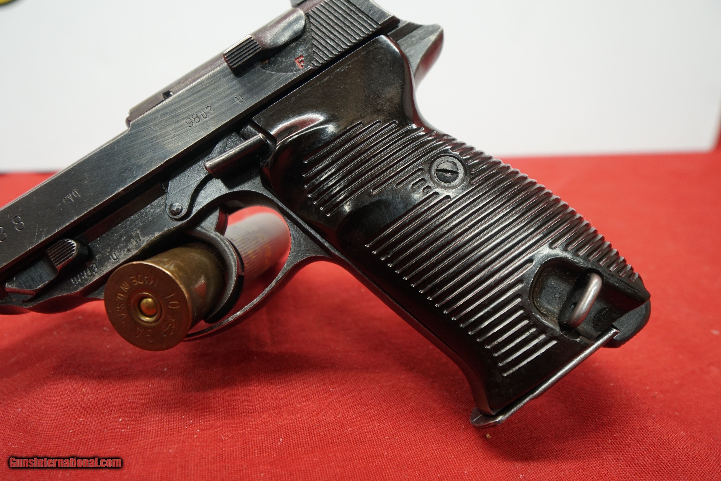 Description: Price Reduced....Another great item from Gainesville Pawn! Up for sale is a set of bring back pistols; A CYQ P.38 and BYF P.08 Luger. Both of these are chambered in 9x19. Starting with the CYQ P.38, the overall condition is Very good, There is some finish loss on the left side of the pistol. The bore of this pistol is bright and the rifling sharp. The BYF P.08 Luger is in excellent condition with some minor consmetic wear. The bore of this pistol is bright and the rifling is sharp. These guns come with bring back paper ( both on the same form)BOTH pistols are all matching guns. Please see attached photos. *Please be aware that all items are sold “AS IS”. Ask questions BEFORE placing a bid. Feel free to call us at our store (352) 240-6452 or email us at Gainesvillepawn(at)gmail(dot)com with ANY questions. We do not accept trades or offers through through Guns International We only entertain trades and offers through our store. $35 shipping and handling. Insurance extra. We only accept USPS money orders and major credit cards for payment. 3% convenience fee for credit cards. WE collect Florida state sales tax for in state sales. Please be aware that this item is for sale in our store as well as the occasional gun show so it may be sold there at any time. We will not ship the item until you have your dealer/receiving store email us a signed copy of their FFL to gainesvillepawn(at)gmail(dot)com SOLD Curio/Relic: Yes Handgun Caliber: 9x19mm Parabellum (9mm Luger, 9x19mm NATO) Manufacturer: Speerwerks/Mauser Model: P.38/P.08 Serial Number: 9803/1907 |