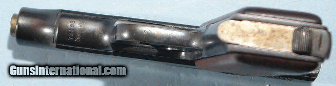 Description: DEUTSCHE WERKE ORTGIES 5TH MODEL .380 ACP PISTOL CA. 1920’S. All original and matching with original magazine. 98% original blue. Excellent walnut gold medallion grips with most of the original finish. Working order and excellent bore. SOLD Curio/Relic: Yes |