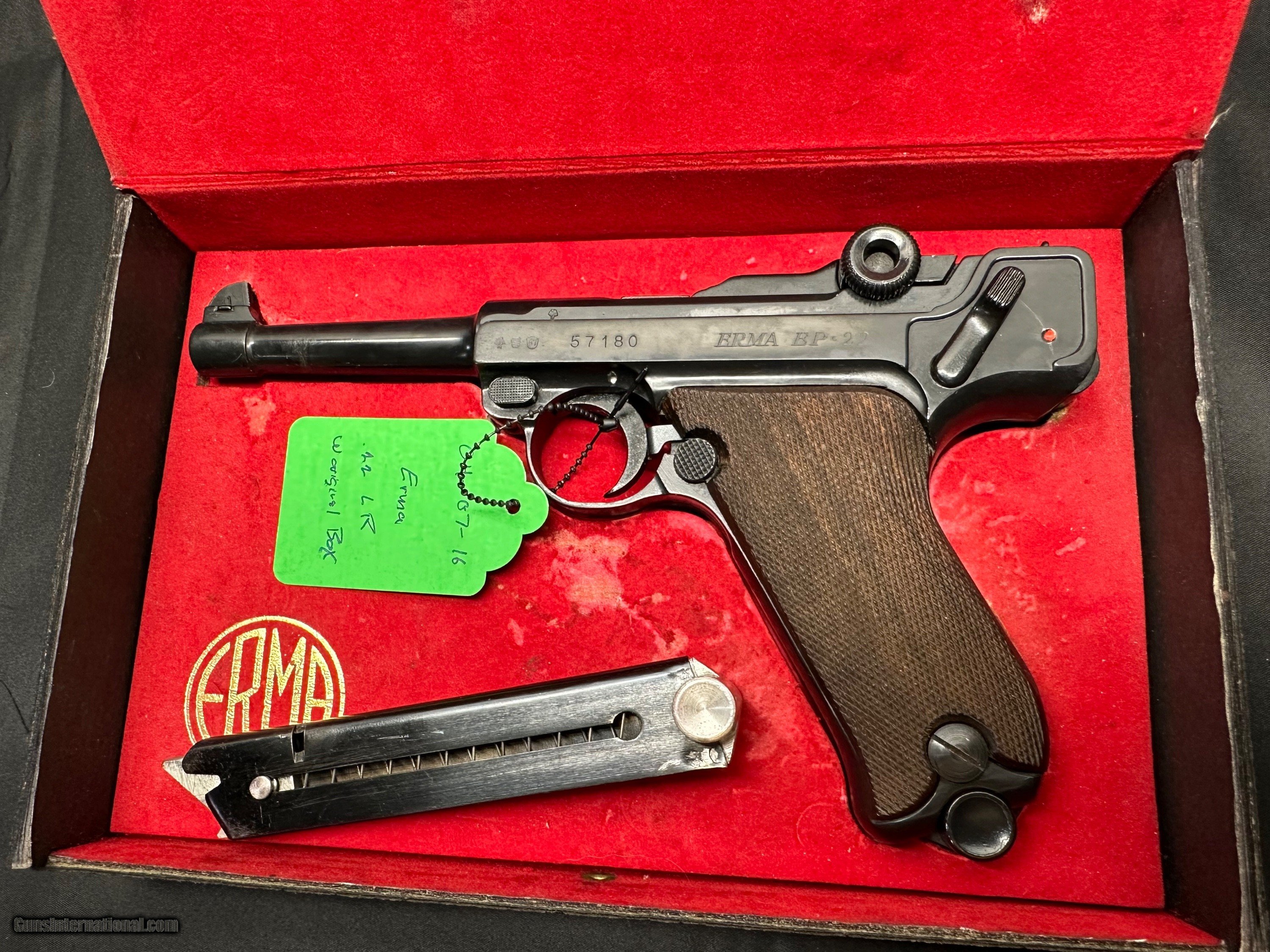 Erma EP-22 Excellent condition with original case and 2 magazines Wooden Grips .22 LR German Luger copy