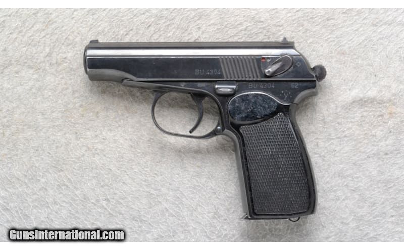 Description: This Ernst Thaelmann Model M is a right hand DA/SA semi-auto pistol in 9x18mm Cal. It has a 3.5 inch barrel with a rear serrated slide. A blade front sight and notch rear sight. The grip is a checkered hard black plastic. 9X18MM SOLD Chambers: 7 round magazine. Metal Condition: Good. Shows a little use. Bore Condition: Excellent. Barrels: 3.5 inch barrel with a rear serrated slide. Triggers: DA/SA Weight: 24 oz. Sights: Blade front. Notch rear. Item Location: Richfield, WI |