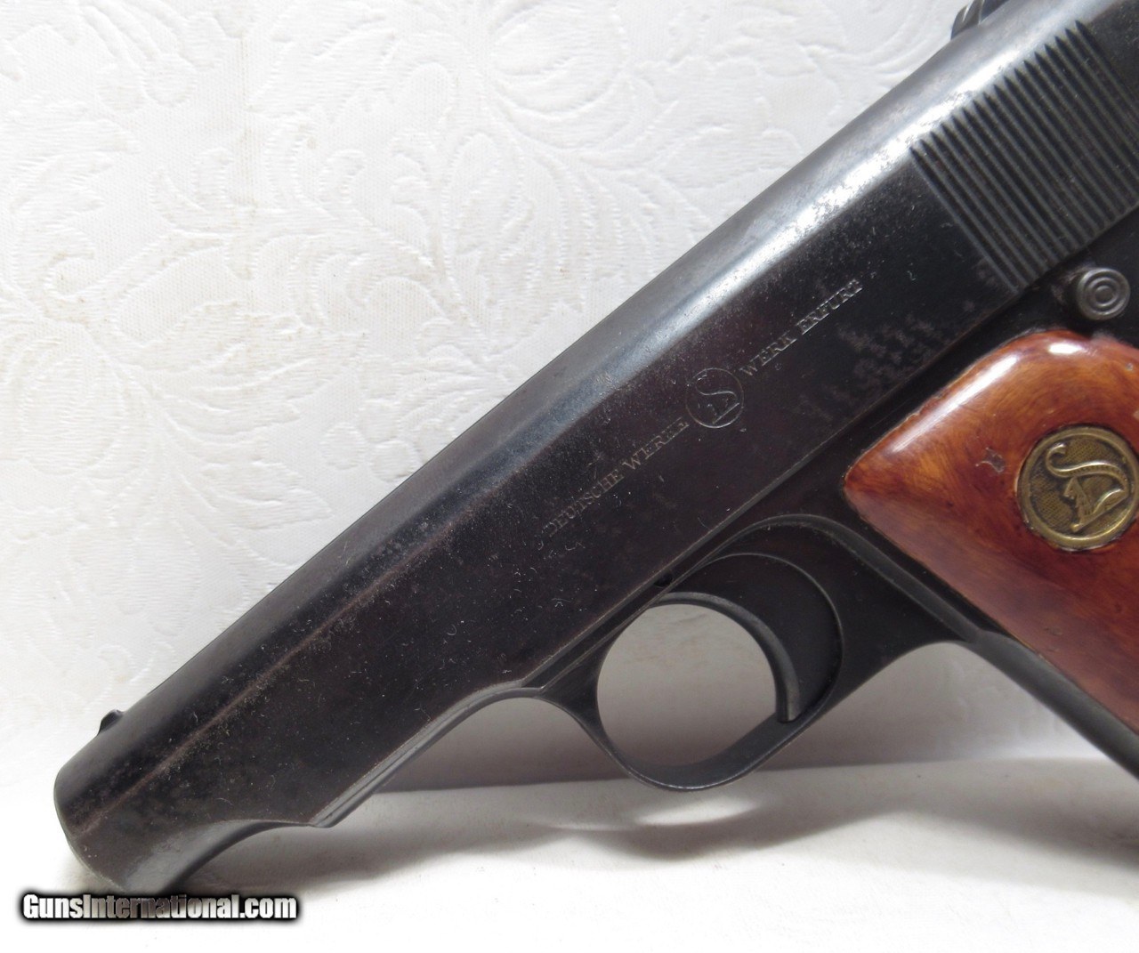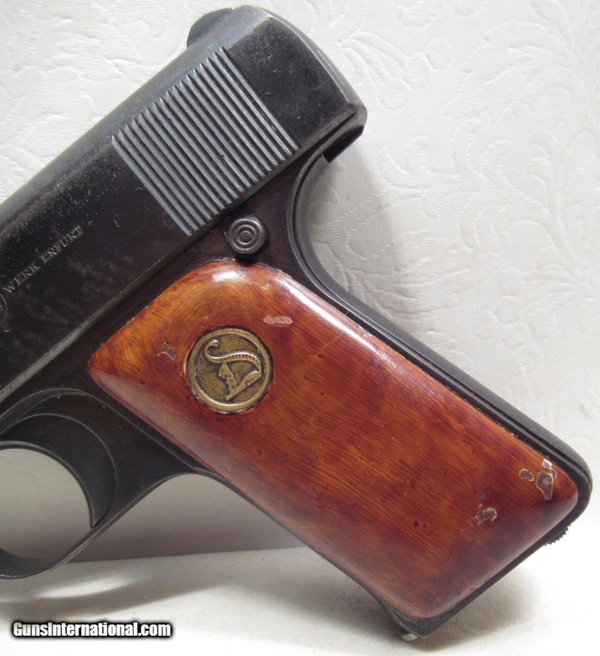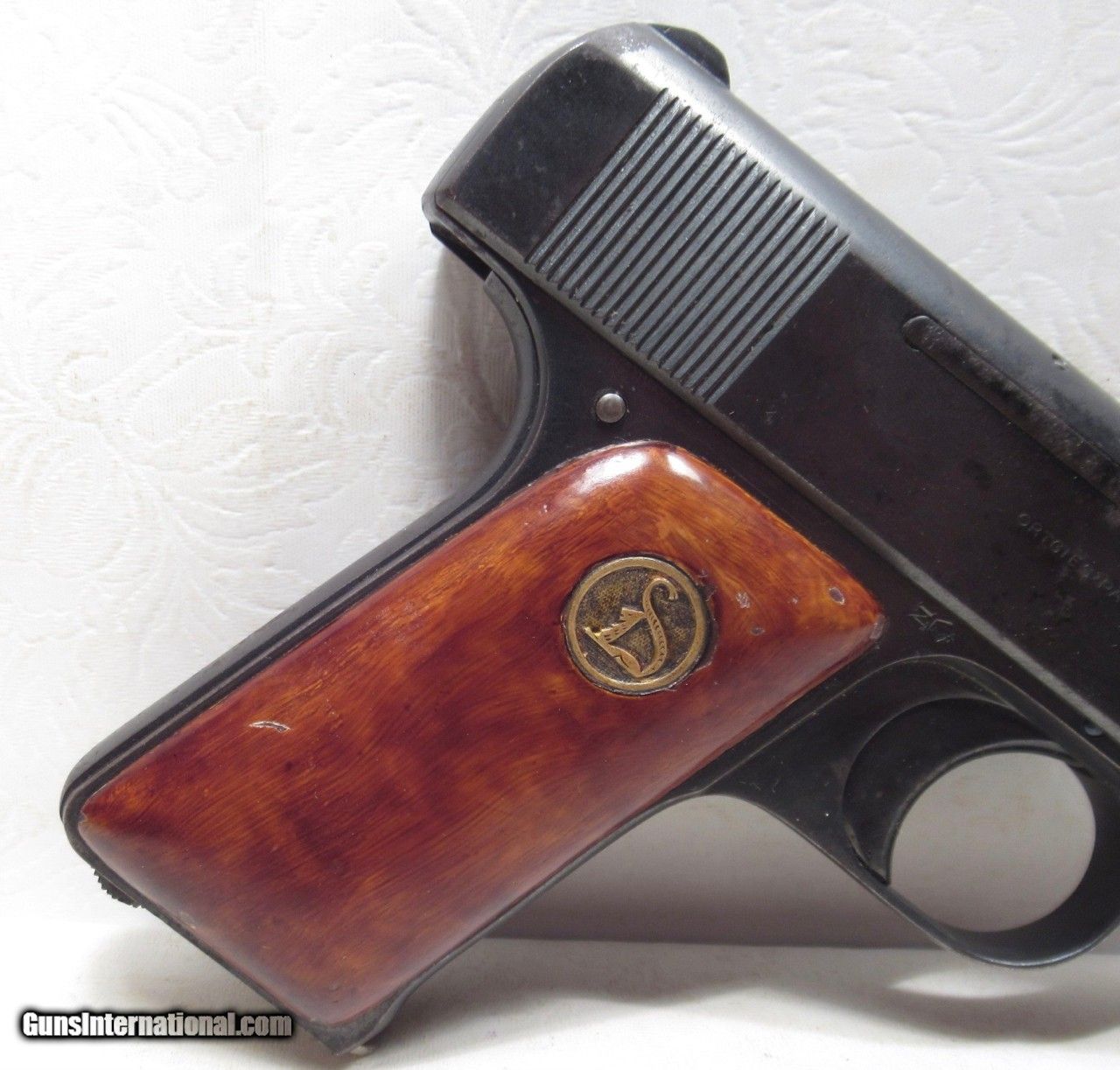 Description: Ortgies Pocket Pistol by Deutsche Werke A.G. – Erfurt, Germany; Serial No. 88416; 7.65 m/m (.32 ACP) Caliber; 8 Shot Magazine; Blowback Operation; 3 ¼” Barrel; Hammerless Configuration; Made 1921-1924 (End of Production); Perfect Action and Bore; Original Metal and Wood Finish Does have some wear and mars; See All Photos for Condition; No Texts; Call (254)541-5765 or Email Only; PERSONAL PROPERTY of Harold Wieser; NOTICE: We Do Not Do Any Consignments - All Items Listed are Owned by Us - NO SALES to New Jersey or New York City - Antiques Only to Massachusetts and California; NOTE: All Modern Firearms Must Go to FFL Dealer who will Accept From Individual with Texas Driver License; Price: $275 Shipped; Payment Address: Harold Wieser - 1466 U.S. Hwy 77 - Rosebud, TX 76570; SEND PAYMENTS VIA USPS PRIORITY MAIL; BEWARE of SCAMS!!! - DO NOT SEND MONEY or CORRESPONDENTS ELECTRONICALLY UNLESS YOU HAVE SPOKEN to HAROLD WIESER FIRST! (254)541-5765 SOLD Manufacturer: Ortgies Model: Pocket Pistol Serial Number: 88416 |