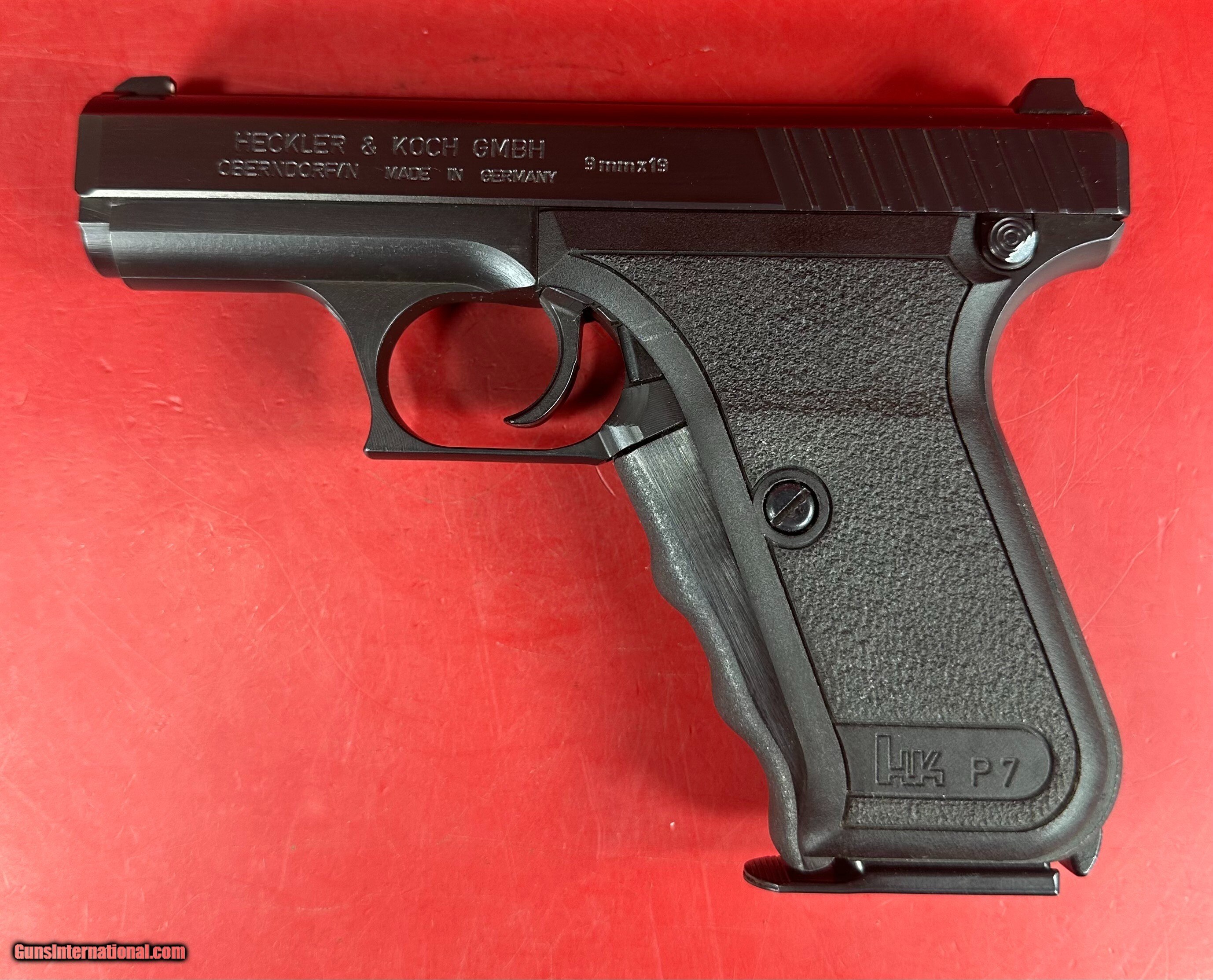 Description: Own the original! For sale H&K P7 PSP pistol chambered in 9mm with 4.1" barrel. P7 design is based on the Barnitzke system, a gas-retarded blowback system that utilizes bleed-off gases from each round fired to drive an operating rod which cycles the slide. In many ways this system is similar to modern piston driven rifles (AK and AR ) but in other ways the system is unique. The sale includes original box, manual and other paperwork, 2 original mags, take down tool , gas chamber cleaning brush, test target. The gun is in excellent condition: bore is mirror bright, metal finish is at about 98%, grips are at about 98%. Please refer to the pictures. Don't miss this chance to add a piece of firearms history to your collection. LAYAWAY AND PAYMENT PLAN ARE AVAILABLE P7 PSP, P7M8, P7M10, P7M13 Handgun Caliber: 9x19mm Parabellum (9mm Luger, 9x19mm NATO) Price: $3,399.00 Shipping: $50.00 Contact Seller |