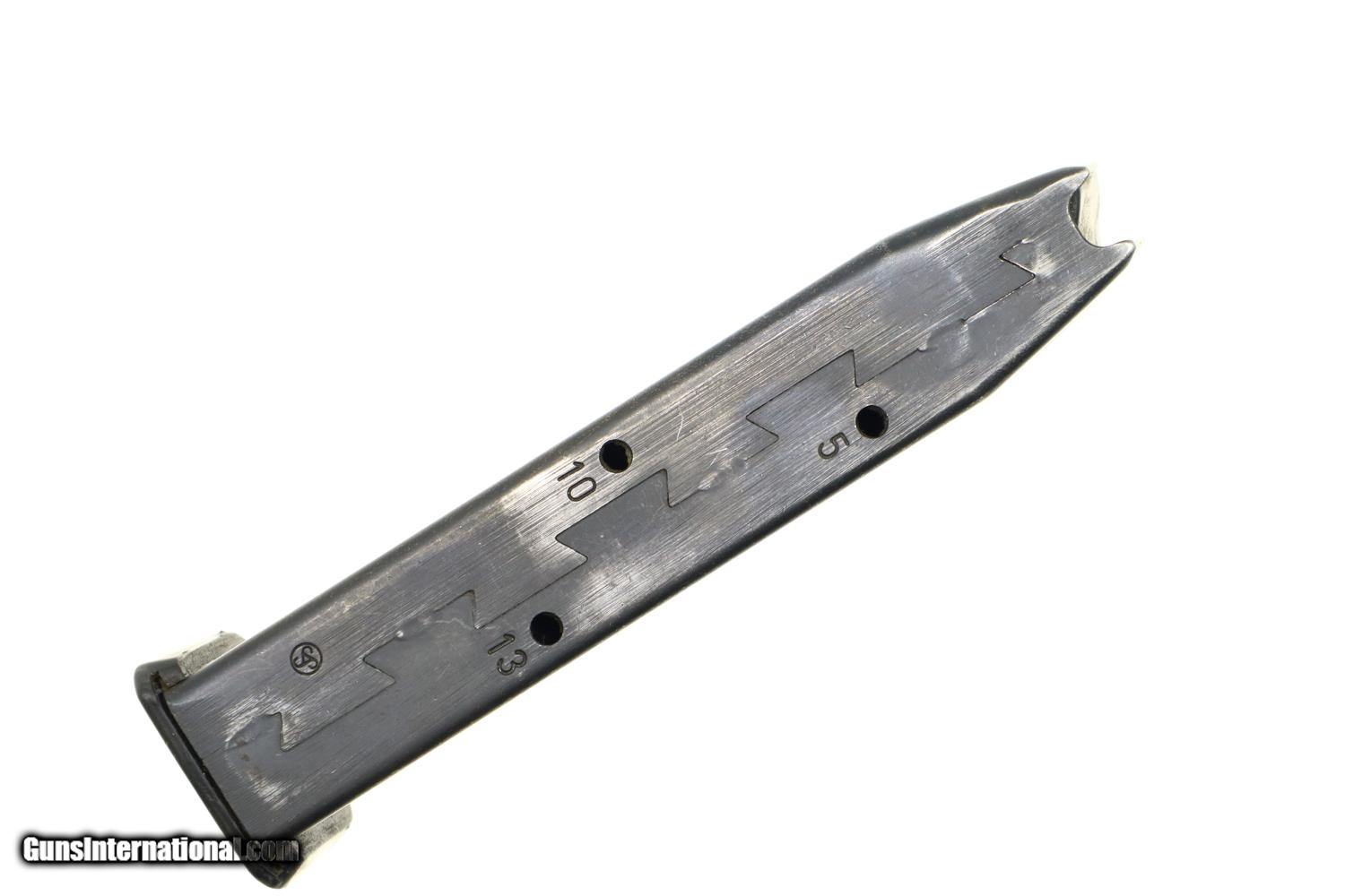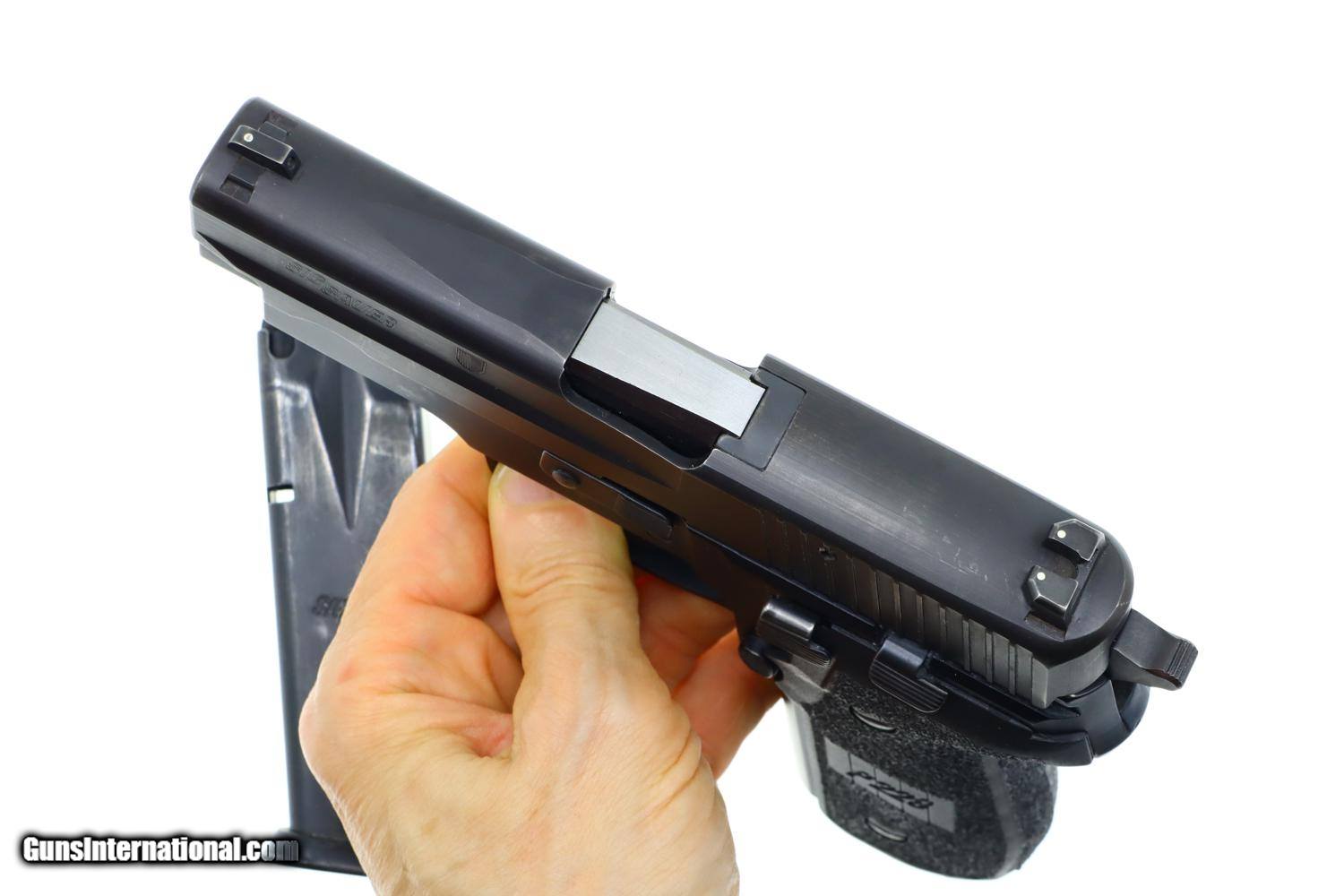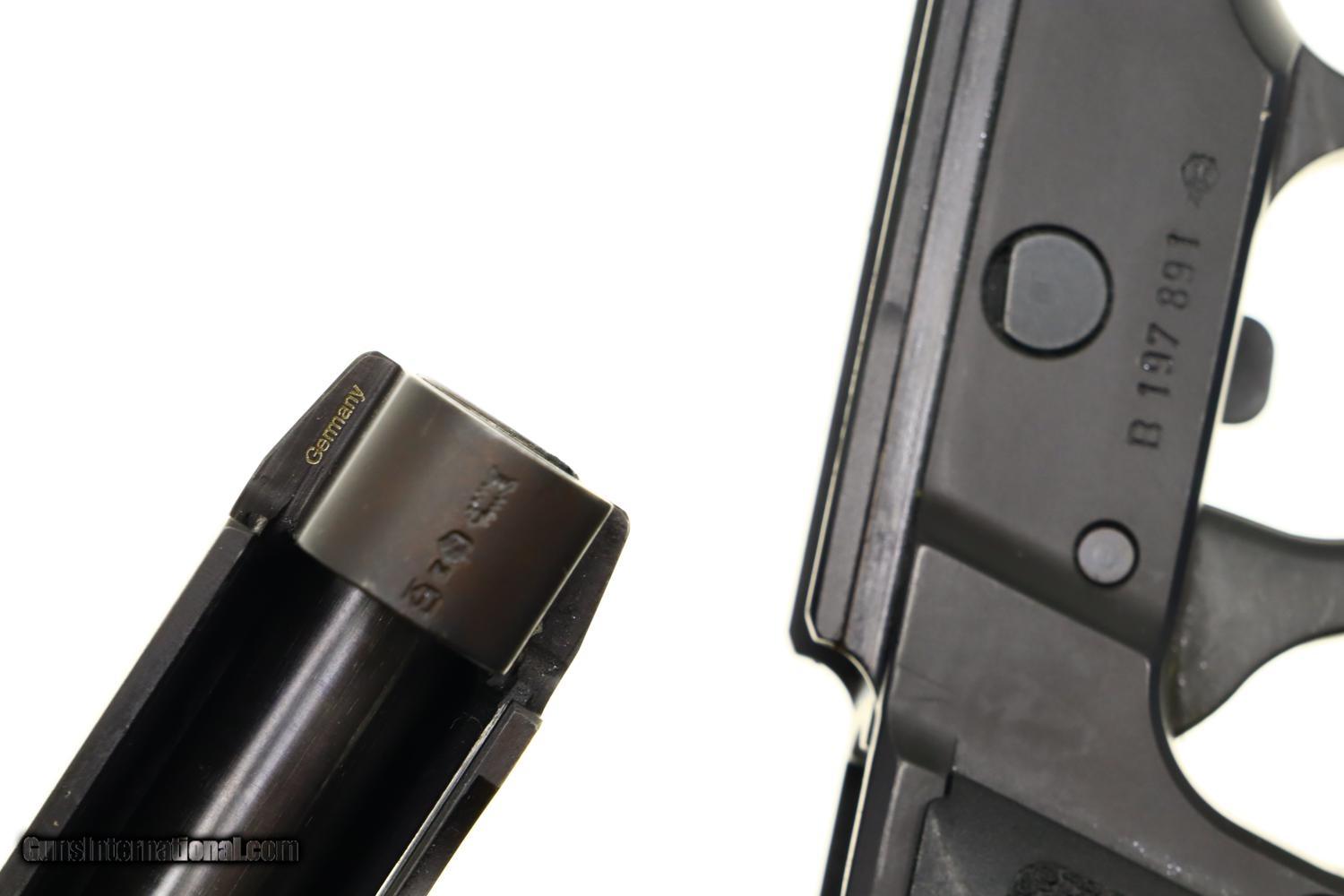 VG+ original finish, with holster wear pattern consistent with light service use. Front strap scuffed as imaged. Comparable condition grips, with slightly burred screws. Magazine with insertional wear as photographed. Mirror bore. Perfect manual mechanics. A SIG Sauer Police variation seldom encountered in the United States. DO NOT PURCHASE IF YOU LIVE IN A STATE WHERE HIGH CAPACITY MAGAZINES ARE RESTRICTED!