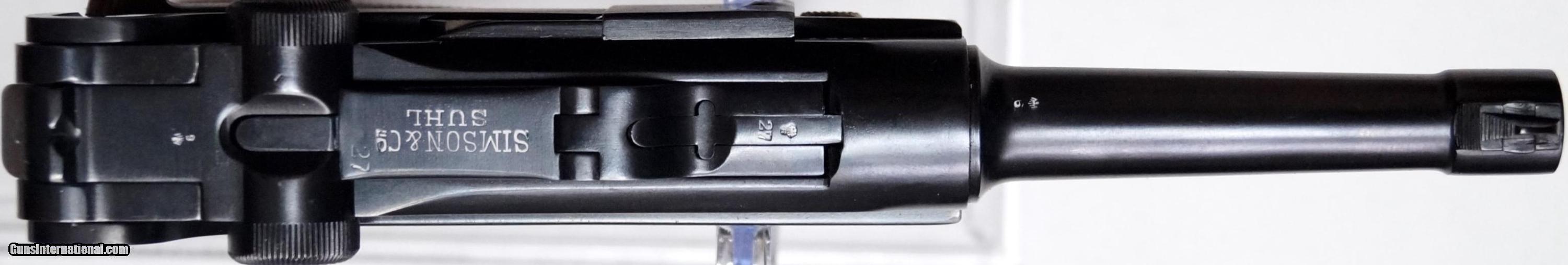 Description: THIS IS A SIMSON / SUHL GERMAN LUGER, 9MM. THE LUGER IS IN COLLECTOR CONDITION. IT HAS BEEN PROFESSIONALLY RESTORED USING ALL OF ITS ORIGINAL PARTS. NUMBER MATCHING INSIDE AND OUT ( THIS INCLUDES THE GRIPS, MAGAZINE, HOLD OPEN , FIRING PIN AND EVEN THE GRIP SCREWS).,VERY GOOD BORE AND GRIPS, MECHANICALLY CORRECT AND TIGHT.. THEY DON'T COME BETTER THAN THIS. SOLD Curio/Relic: Yes |