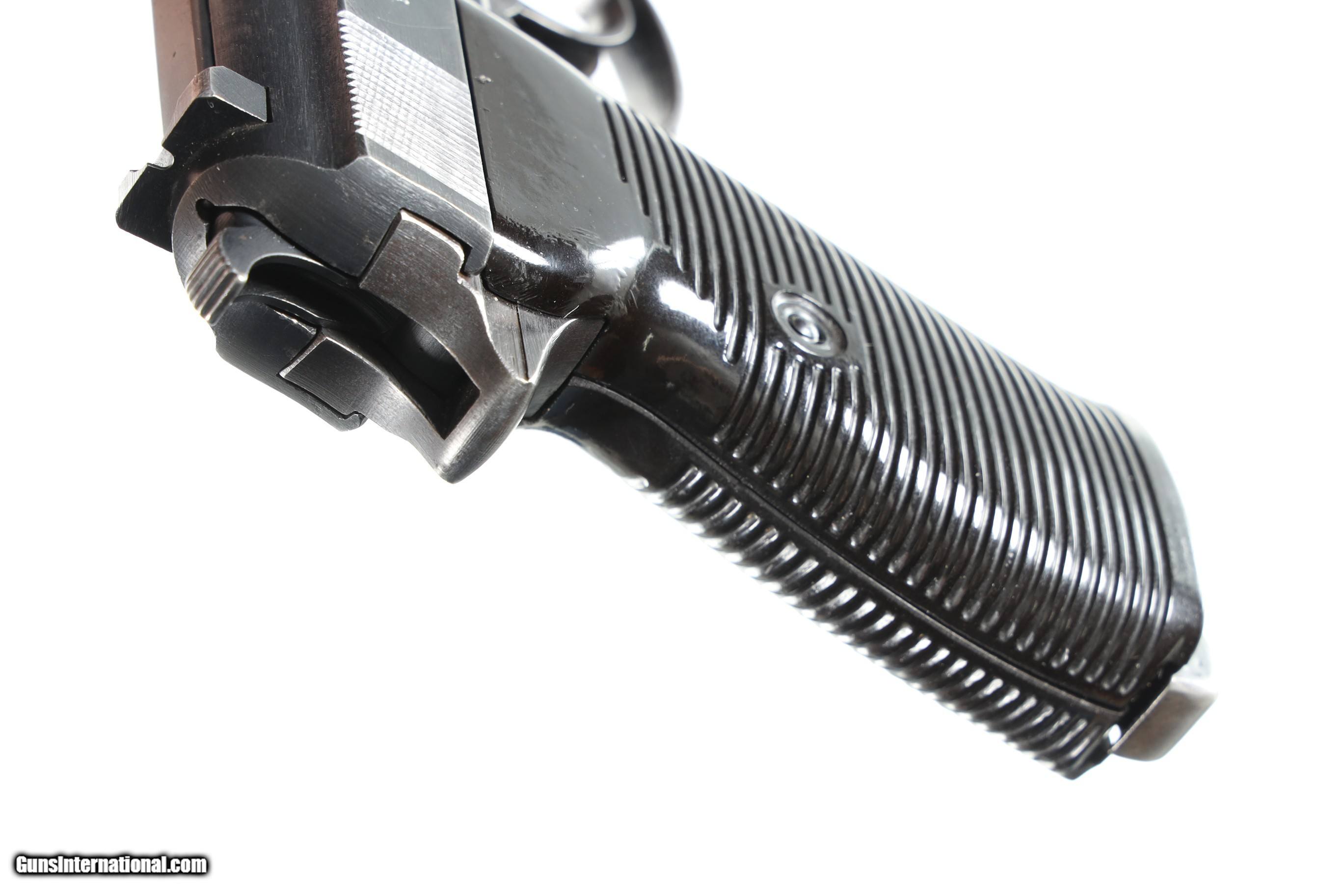 Description: German CYQ code P-38 Mfg, Dec 1943 with brown bakalite grips. Eagle 88 inspections with all matching numbers including locking block. Eagle 88 inspected magazine. Blue finish with over 60% remaining. Bore is excellent and bright with sharp rifling. Grips are excellent with no chips or cracks. Action operates properly. A very fine original WW2 issued P-38. Not import marked. C&R • Free Shipping, No Credit Card Fees. • Lay-a-way available for this firearm. • 1/3 Down, a 1/3 in 30 Days, 1/3 in 60 Days. SOLD Curio/Relic: Yes Handgun Caliber: 9x19mm Parabellum (9mm Luger, 9x19mm NATO) Manufacturer: Spreewerke Model: P38 Serial Number: 2031k Barrel Length: 5 |