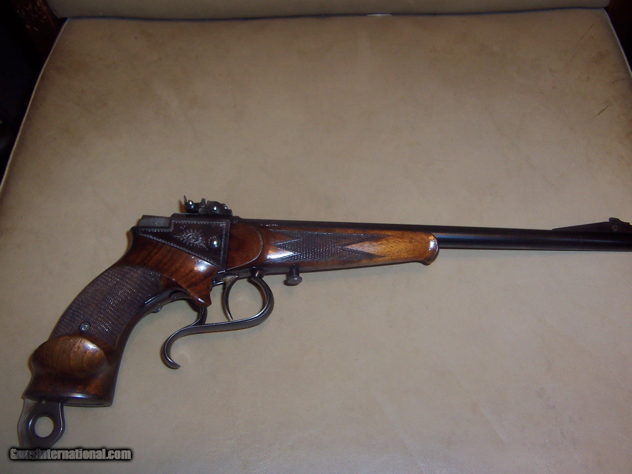 Description: barrel marked bohler special steel in german ,, crown over bu proofs 12 7/8 inch barrel fine bore gun in about 95%+ original condition works fine in dry fire made prior to 1940 in germany;; dropping block action c&r or FFL a real beauty no other makers mark SOLD Curio/Relic: Yes Bore: fine |