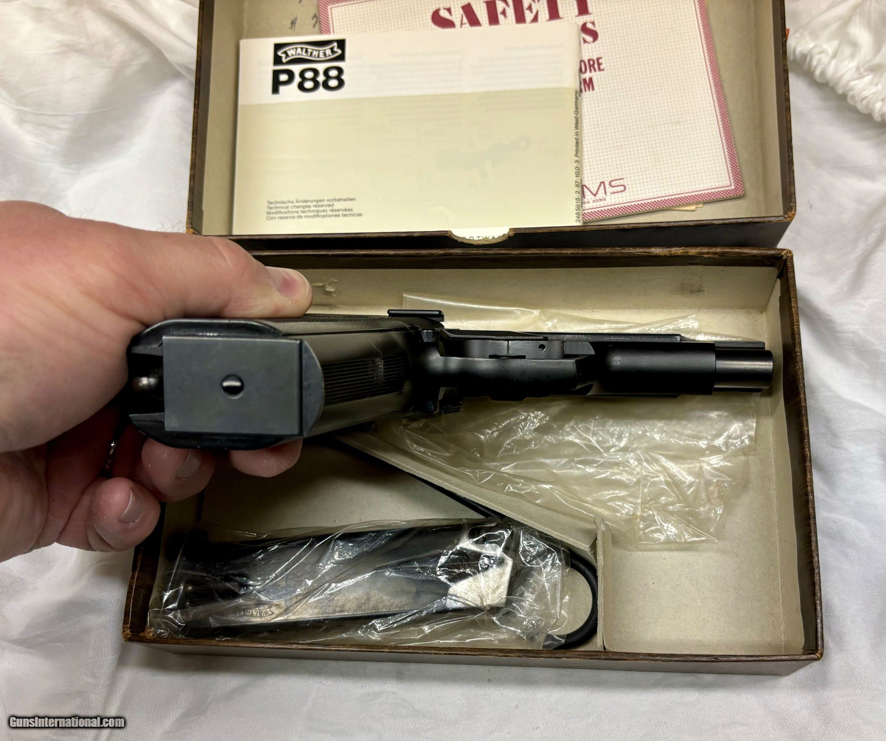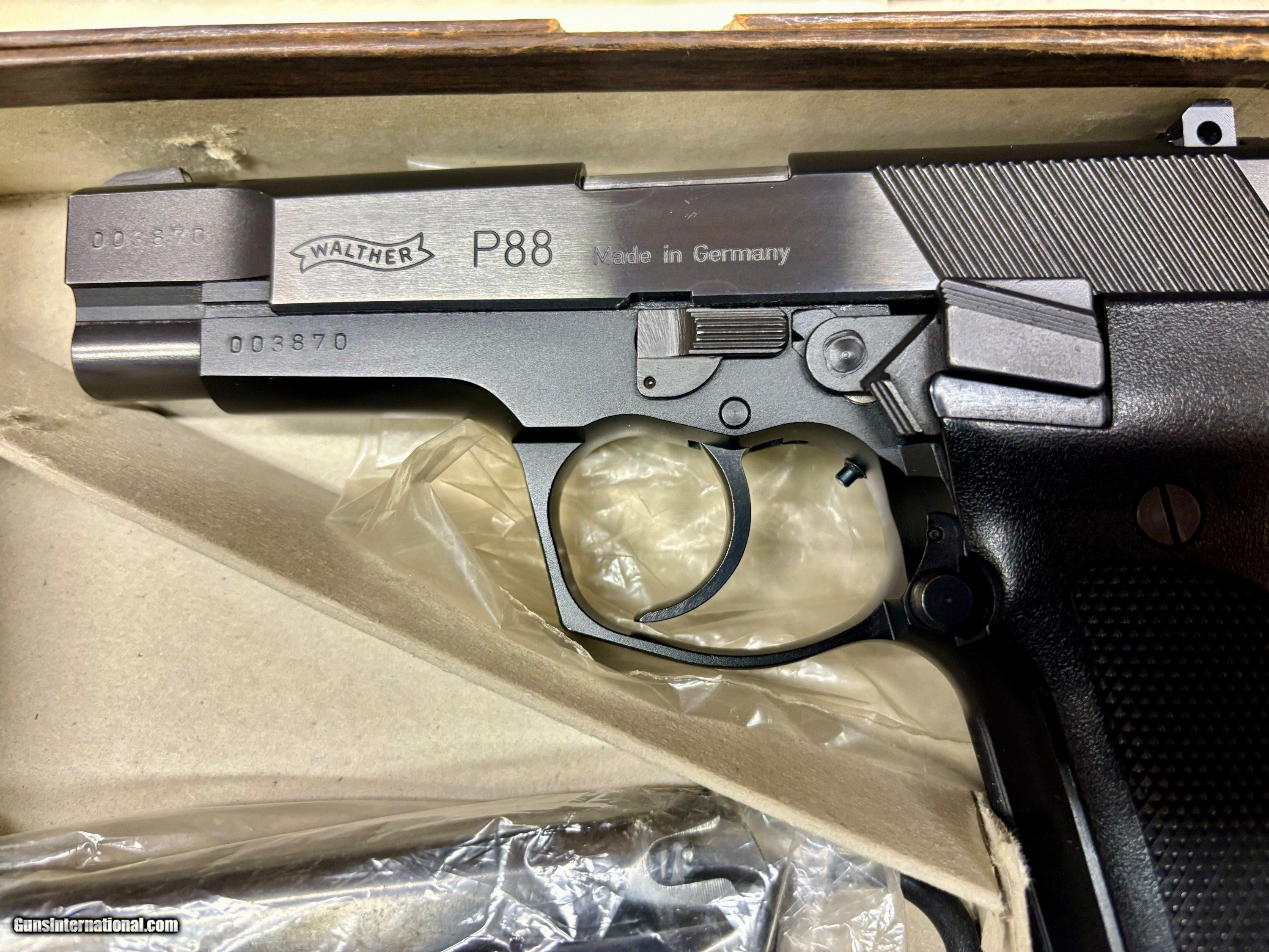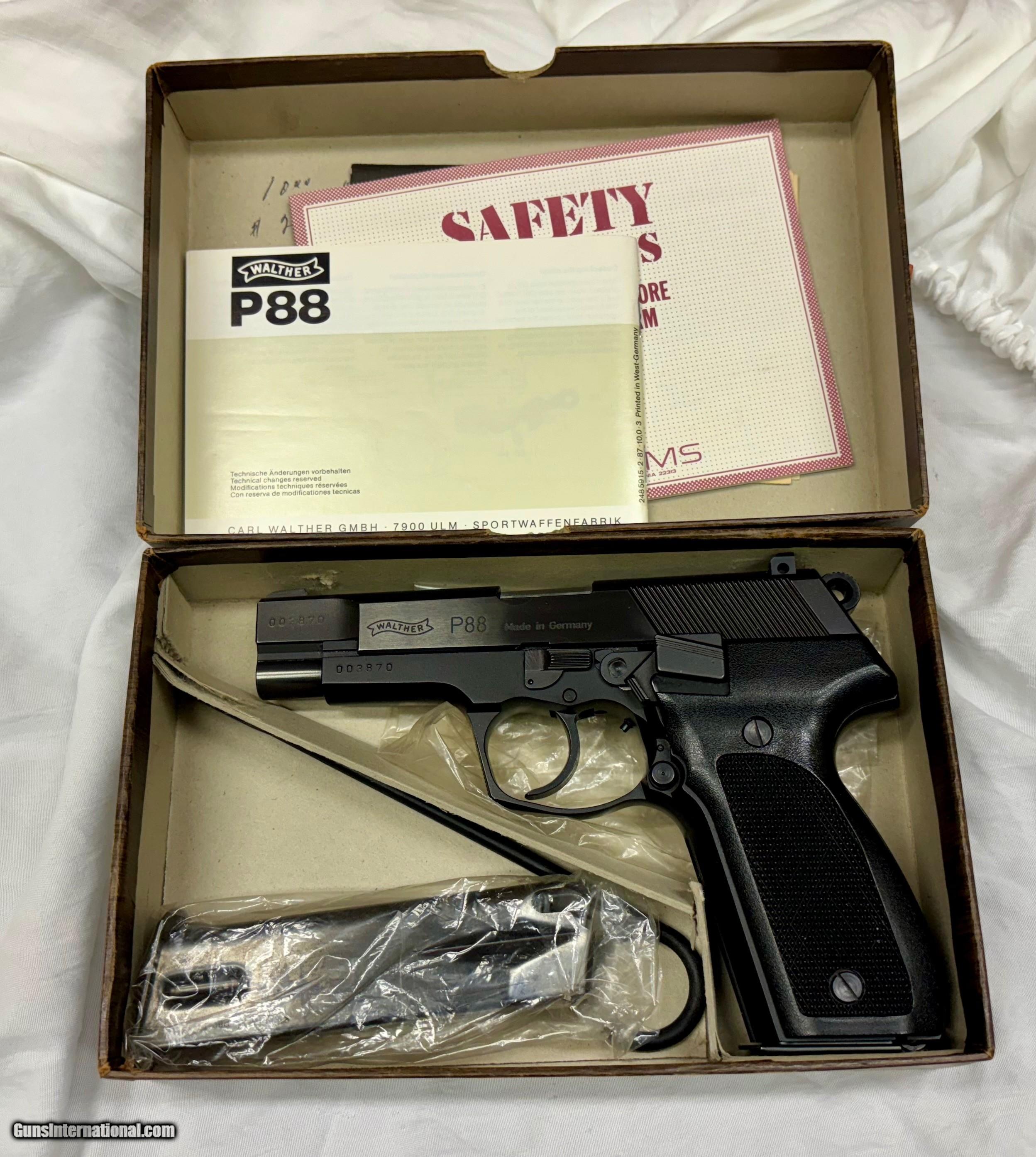 Description: This is a German Made Walther P88 9mm Semi Auto Pistol in the Origianl Box. The Walther is in mint condition. The gun has some very light handling marks if any as seen in the pictures. Please use the pictures as part of description. The gun is sold as is. It is the buyers responsibility to make sure that you are able to own this gun in the city or state where you live. The purchaser is solely liable / responsible for determining that a gun is safe to shoot. The firearms offered in our s have not been test fired, but have been given a visual inspection only for purposes. It is our recommendation, should you choose to shoot a firearm purchased from us, have it thoroughly inspected by a qualified gunsmith before firing. By , the purchaser agrees to hold the seller harmless against damage, injury, or death caused by defective merchandise or actions that are the fault or error of the purchaser. Shipping is FFL to FFL only. Alaska and Hawaii May Be Additional Shipping.No C&R. Credit card add 3.5%. All Items must have payment confirmed via Credit Card or has been mailed out within 3 days of the end of . Credit Card payment has to be made by calling our store. We would consider trading for Gold and Silver if contacted before final sale. We will buy Firearms or Whole Collections. Also we are accepting Consignment Firearms. Please contact us for more information. Our is tristategunandpawn 304-752-6561 Monday-Friday 10-5 Eastern Time. SOLD Handgun Caliber: 9x19mm Parabellum (9mm Luger, 9x19mm NATO) |
