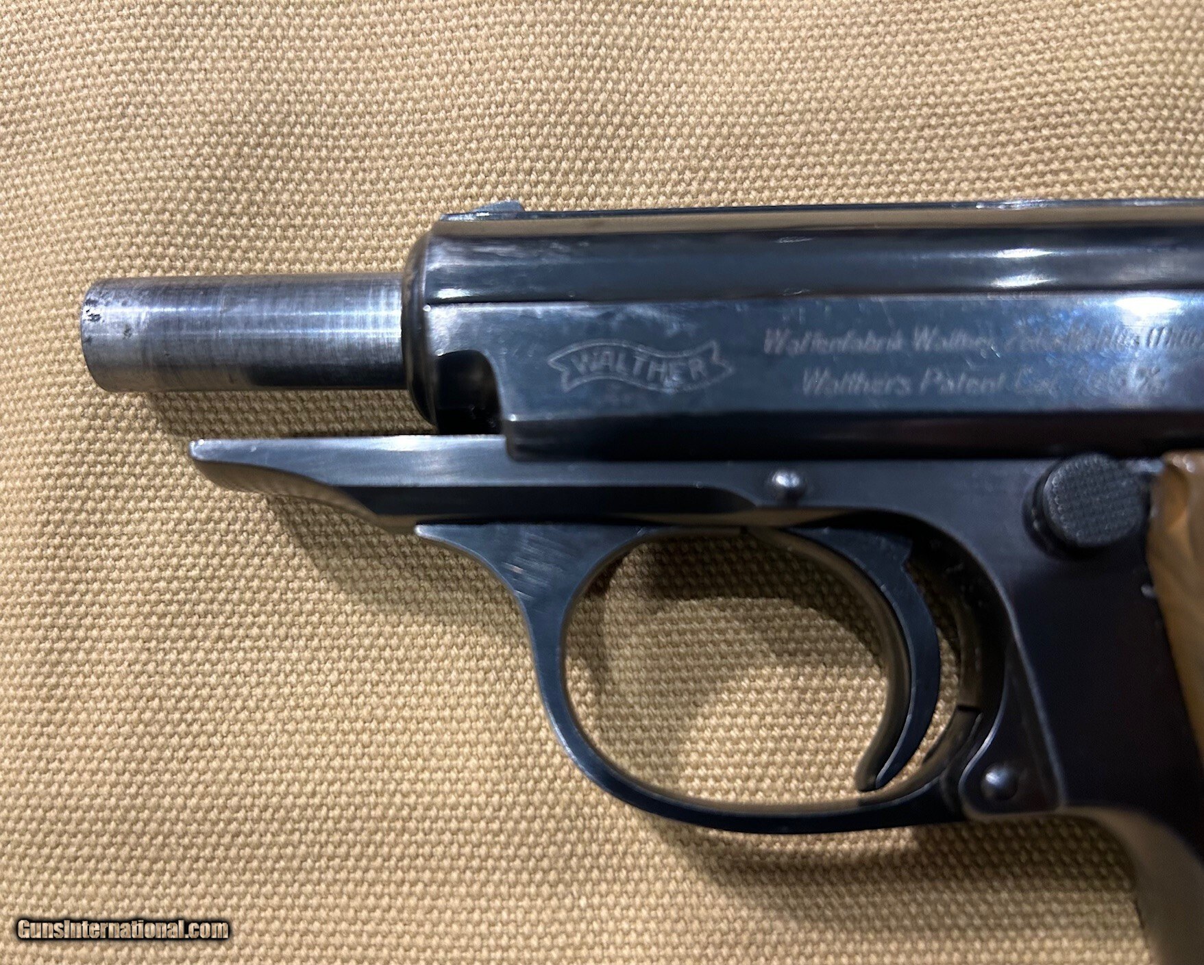 Description: 1935 production Walther Political Party PPK, excellent condition, extra magazine 1941 R.A.G. Berlin PPK holster Curio/Relic: Yes Handgun Caliber: .32 ACP (7.65x17mm Browning SR) Price: $3,600.00 Shipping: $50.00 Buy Now Contact Seller |