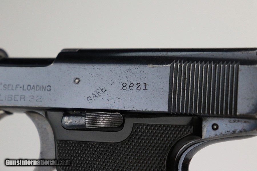Description: This is a very nice example of an H&R .32 Caliber Self-Loading Pistol manufactured in the early 1900's. The H&R .32 is an unlocked-breech gun with the slide cut away on top to serve as an ejection port. A single coil spring with guide rod is mounted in the upper portion of the slide to dampen recoil and return the slide. Unlike the H&R .25 and all Webley & Scott auto pistols (its predecessor), this gun is striker -fired; it is a true hammerless pistol with an unusually large and heavy striker. The barrel and slide are held in place by a lug on the front of the trigger guard, which fits into a cut in the bottom of the barrel. The gun has a grip safety, a magazine safety, and a manual safety lever that locks the trigger. This one has retained roughly 80% of its original high polish finish. The majority of the finish loss is on the front strap and trigger guard. Minor wear around the muzzle and high edges of the slide. There is pin-pricking along the slide and most notably on the rear grip strap. Comes with excellent period-correct H&R grips and one nickeled magazine. The bore is excellent with strong rifling. SOLD Curio/Relic: Yes Handgun Caliber: .32 ACP (7.65x17mm Browning SR) Bore: 9/10 Condition: ~80% |