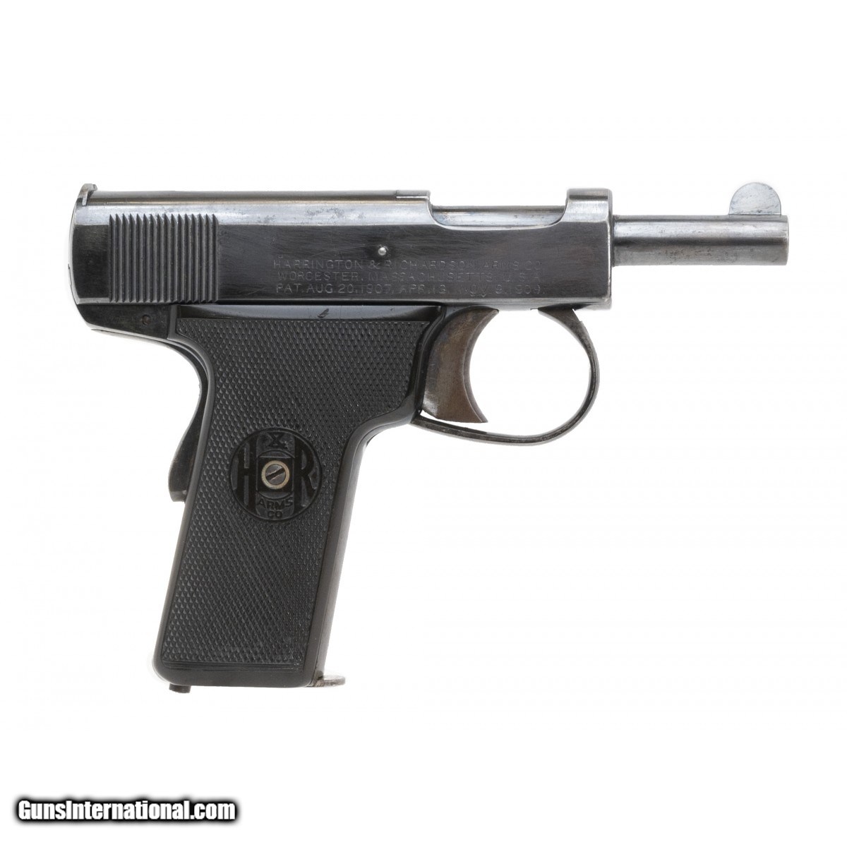Description: " H&R Self Loading .32 ACP caliber pistol. Harrington and Richardson Arms. Bore is very good. Left side has a small chip at the safety lever. Gun has 70 % original blue. SOLD Curio/Relic: Yes |