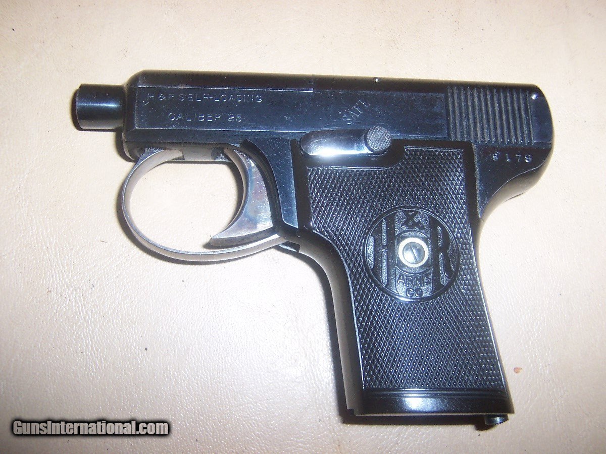 Description: one magazine''''''''' 'gun in about 99% original condition'''''''' serial # 6178 sh $38 ;; beautiful little pistol SOLD Curio/Relic: Yes Manufacturer: harrington & richardsonn Model: automatic .25 caliber |