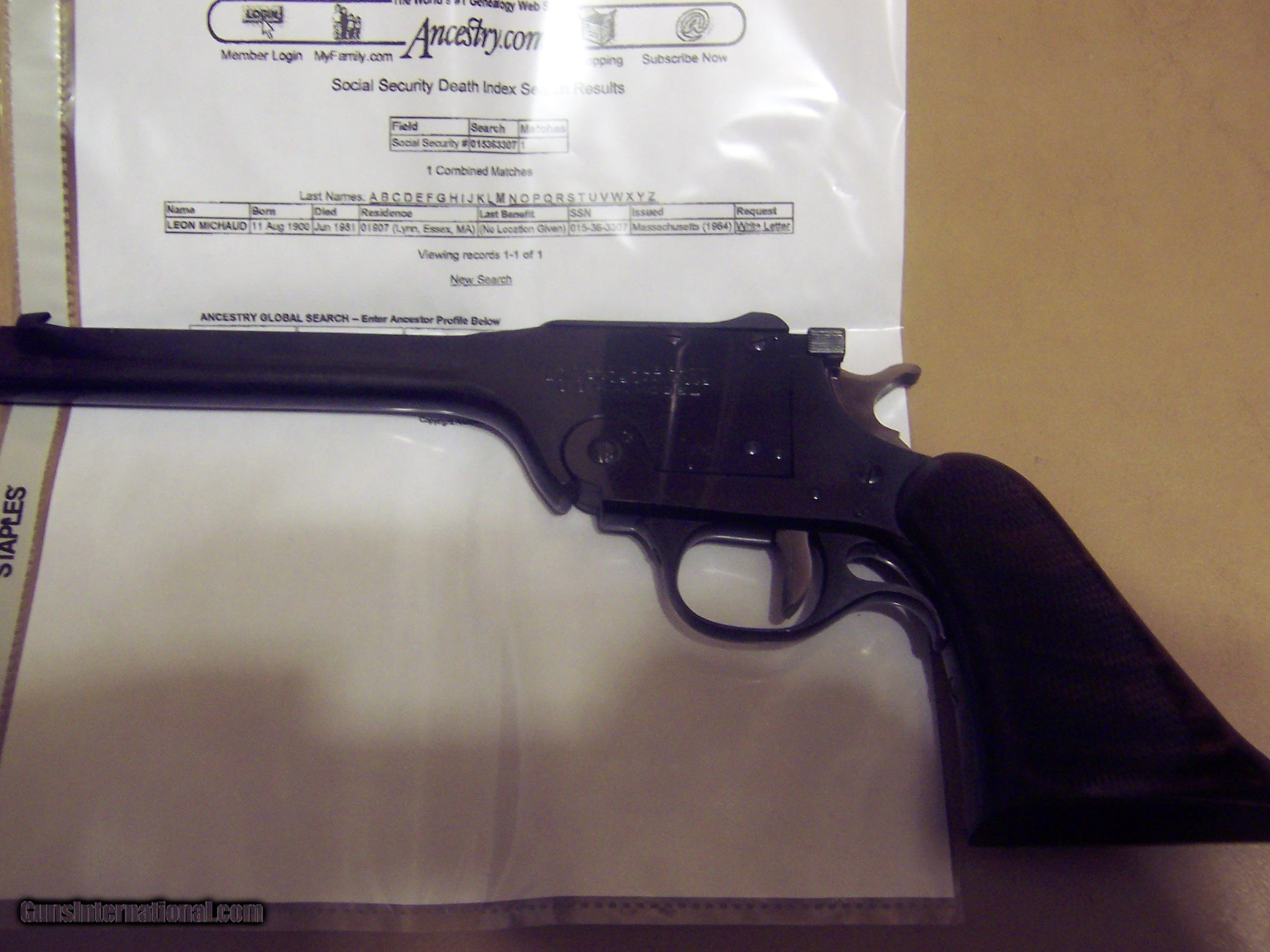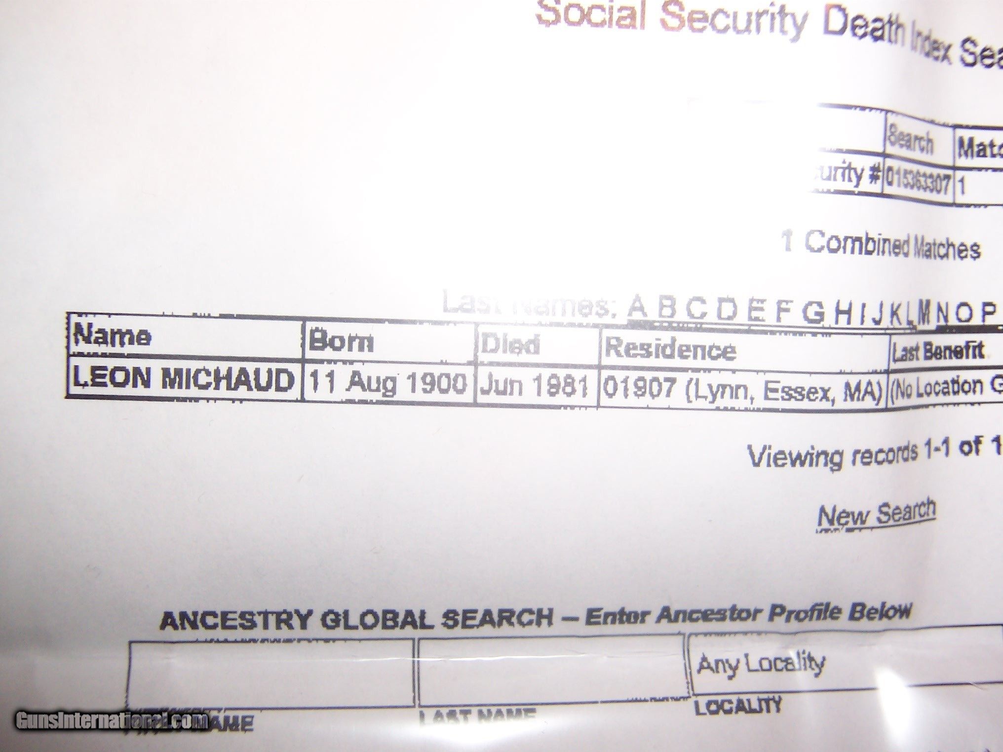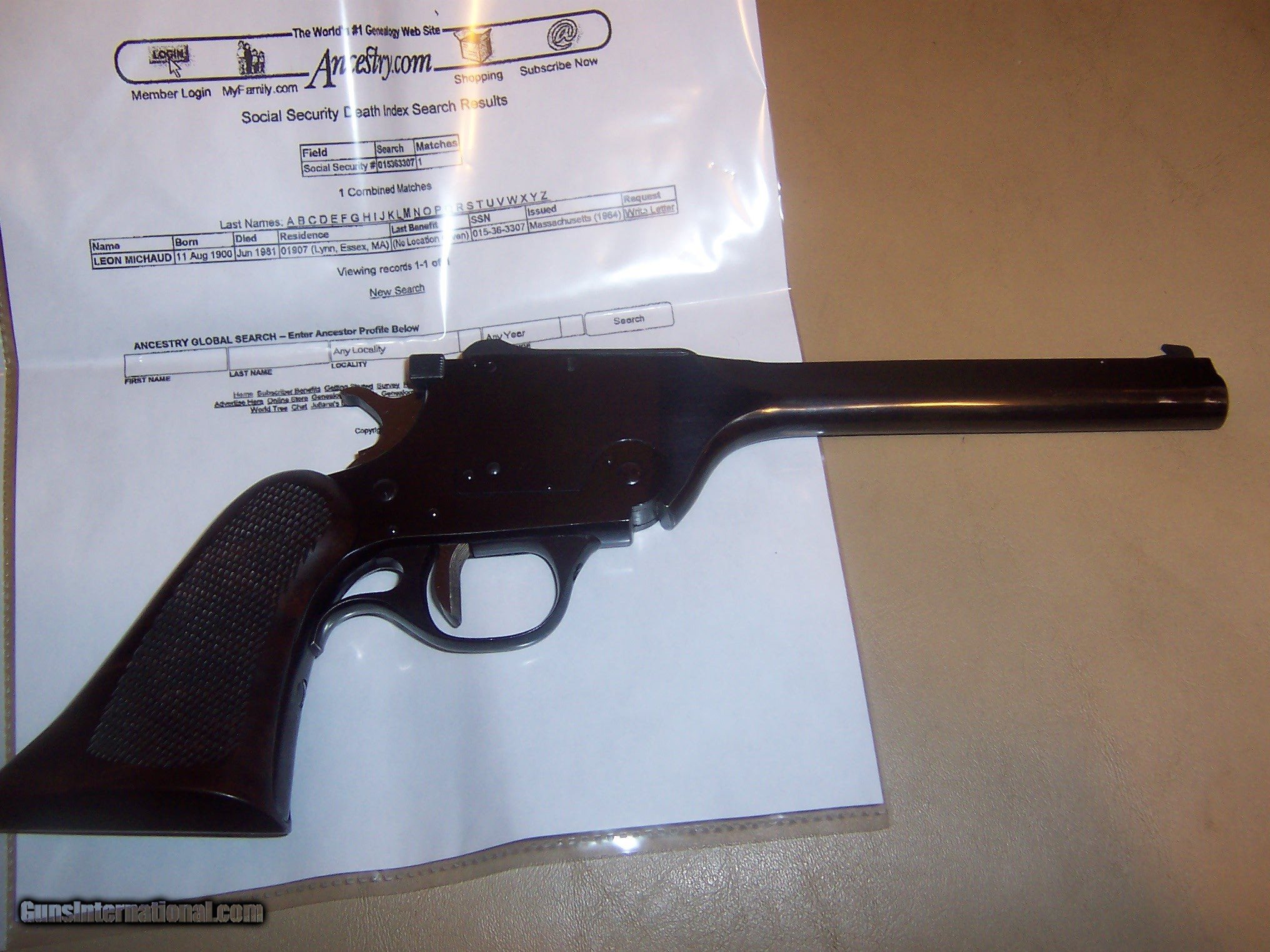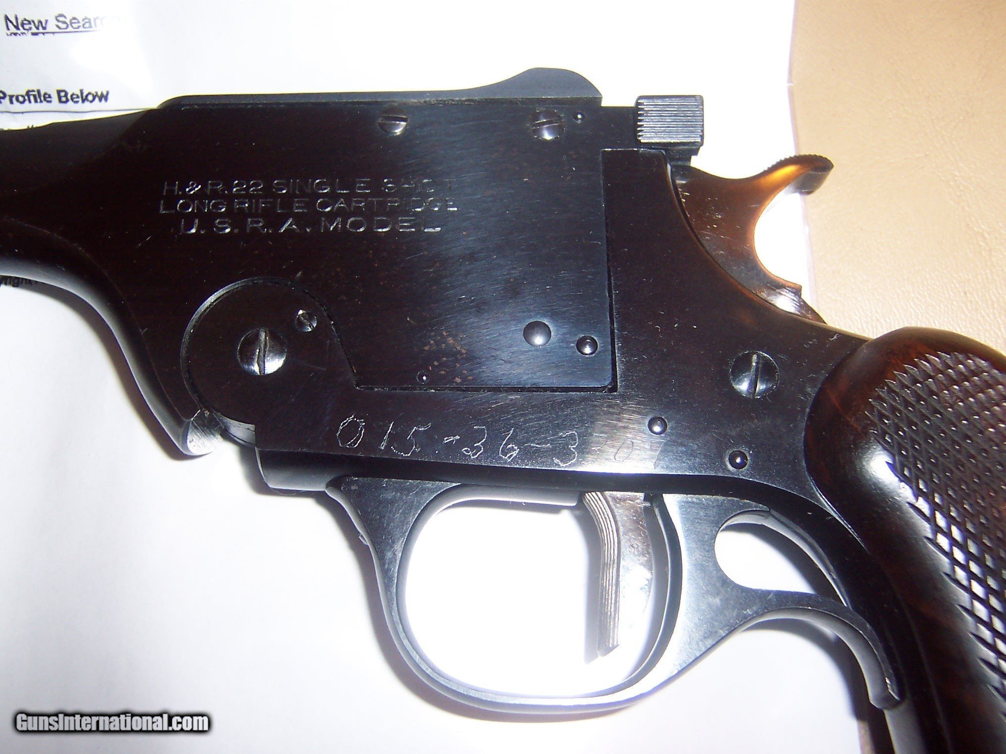 Description: gun is in 98% original condition has 8 inch barrel lighty scratched ss no on frame hard to see . come wih ancestry for ss# on gun ,,22lrf fine bore 8 inch barrel may be rare for this model #4 c&r made pre 1942 serial # 2635 SOLD Curio/Relic: Yes Manufacturer: h&r Model: usra Serial Number: 2635 Barrel Length: 8in |