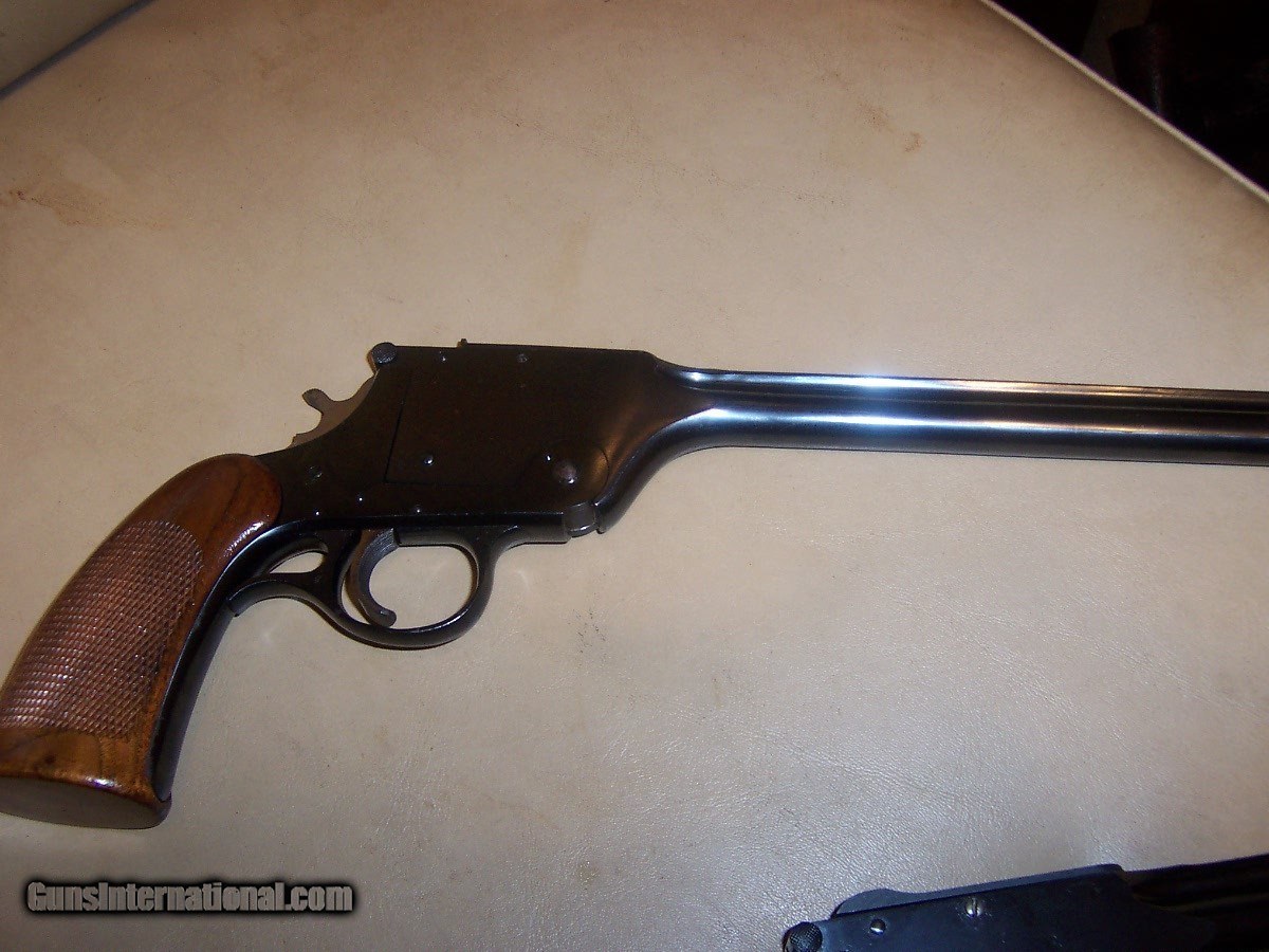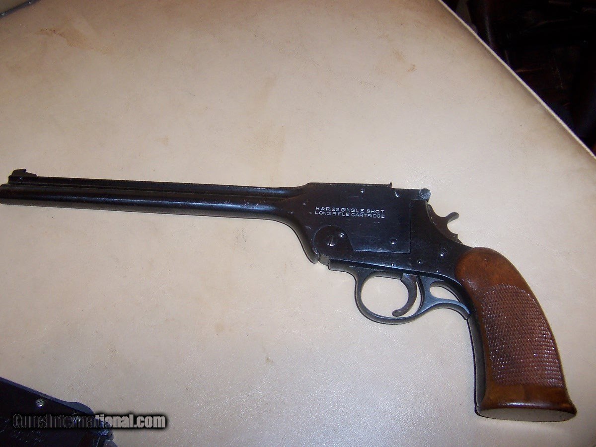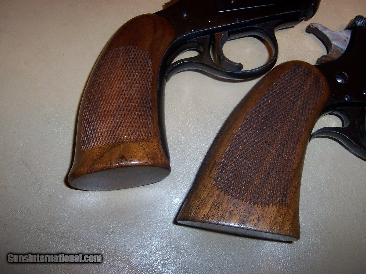 Description: 9 15/16 inch mint bore not marked usra early model ''''''' see pictures of early grips top and later grips' bottom gun is 98%+ condition a few minor blemishes $45 sh ''' ins serial #879 i have serial #877 same condition marked usra buy both get free shiping c&r ok'''''' automatic ejection SOLD Curio/Relic: Yes Manufacturer: h&r Model: usra |