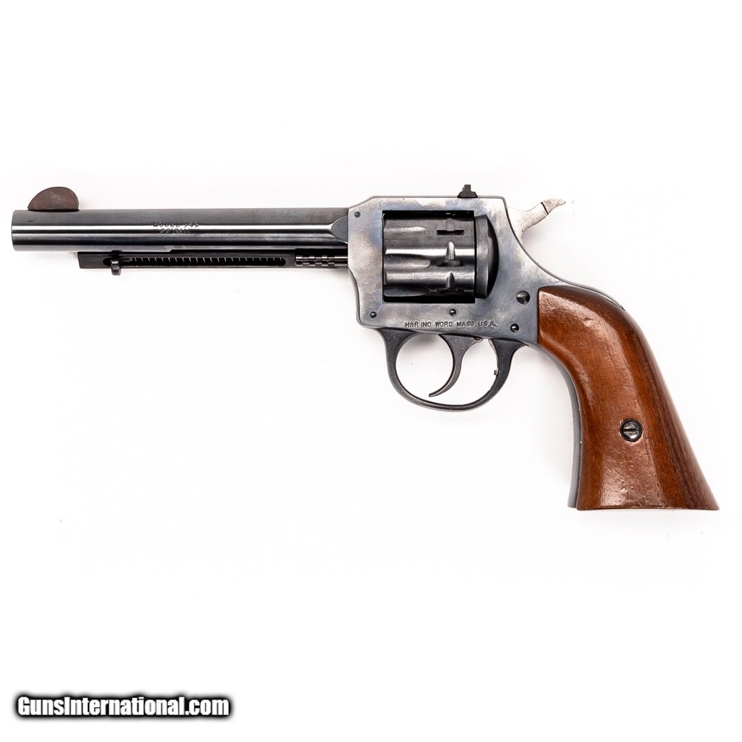 Description: Guns Listing ID: 321965 The Harrington & Richardson Model 949 \"Forty Niner\" was made from 1961 to 1972. These double action pistols have a cylinder that holds 9 shots of .22 S,L,LR paired with a 5.5 inch barrel. This model comes with a leather holster. SOLD Manufacturer: HARRINGTON & RICHARDSON Model: MODEL 949 Caliber Info: .22 LR Condition: Used - Certified Barrels: 5.5 BARREL Finish: BLUE |
