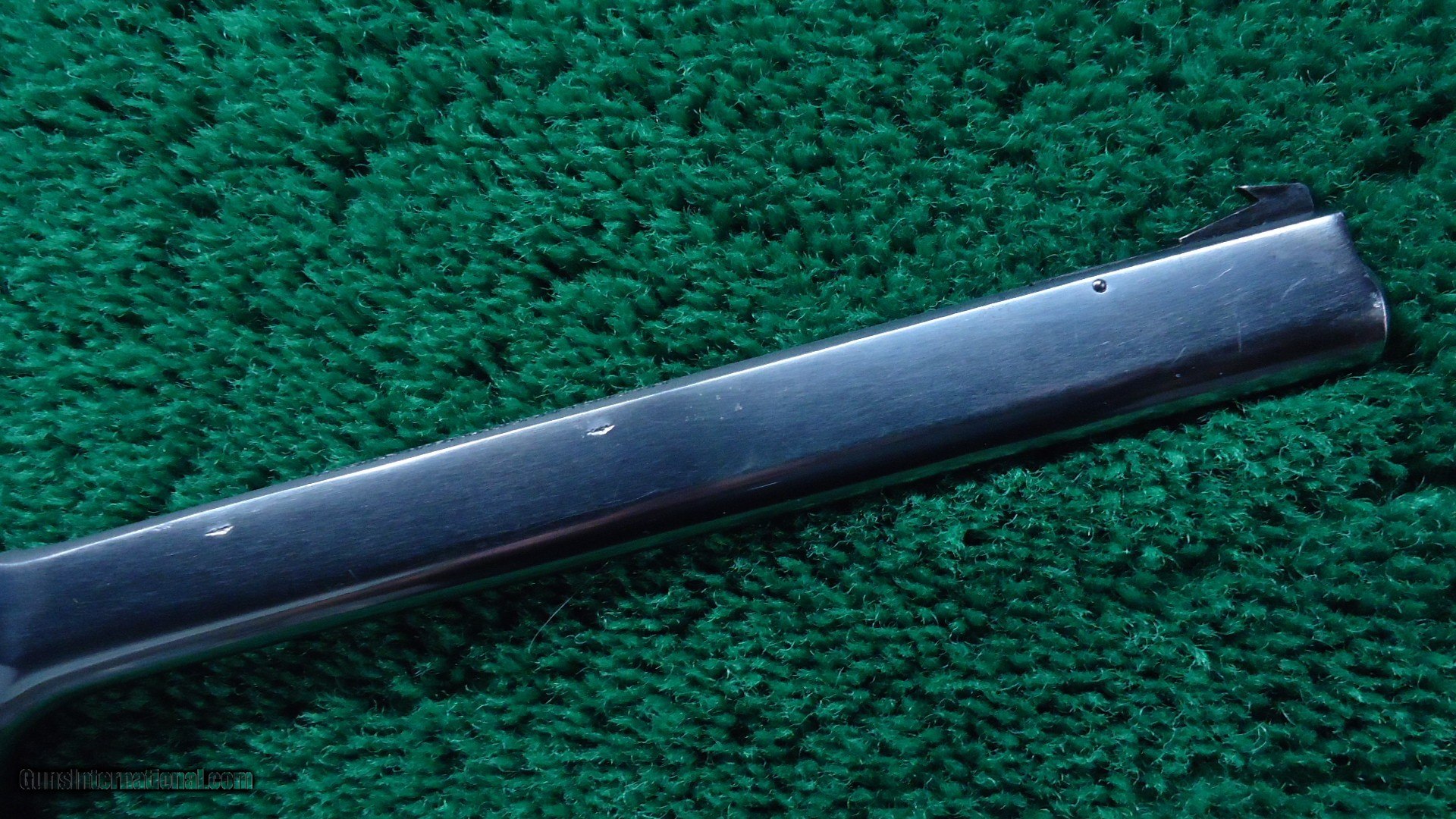 Description: 10 inch barrel chambered in 22 Long Rifle with matted top surface. Adjustable blade front sight and square notch rear sight. Tip up action with blue finish. Bright finished trigger & hammer. Front grip strap has rare serrated surface. About 97% original blue with scattered dings and mars. One piece checkered wood grips show light wear. Bore is bright with strong rifling. Leroy Merz Antique Firearms specializes in antique and vintage Winchesters and other fine American firearms. Since 1965 Mr. Merz has taken part in the world of firearms and has been a contributor to many well known reference books. We have hundreds of additional guns in every price range at our home online. Search for Merz Antiques in google. SOLD Curio/Relic: Yes |