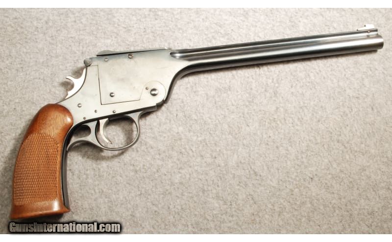 Description: For your consideration, H&R model U.S.R.A. Single Shot Pistol was produced from 1927 through 1941 with a total produced of about 3300 pistols. This pistol features checkered target grips, a round ejector, a round knurled barrel latch and a 10" barrel. It would be a good addition to any collection. .22 Long Rifle SOLD Curio/Relic: Yes Metal Condition: Very good Wood Condition: Very good Bore Condition: Bright and shiny Barrels: 10 inches Weight: 1 Lb 14 Oz Item Location: Scarborough, ME |