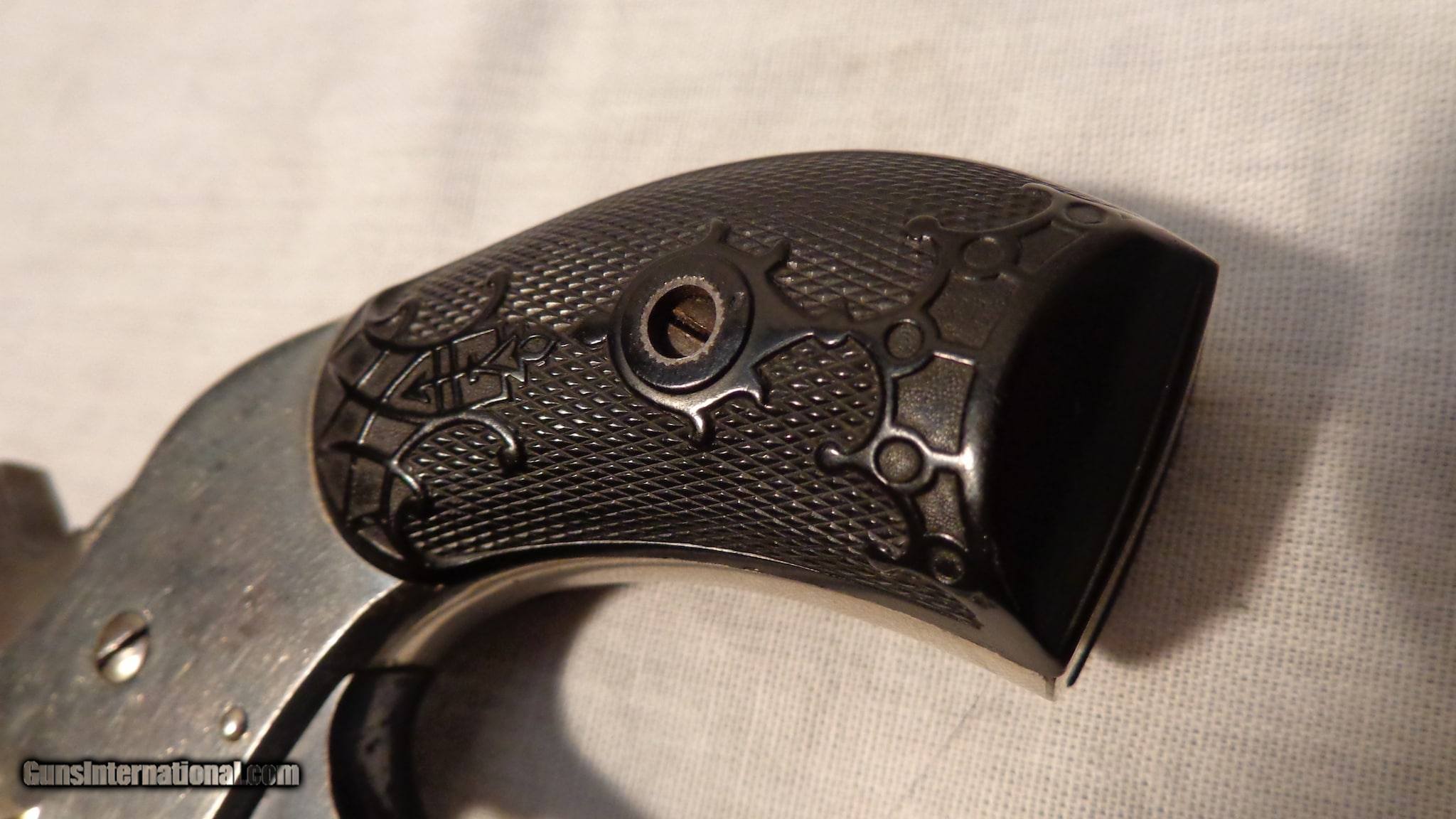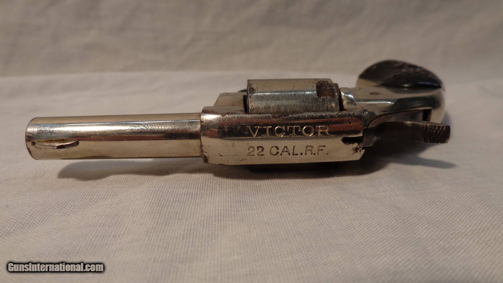 Description: Guns Listing ID: 499801 This revolver is in fair condition overall showing some nickel flaking and rust. Caliber marking is 22 R.F. SOLD Manufacturer: HARRINGTON & RICHARDSON Model: Victor Caliber Info: 22 SHORT Condition: Used - Non-Certified Barrels: 2 BARREL Finish: NICKEL |