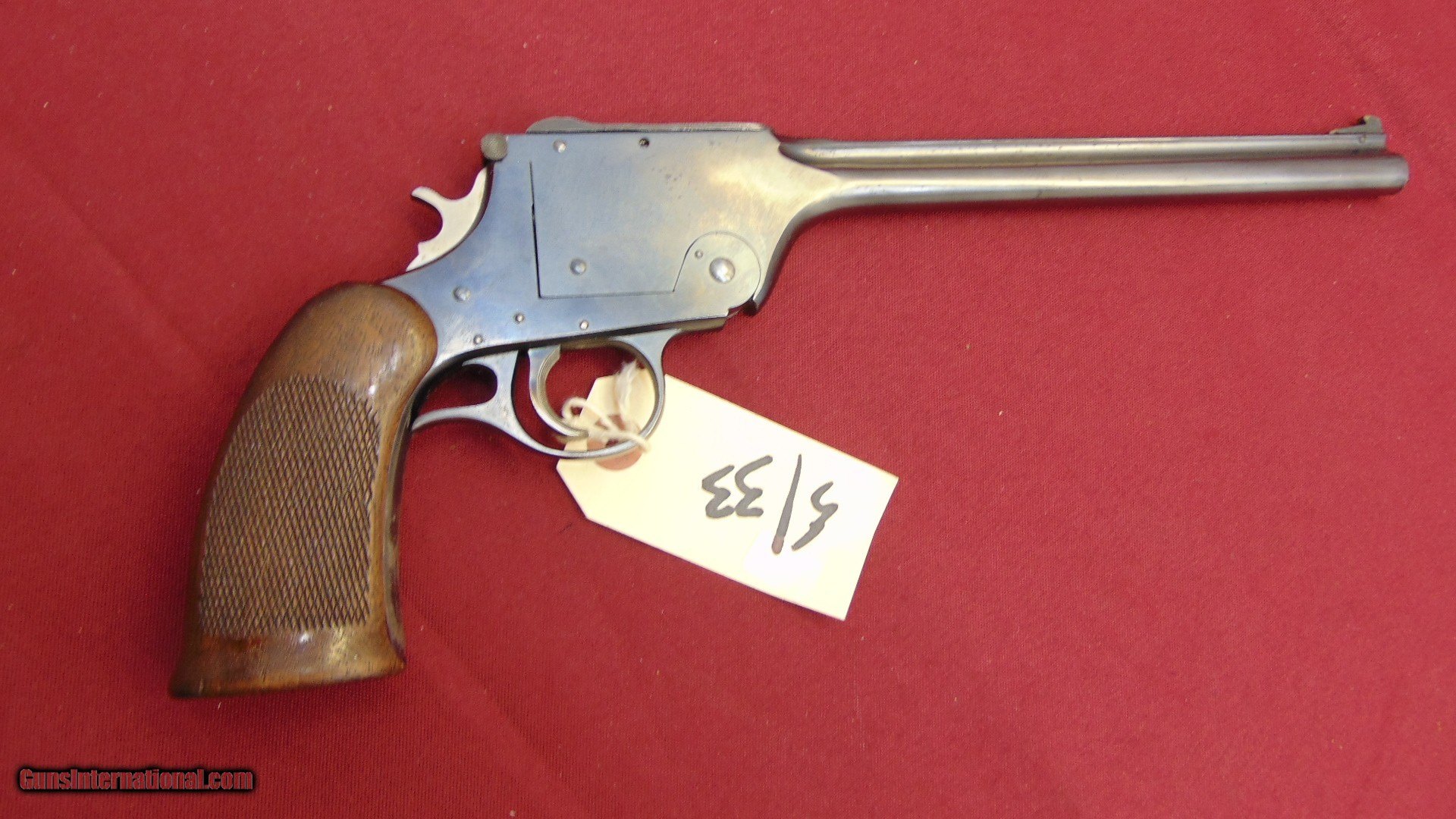 Description: RARE - HARRINGTON & RICHARDSON MODEL 195 USRA SINGLE SHOT TARGET PISTOL 22 LR. SER# 851 , HARRINGTON & RICHARDSON U.S.R.A. MODEL 195 SINGLE SHOT TARGET PISTOL. MADE 1928-1942. 10 INCH BARREL WITH A NICE BRIGHT BORE. ADJUSTABLE REAR SIGHT. CURVED TRIGGER VARIATION .AUTO EJECTOR . VERY GOOD CHECKERED GRIPS. EXCELLENT CONDITION . A VERY NEAT RARE SINGLE SHOT TARGET PISTOL. EASTERN BRANCH FIREARMS Questions e-mail or call Glen at Eastern Branch Firearms 207-215-5021 Fax number 207-588-7605 TERMS – PLEASE READ BEFORE I DO NOT HAVE A LAYAWAY OPTION ( I DO ACCEPT CREDIT CARDS ) -- I GET ALOT OF REQUEST FOR TRADES, I WOULD PERFER NOT TO DO TRADES ON MY INTERNET LISTINGS. LEGAL REQUIREMENT- Modern firearms must be transferred through a licensed FFL dealer in your area. to supply a signed copy of local dealer’s license before shipment will be made. A C&R License is acceptable for C&R firearms only (guns determined to be C&R’s by ATF and guns known to be at least 50 years old). California law will NOT allow shipment of C&R handguns direct to a C&R holder in the State of California, a 01 FFL LIC. dealer must be used. Antique firearms require to supply proof of age. Some areas still require an FFL transfer for antique & black powder firearms (New Jersey, NYC, etc.) Large capacity magazine restrictions: New Jersey - 15 round maximum for semi-automatic firearms only. California - 10 round maximum for all magazines. Maryland - 20 round maximum for all magazines. Massachusetts - over 10 rounds. Hawaii - 10 round maximum for all handgun magazines. PAYMENT OPTIONS- We accept money orders, cashier’s checks , bank checks. sorry no personal checks. We accept all major credit cards please add 3% to the ’s cash discount price.(Maine Residents to pay 5% sales tax) .Handguns and long guns do need to be shipped separate. PLEASE do not send payment via FED EX . USPS & UPS are fine. Thank you. We include a signed copy of our FFL with each firearm shipped. AMMO •WARNING: Buyer must be over the age of 21 with proof of age to purchase. All state, local and federal laws apply. Please do notif you are prohibited from buying this item in your area. No ammunition will ship to prohibited areas such as the cities of Los Angeles, Oakland and San Francisco. No Shipments to Massachusetts, New York City or Washington D.C. No Shipments to Chicago, IL residents must provide a FOID card. We cannot ship to Alaska or Hawaii. If you are a resident of one of these areas please do not bid. Thank you. SAFTY NOTICE- Buyer is solely responsible for determining that a used gun is safe to shoot. The firearms offered have not been test fired but have been given a visual inspection only for purposes. It is a requirement that every used firearm is inspected by a qualified gunsmith before firing. By , the buyer agrees to hold seller harmless against damages, injury, or death caused by defective merchandise. RETURN POLICY- All firearms come with a 3-day non firing , non messing with ( turning srews ,taking apart,removing parts, scoping. firing, cleaning or messing with in anyway) inspection/return privilege.Inspection is based on a visual review of the gun to confirm the gun is in the condition stated. In the case of a return, buyer pays all shipping charges & if paid for with a credit card buyer absorbs the 3% credit card charges . So please ask questions BEFORE you bid. Thanks for Looking and Good Luck!! U.S. sales only, no exports…this includes antiques. I will ship to third party for exporting- SOLD Antique: Yes |