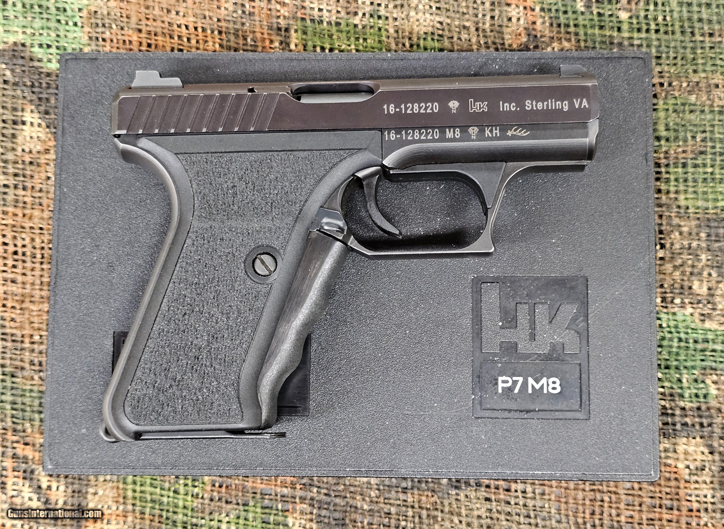 Description: Available – Excellent condition Heckler & Kock (HK) P7M8 semi automatic handgun in 9mm. Pristine and clean chamber and bore. One of the finest self defense sidearms in the world today. Features the "squeeze cocker" action. See it in action in the first Die Hard movie and also the movie Bodyguard. This is the single stock variant. Ships in matching numbered factory box, brush and scraper as shown. An incredible addition to anyone’s H&K collection, and makes a great choice for everyday carry and home defense. This item qualifies for FREE SHIPPING. No sales where prohibited by law. We will only ship this handgun to your FFL dealer. FFL license must be signed & mailed (or faxed or e-mailed) to our address. We are a full time storefront FFL Dealer so this item is also available for sale in our store. If you bid, please call 814-725-1486 let us know so we can pull your item off the shelf. Payment (in full) in the form of a US Postal Money Order is expected within 7 days of close. VISA, MC, AMEX & DISCOVER accepted with 5% surcharge ... Please contact us BEFORE if you have any questions. We are now set up to ship to California. Thanks for looking! SOLD Handgun Caliber: 9x19mm Parabellum (9mm Luger, 9x19mm NATO) Manufacturer: Heckler & Koch Model: P7M8 Bore: Pristine Chambers: Pristine Condition: Excellent Metal Condition: Excellent Bore Condition: Pristine Action: Semi Finish: Blued Sights: Fixed Case: Factory Hard Case Item Location: North East, PA |