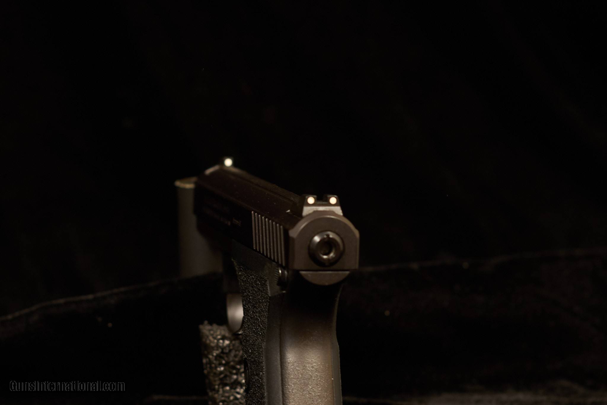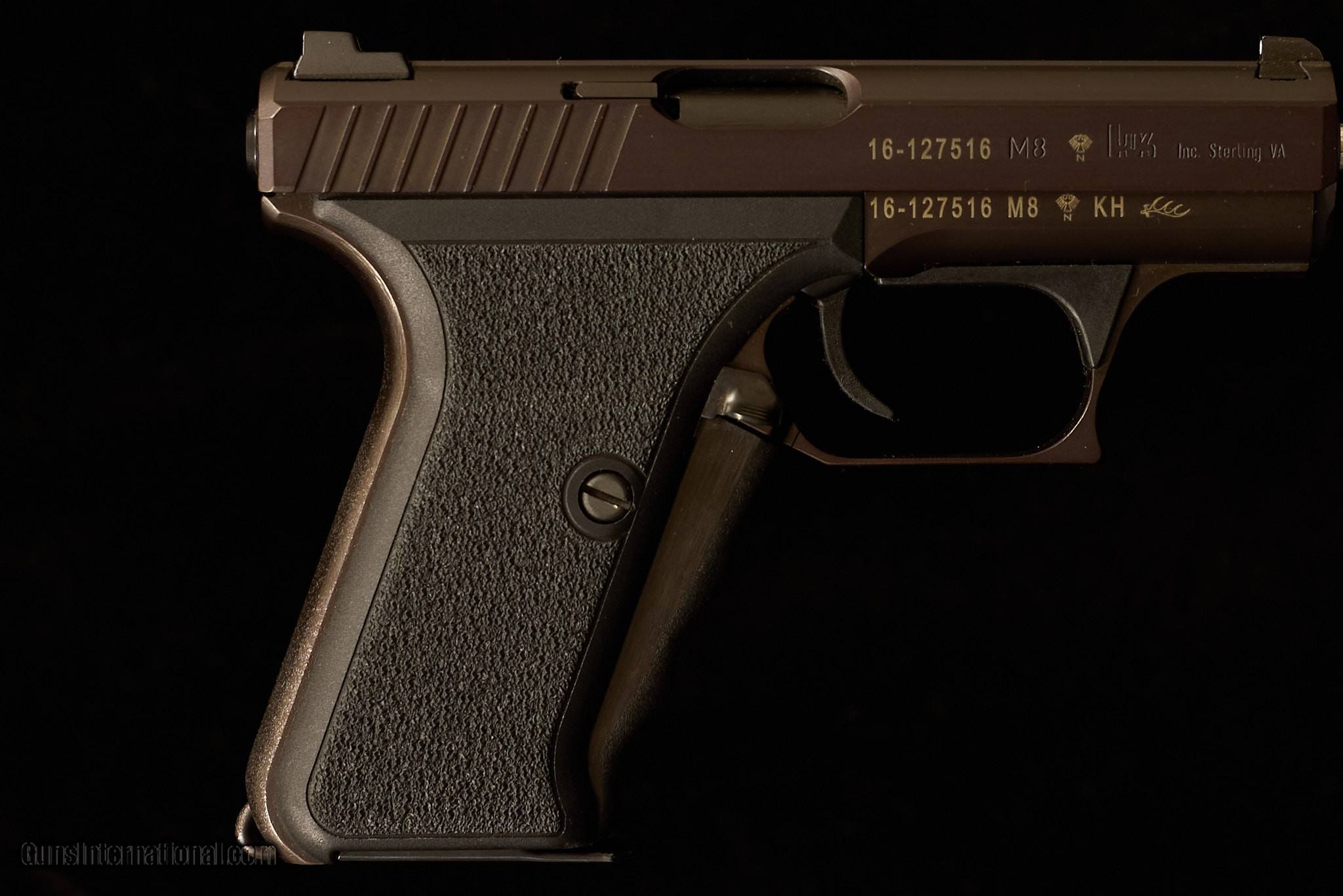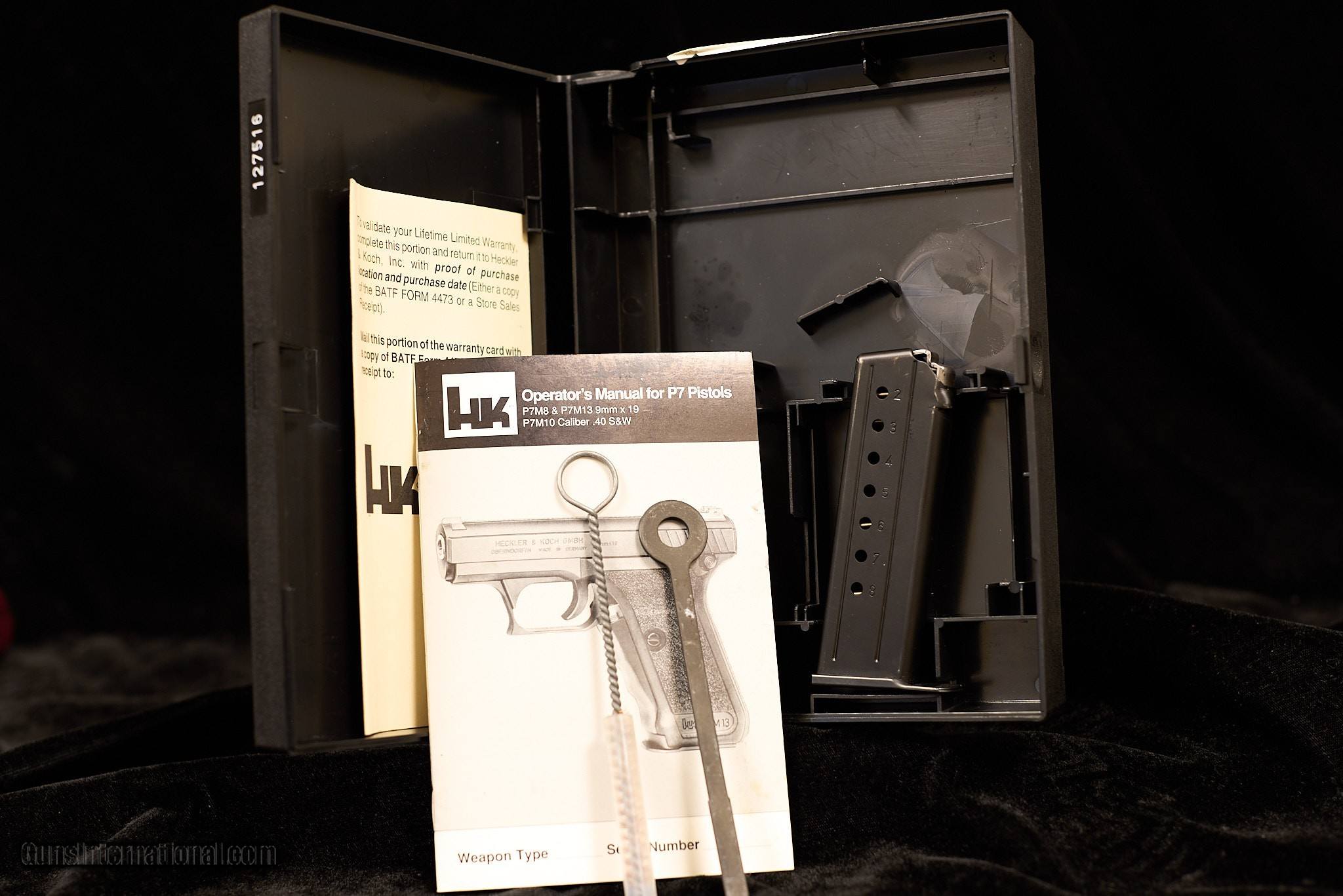 Description: HK P7 M8 in outstanding condition. This is the example to buy and park in your collection—it's that nice! Proof code is KH (1997). If this gun was fired, it was very little. It has certainly never seen a holster. Includes two magazines, tools, and original paperwork in the original factory plastic box with the pistol's serial number. Price: $3,900.00 Contact Seller |